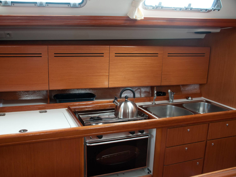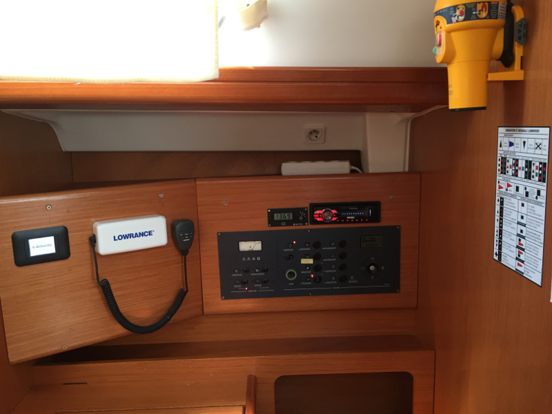 | Safety | Autopilot, Bordapotheke, Bordwerkzeug, Bugstrahlruder, elektr. Bilgepumpe, Epirb, Feststoffschwimmwesten, Handbilgepumpe, Nebelhorn, Notsignale, UKW-Funk |