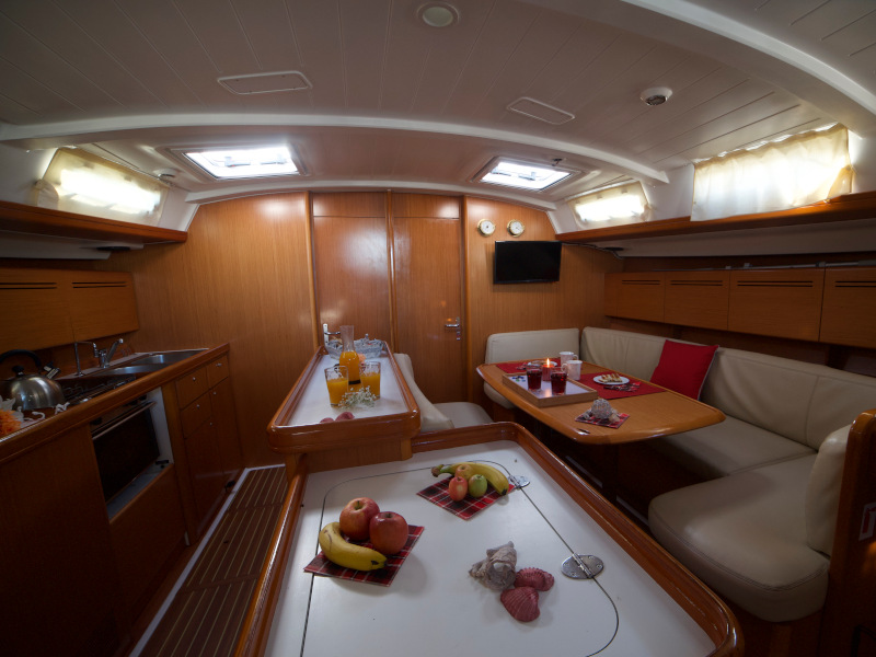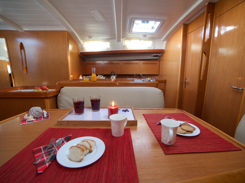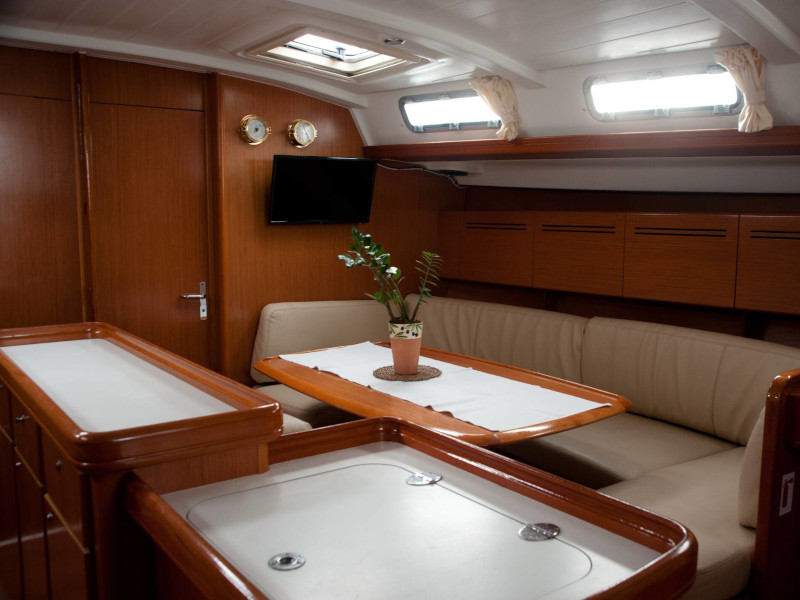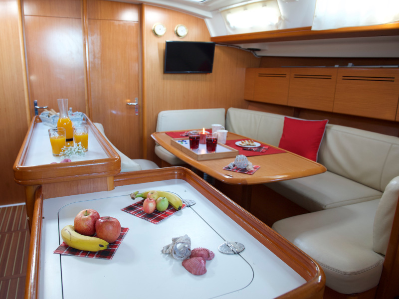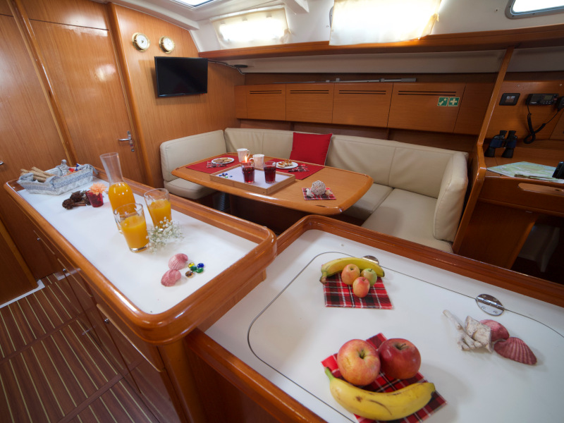 | Outside | Anker mit Kette, Anker mit Seil, Biminitop, Cockpitdusche, Cockpitlautsprecher, Cockpitpolster, Cockpittisch, elektr. Ankerwinsch, Fender, Festmacherleinen, Solaranlage, Sprayhood, Treibanker |