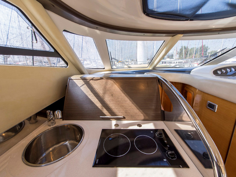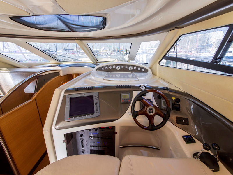 | Outside | Badeleiter, Biminitop, Cockpitdusche, Cockpitlautsprecher, Cockpittisch, elektr. Ankerwinsch, Flybridge, Gangway, Teakdeck, Treibanker |