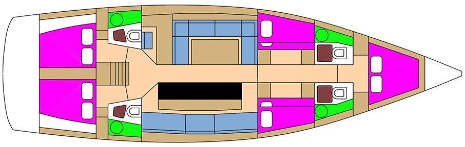 | Kabinen: | 5+1 | Kojen: | 10+1+1 |