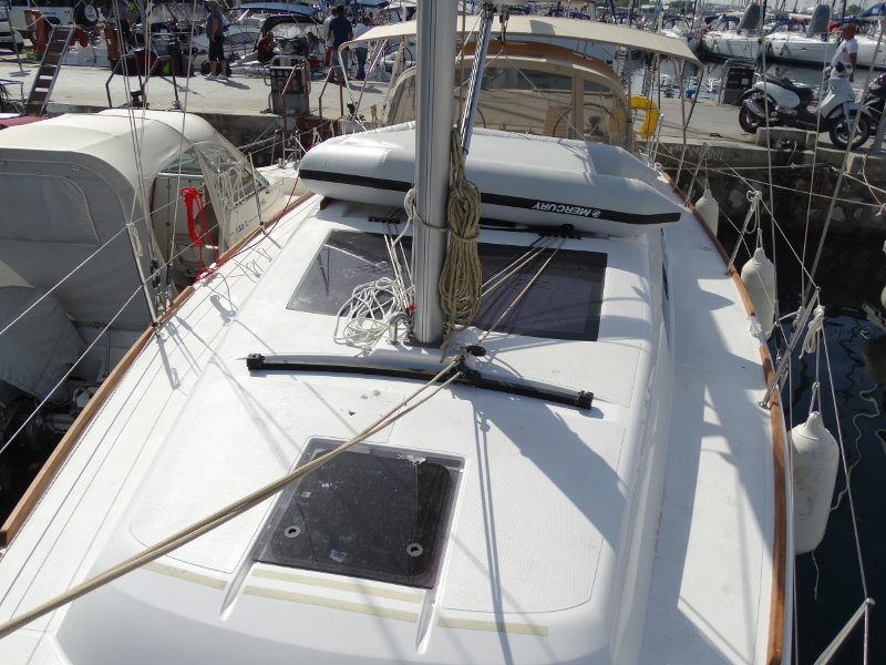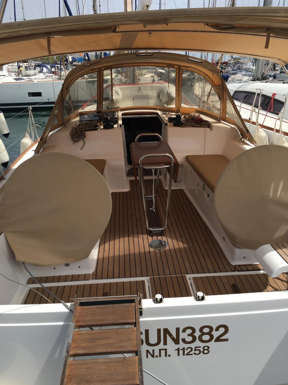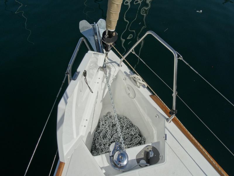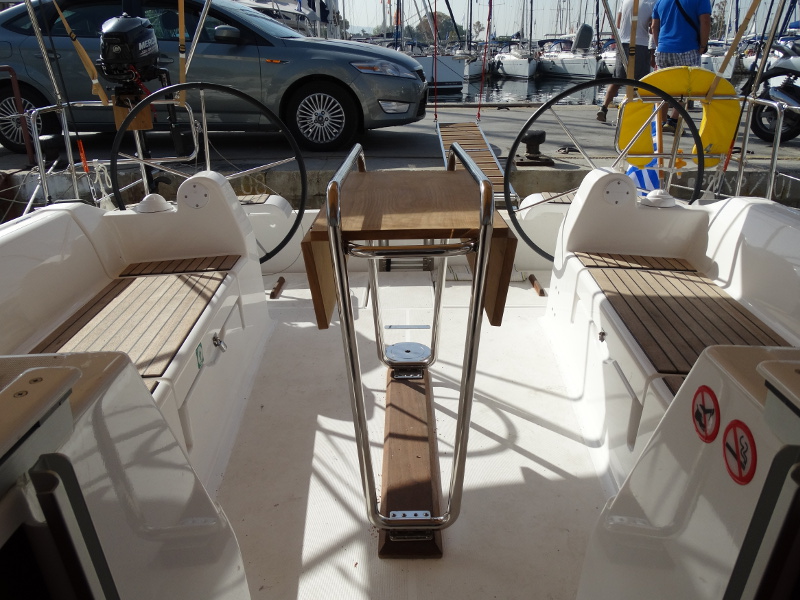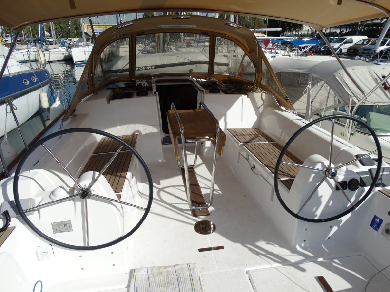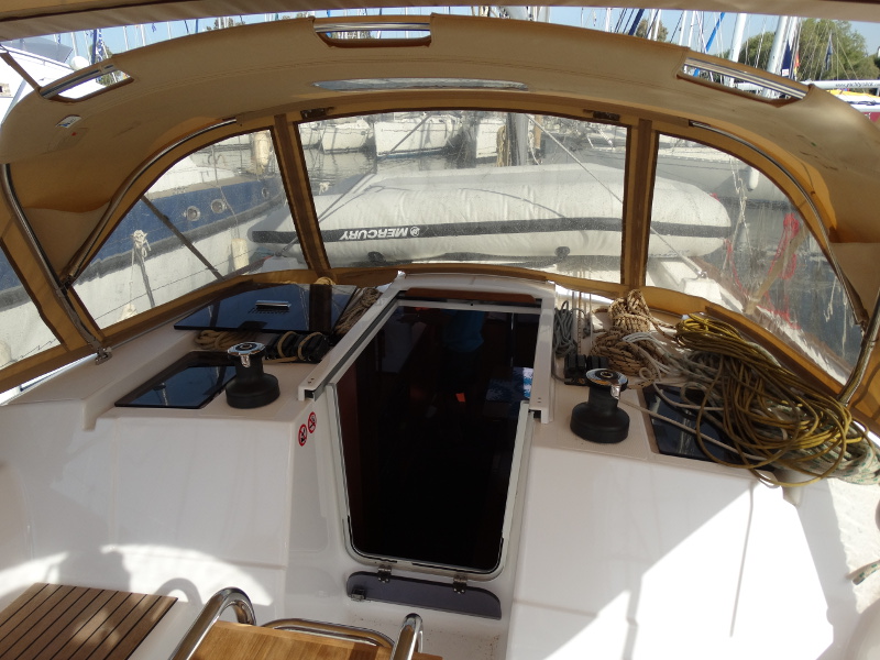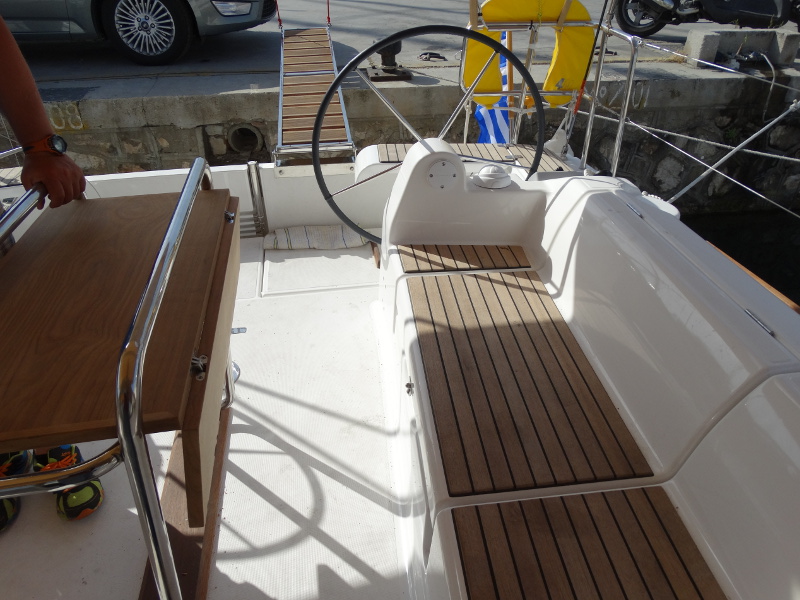 | Outside | Anker mit Kette, Badeleiter, Biminitop, Cockpitdusche, Cockpitpolster, Cockpittisch, Deckbeleuchtung, Deckpolster, Solaranlage, Sprayhood, Teak im Cockpit |