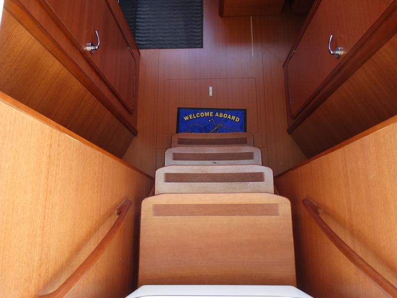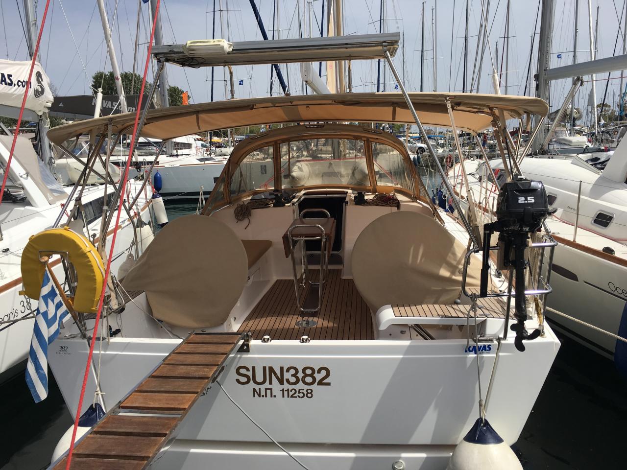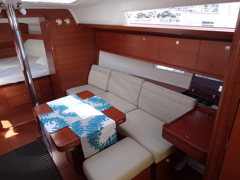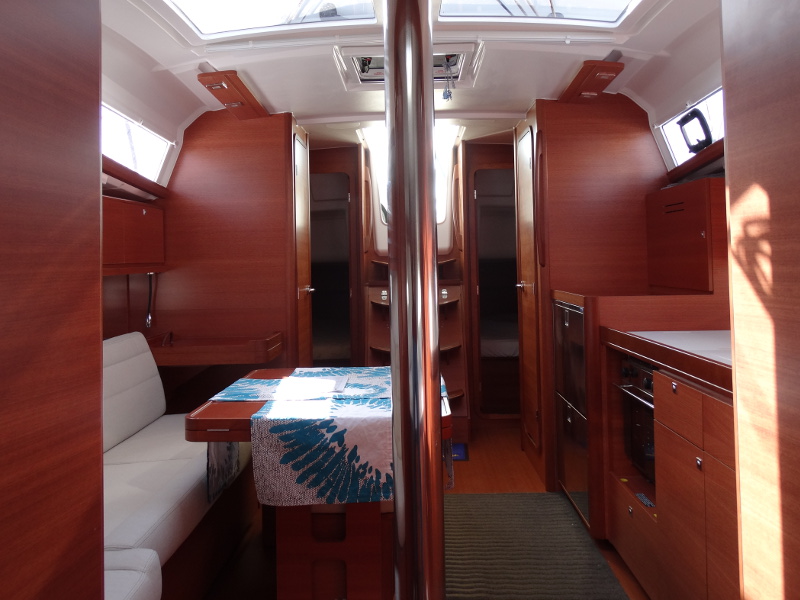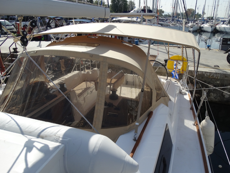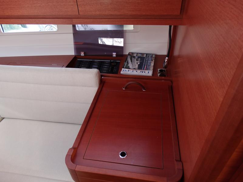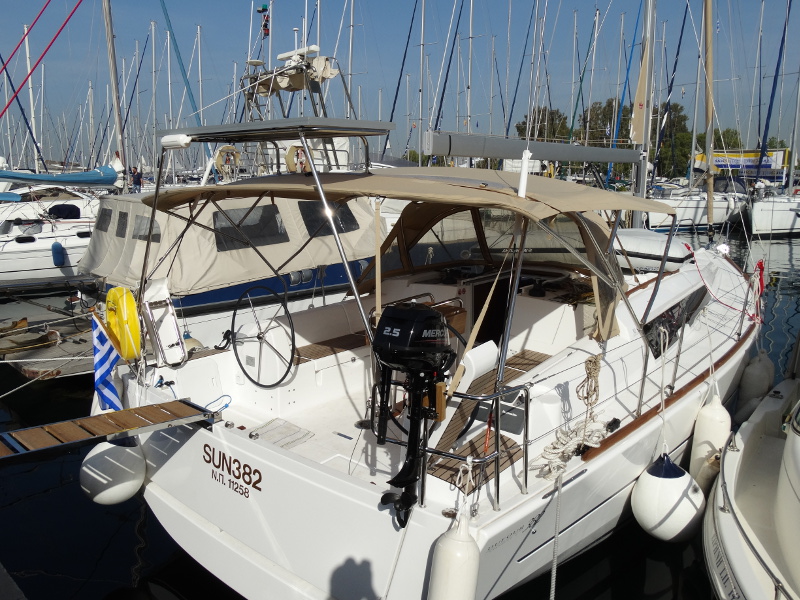 | Outside | Anker mit Kette, Badeleiter, Biminitop, Cockpitdusche, Cockpitpolster, Cockpittisch, Deckbeleuchtung, Deckpolster, Solaranlage, Sprayhood, Teak im Cockpit |