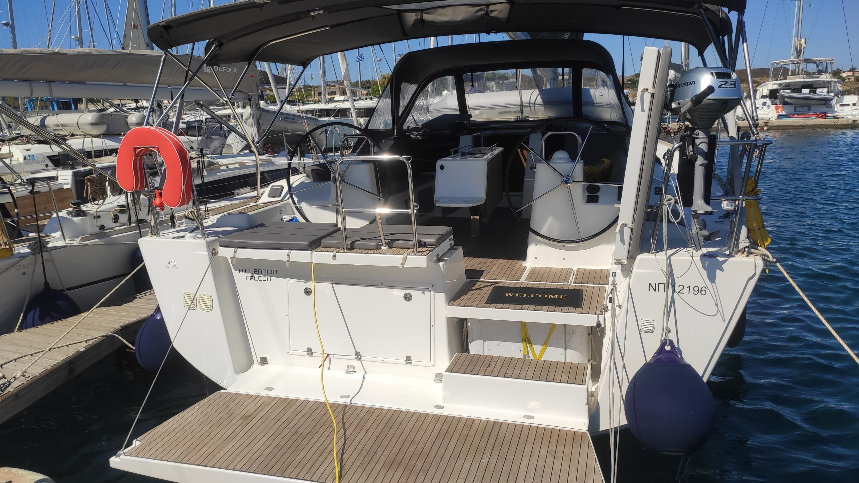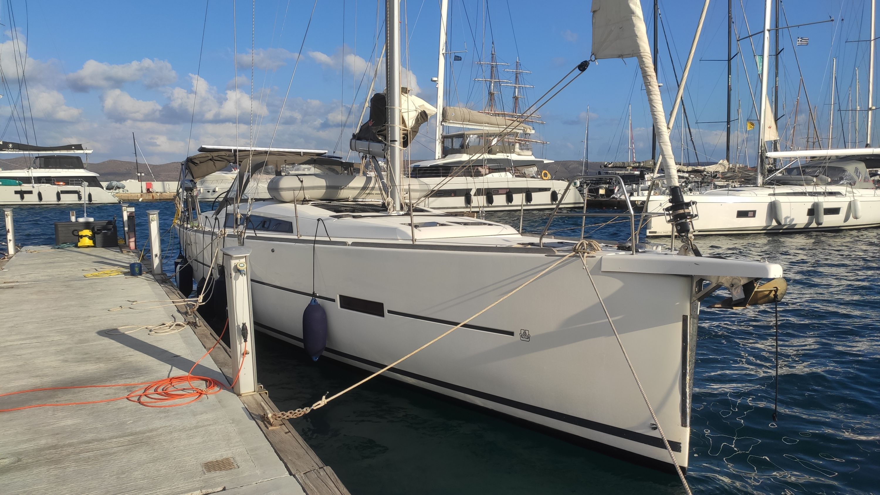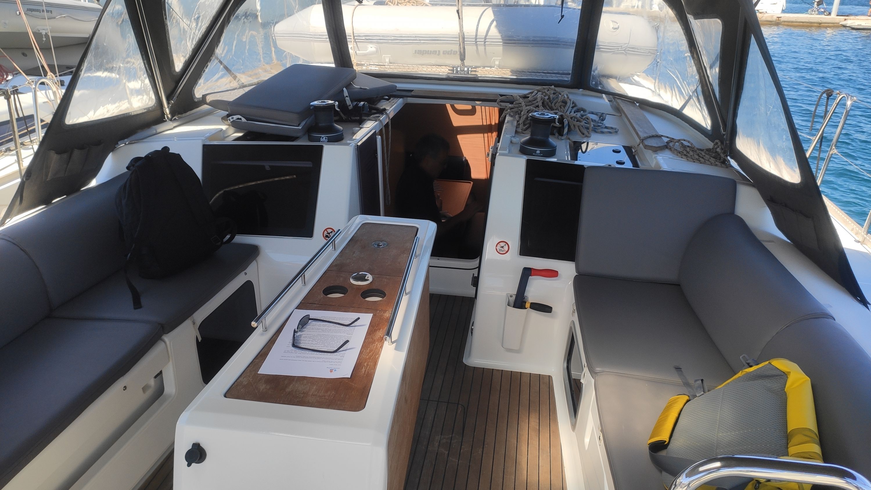 | Outside | 220 V Landstromkabel mit Ladegerät, 220 V-Landanschluss, Anker mit Kette, Badeleiter, Badeplattform, Biminitop, Cockpitdusche, Cockpitkühlschrank, Cockpitlautsprecher, Cockpitpolster, Cockpittisch, Deckpolster, Delta-Anker, elektr. Ankerwinsch, Fender, Grill, Schnorchelausrüstung, Solaranlage, Sprayhood, Teak auf Badeplattform, Winschen |