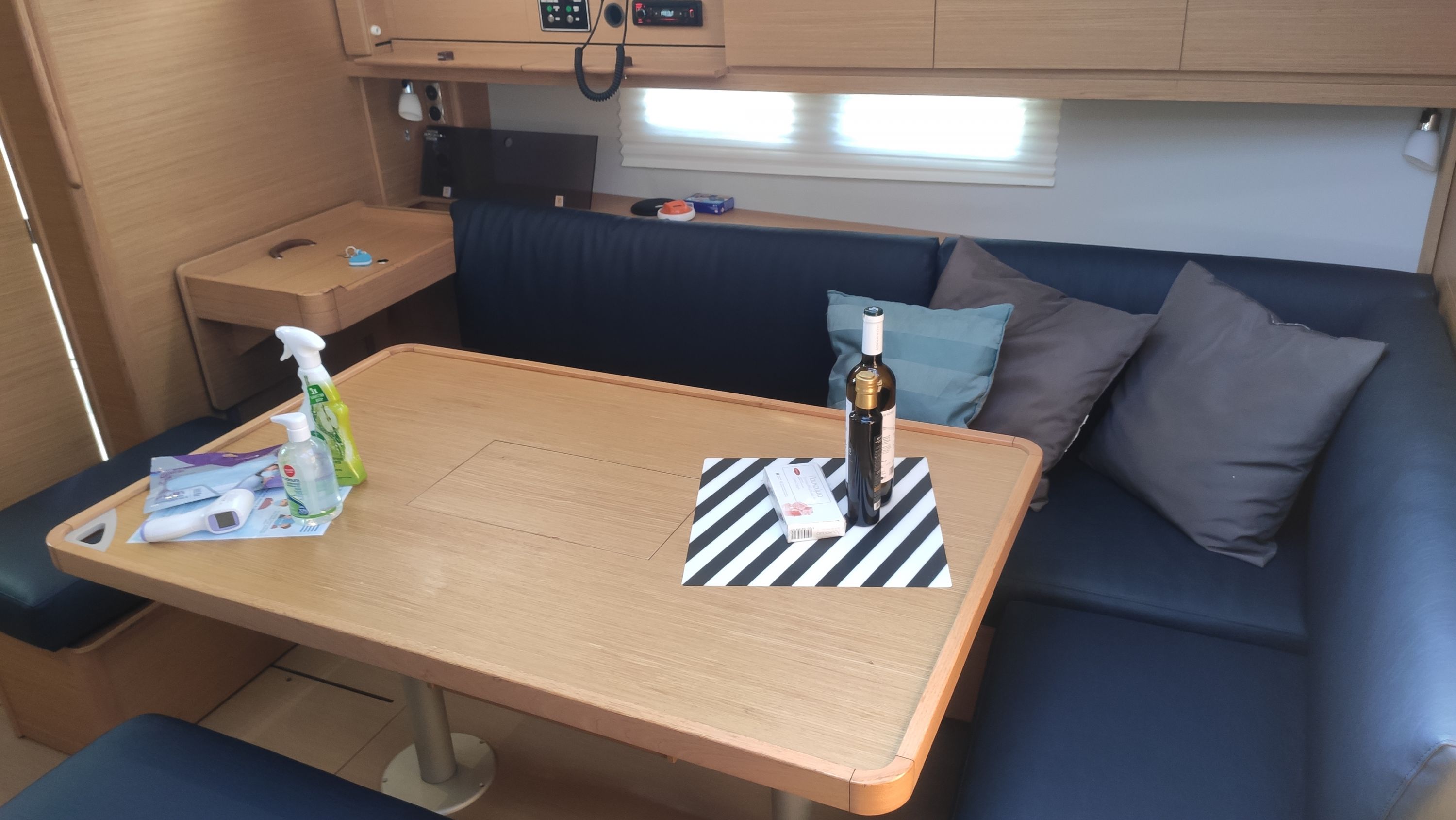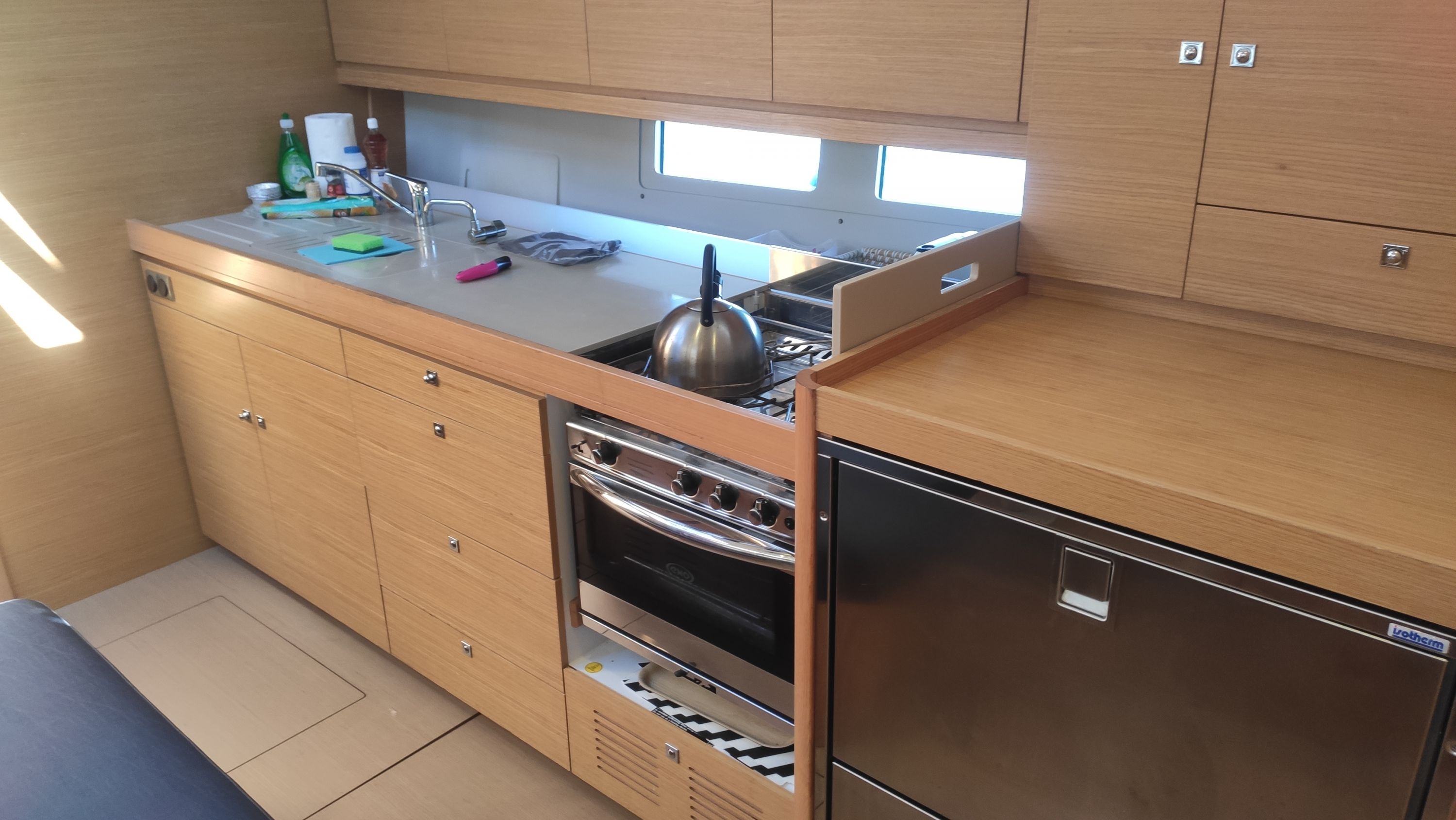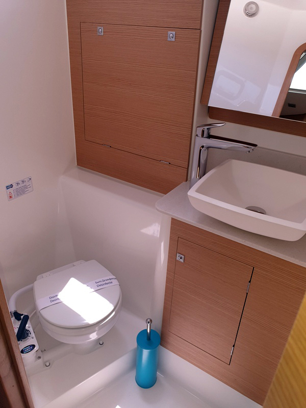 | Inside | 220V Steckdosen, Backofen, Gasherd, Gefrierschrank, Generator, Inverter 12V/220V, Klimaanlage (ohne Landstrombedarf), Kühlschrank, Lautsprecher im Salon, LED-Innenleuchten, Moskitonetze, Radio mit CD, Salontisch absenkbar, Spülbecken, USB Steckdosen in den Kabinen, Ventilatoren in Kabinen, Warmwasser |