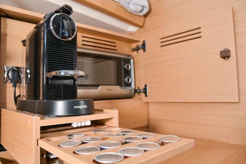 | Inside | Fäkalientank, Generator, Inverter 12V/220V, Kaffeemaschine, Klimaanlage (ohne Landstrombedarf), LED-Innenleuchten, Radio mit CD und MP3, Spülbecken, Watermaker |