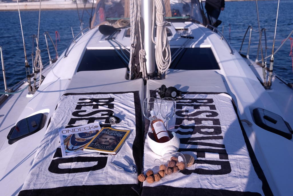 | Outside | Badeleiter, Cockpitpolster, Cockpittisch, elektr. Ankerwinsch, Schnorchelausrüstung, Teak im Cockpit, Windex |