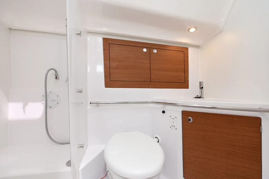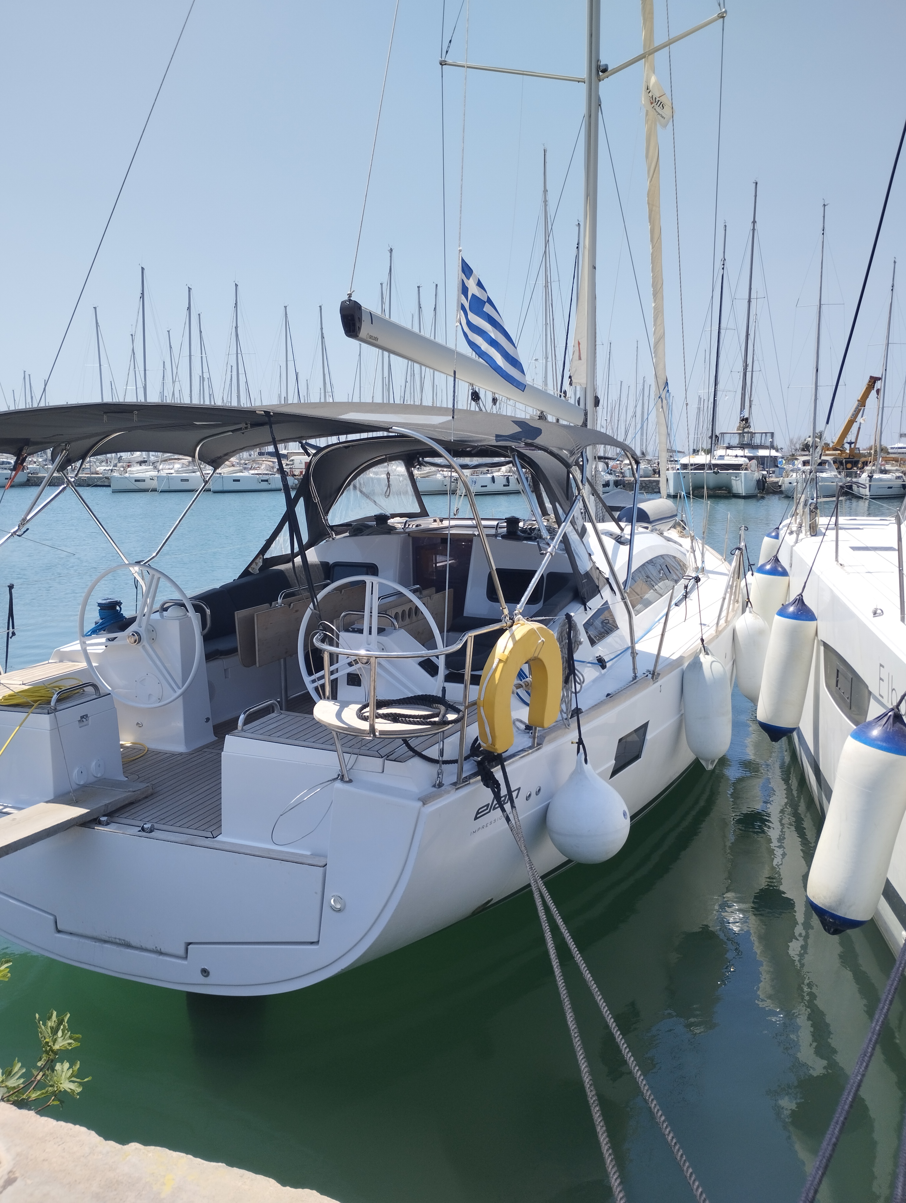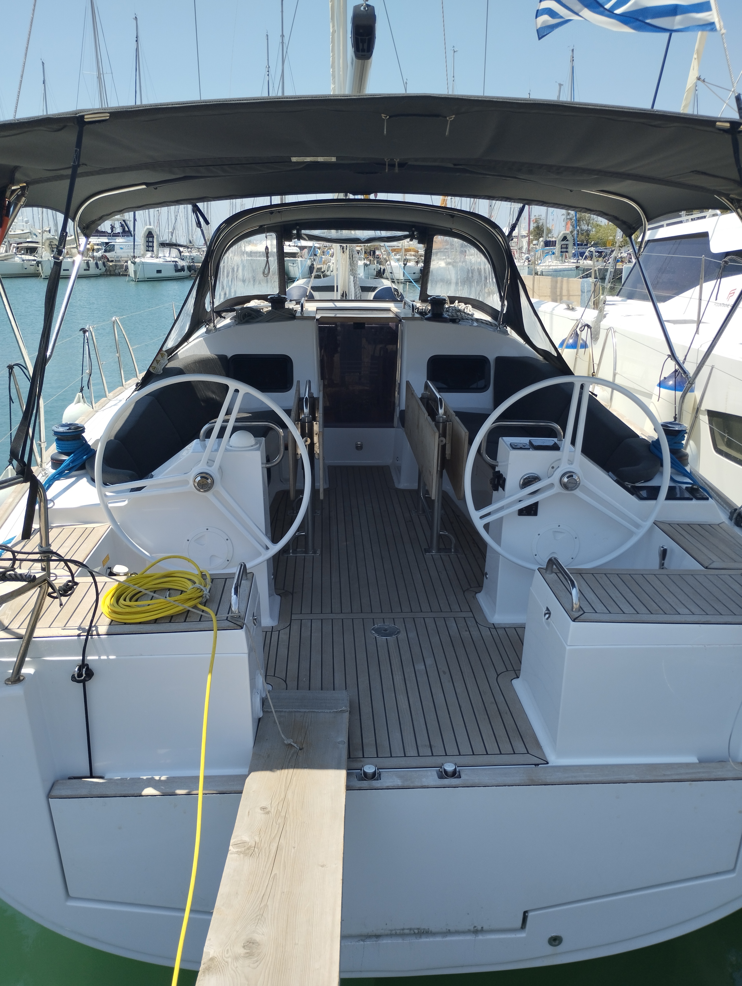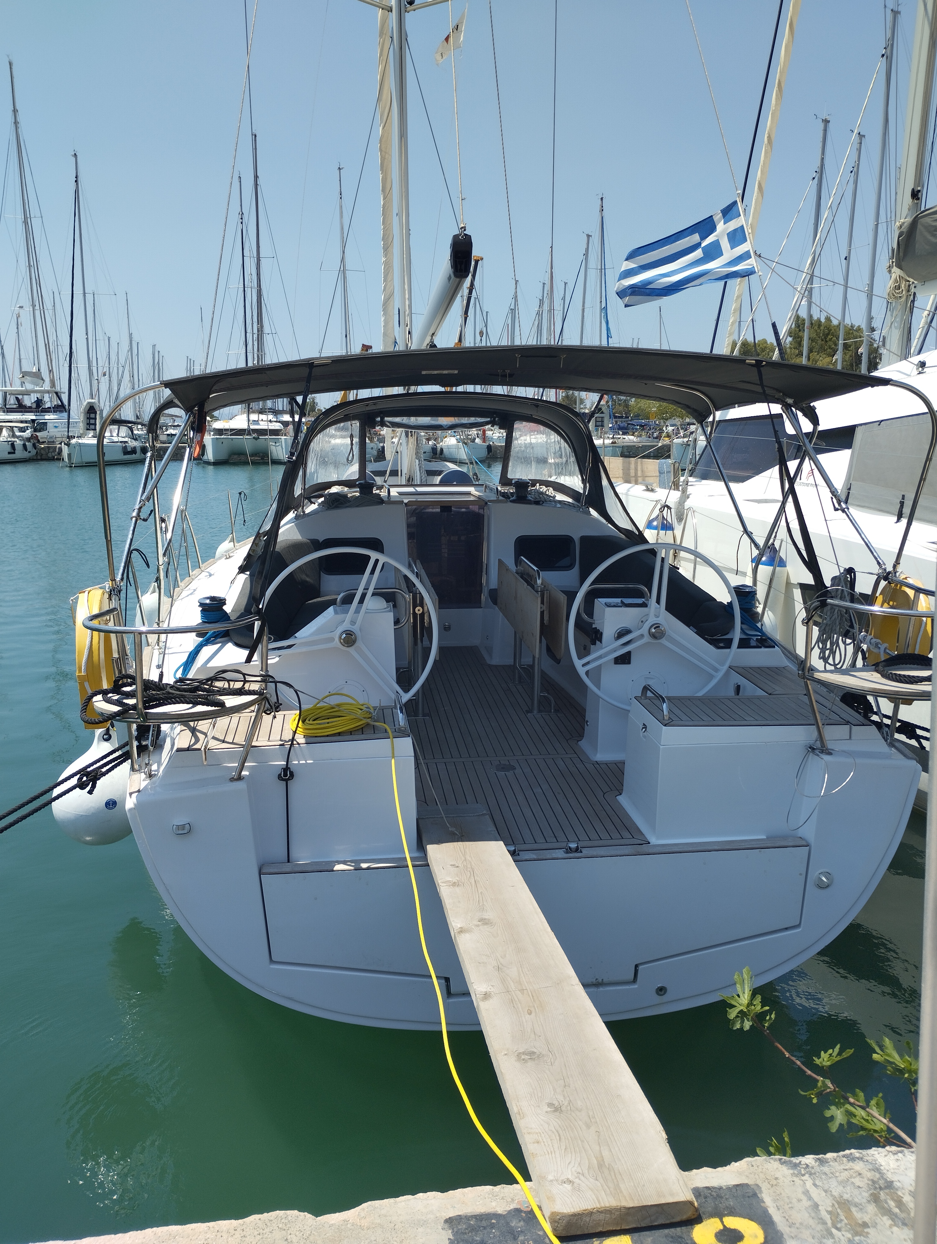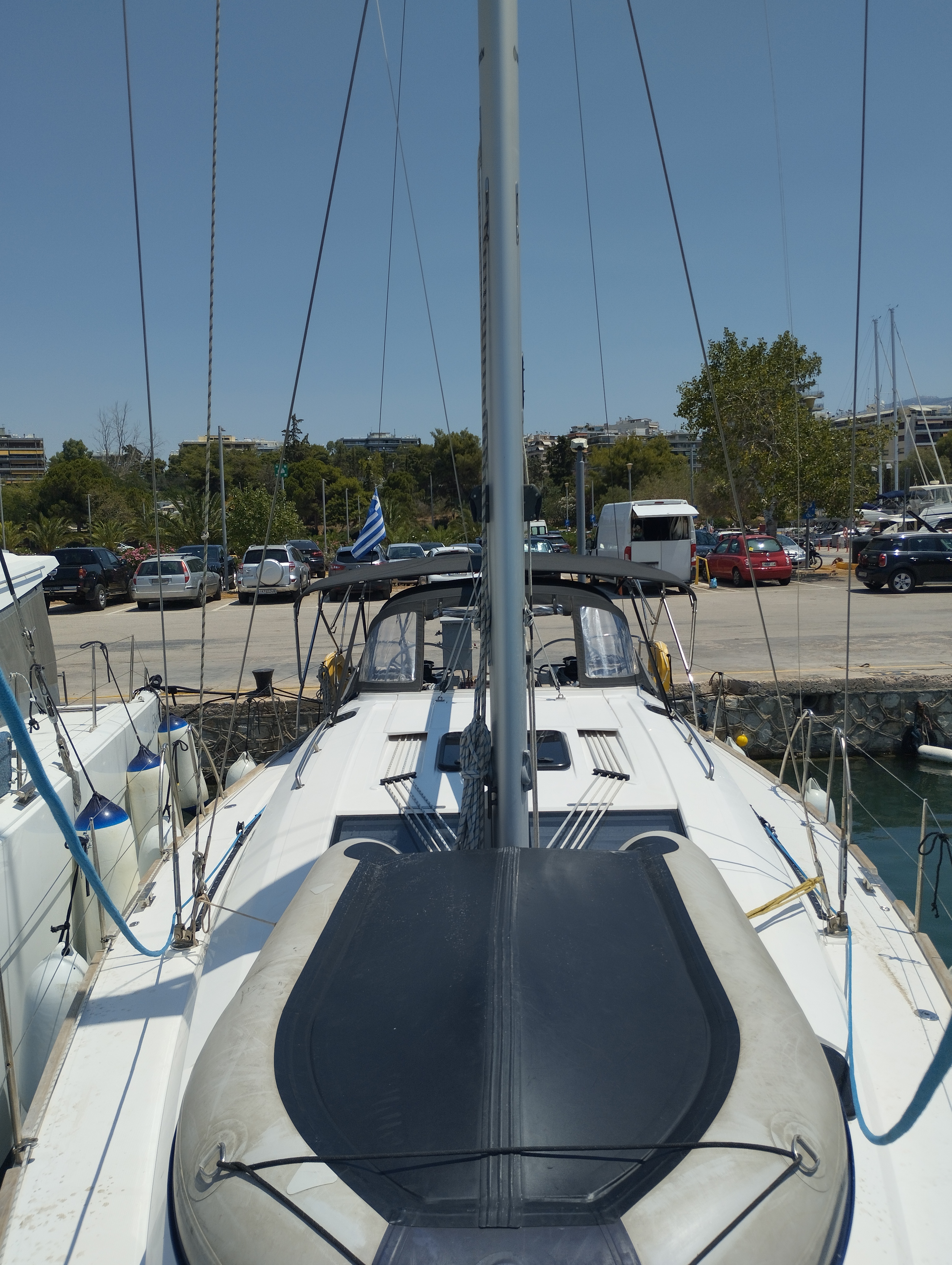 | Outside | Biminitop, Cockpitlautsprecher, Cockpittisch, elektr. Ankerwinsch, Gangway, Solaranlage, Sprayhood, Teak im Cockpit |