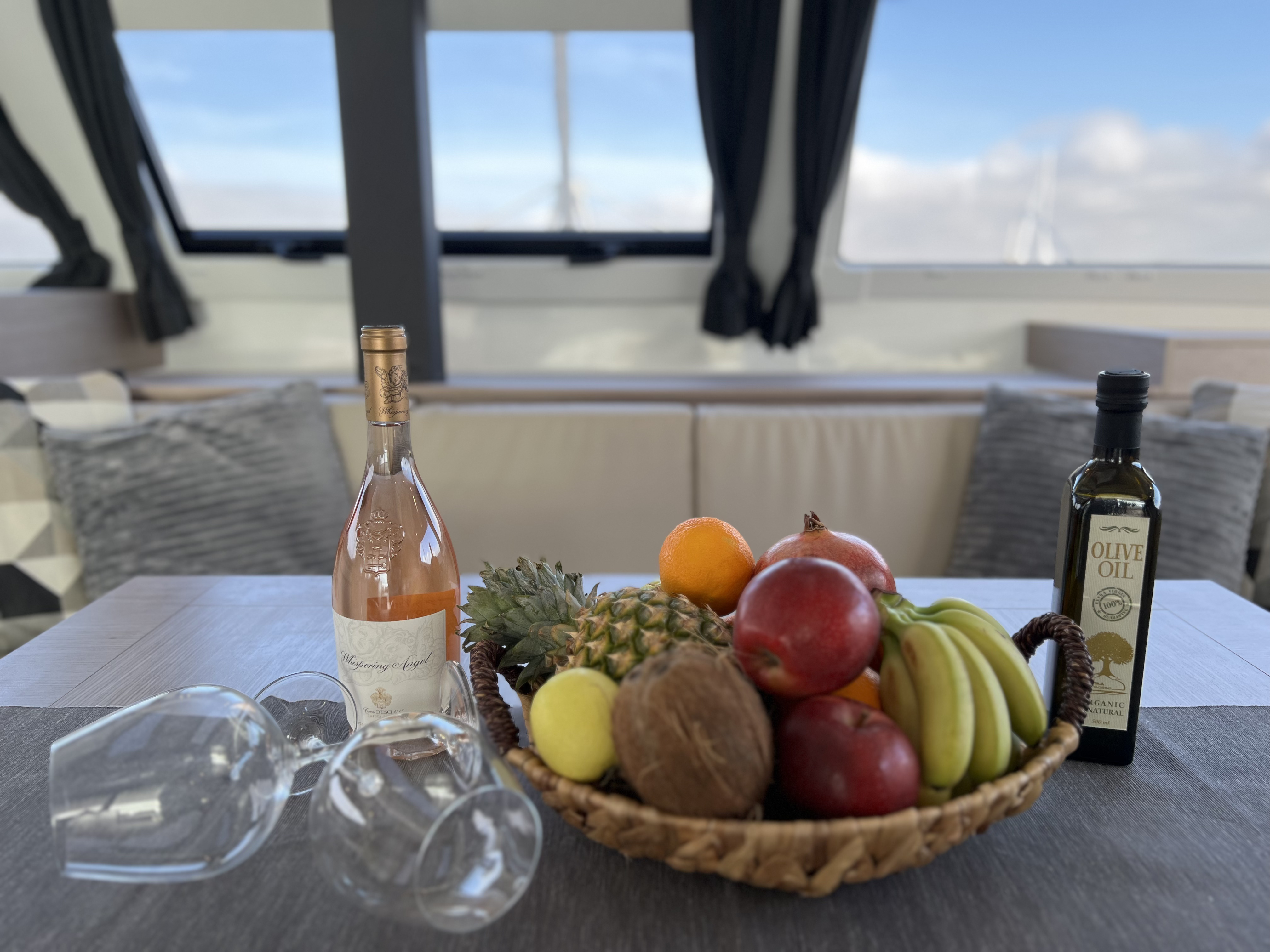 | Outside | Badeleiter, Badeplattform (hydr.), Biminitop, Cockpitdusche, Cockpitlautsprecher, Cockpitleuchte, Cockpitpolster, Cockpittisch, elektr. Ankerwinsch, elektr. Winsch, Gangway, hydraul. Gangway, Solaranlage, Sonnendeck, Unterwasserbeleuchtung, Windex |