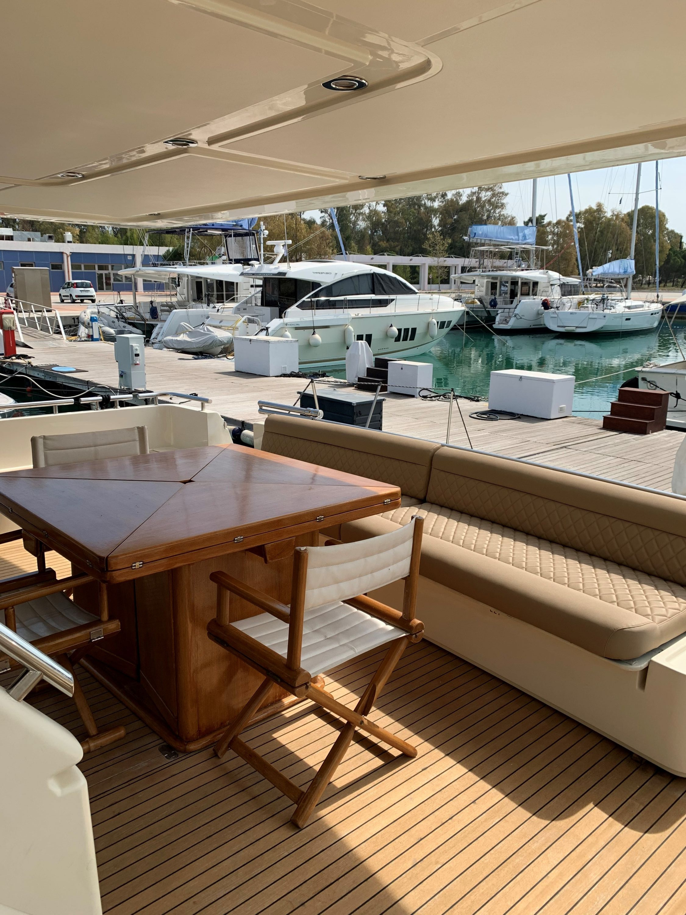 | Outside | Badeleiter, Badeplattform, Biminitop, Cockpitdusche, Cockpitlautsprecher, Cockpittisch, elektr. Ankerwinsch, Grill, Schnorchelausrüstung, Teakdeck |