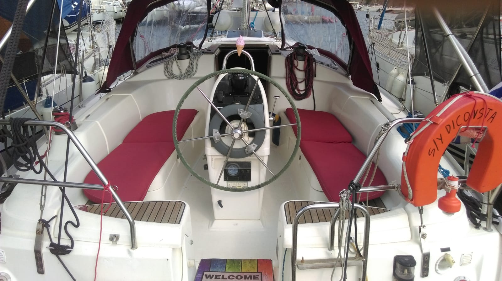 | Outside | 220 V-Landanschluss, Biminitop, Cockpitdusche, Sprayhood |