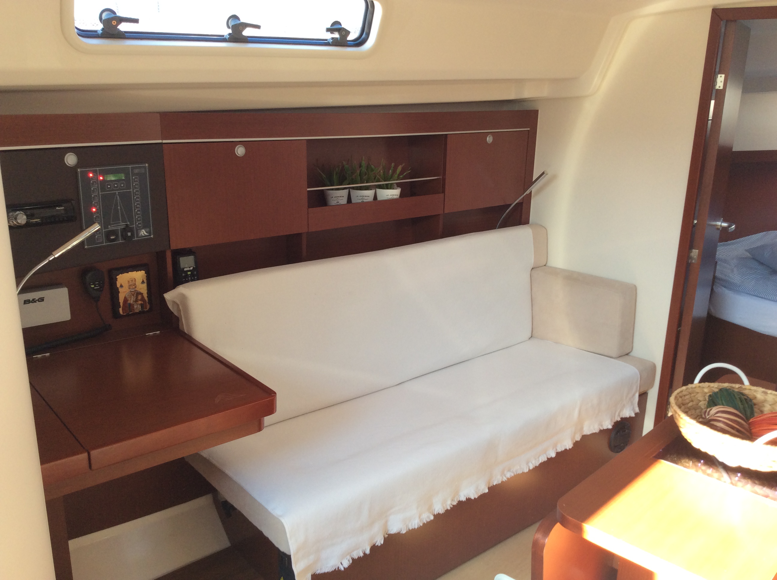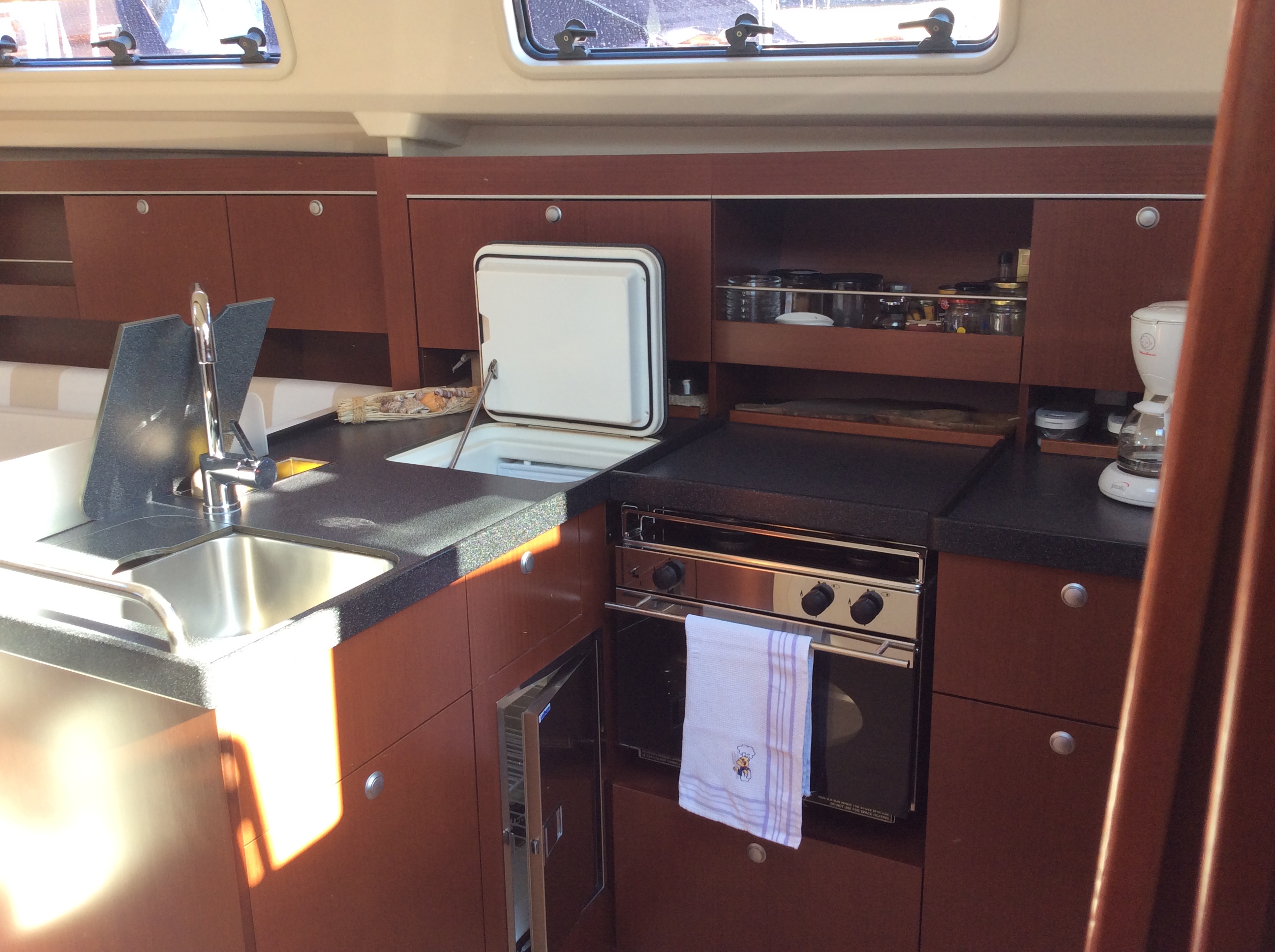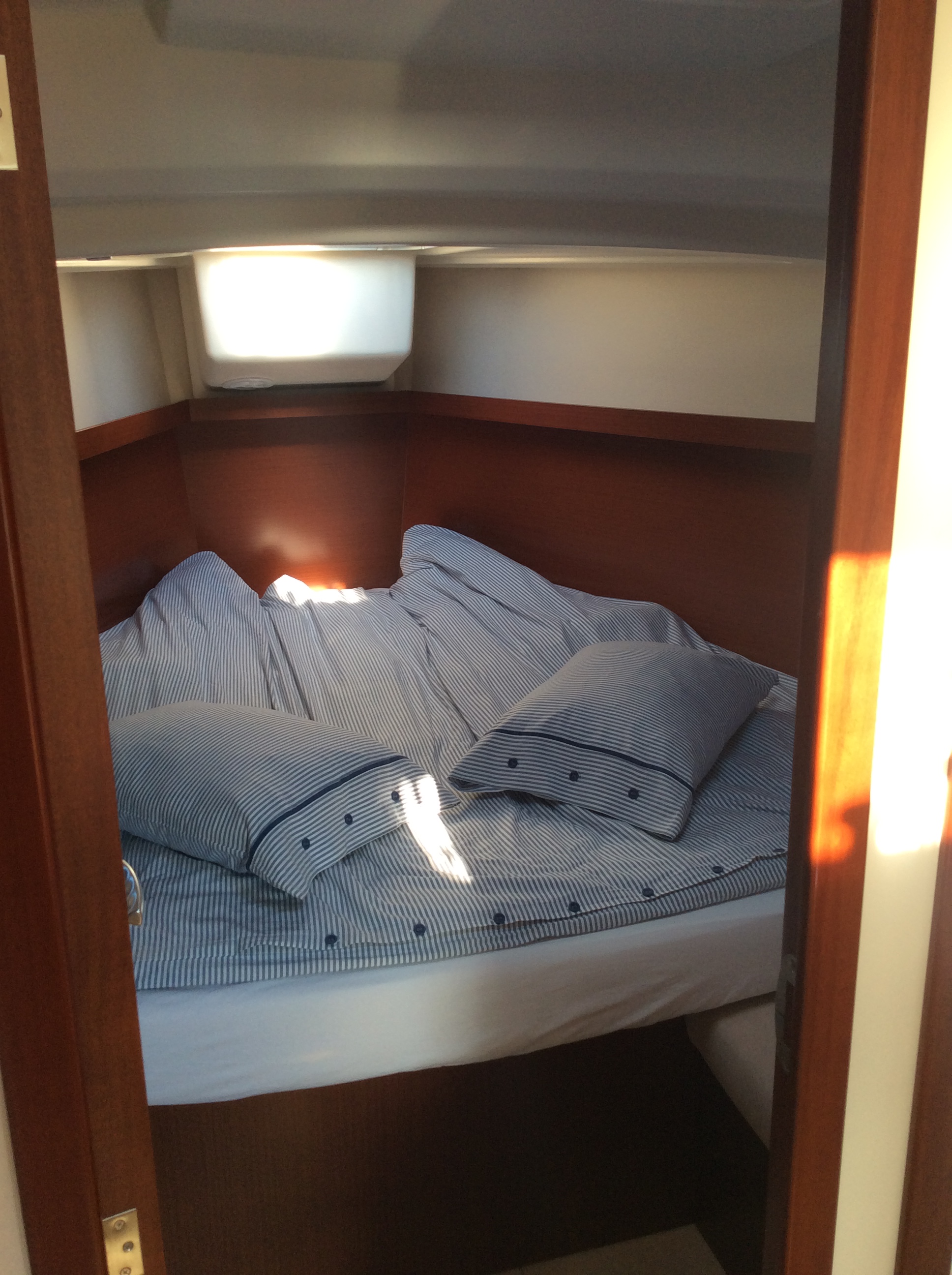 | Safety | Autopilot, Bilgepumpe, Blitzboje, Bootsmannstuhl, Bordapotheke, Bordwerkzeug, Feststoffschwimmwesten, Feuerlöscher, Handbilgepumpe, Lifebelts, Navigationslichter, Nebelhorn, Notpinne, Notsignale, Radarreflektor, Rettungsinsel, Rettungskragen, Rettungswesten, Taschenlampe, UKW-Funk, Zweitanker |