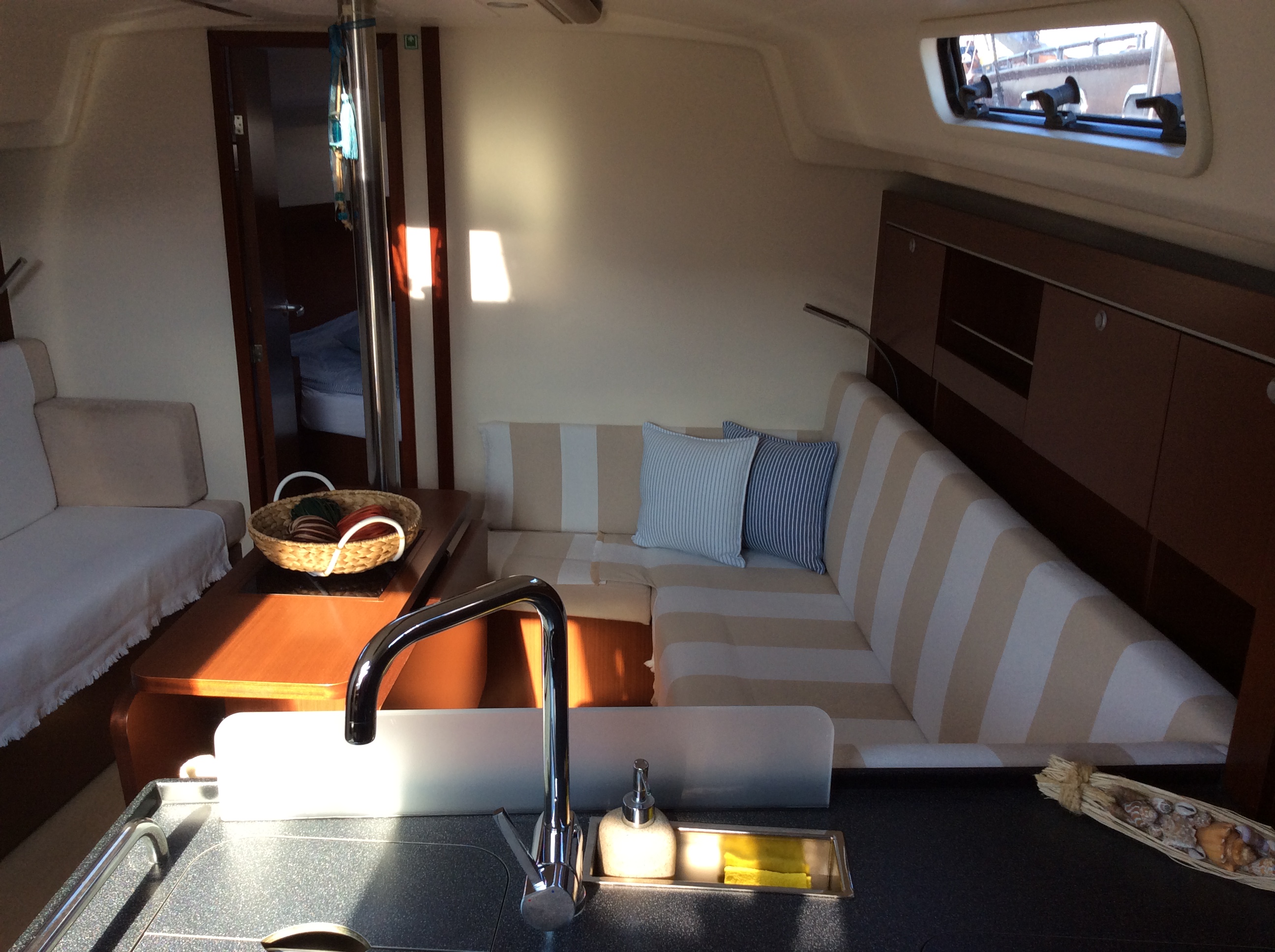| Outside | 220 V-Landanschluss, Anker mit Kette, Badeleiter, Biminitop, Bootshaken, Cockpitpolster, elektr. Ankerwinsch, Fender, Gangway, Schnorchelausrüstung, Sprayhood, Wantenschneider, Wasserschlauch, Winschen |