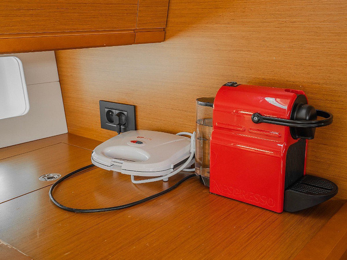 | Inside | Backofen, Fäkalientank, Gefrierschrank, Generator, Inverter 12V/220V, Kaffeemaschine, Klimaanlage (ohne Landstrombedarf), Kühlschrank, Ladegerät, Landstromkabel, Mikrowelle, Toaster, TV, Warmwasser, Watermaker, WC (elektr.) |