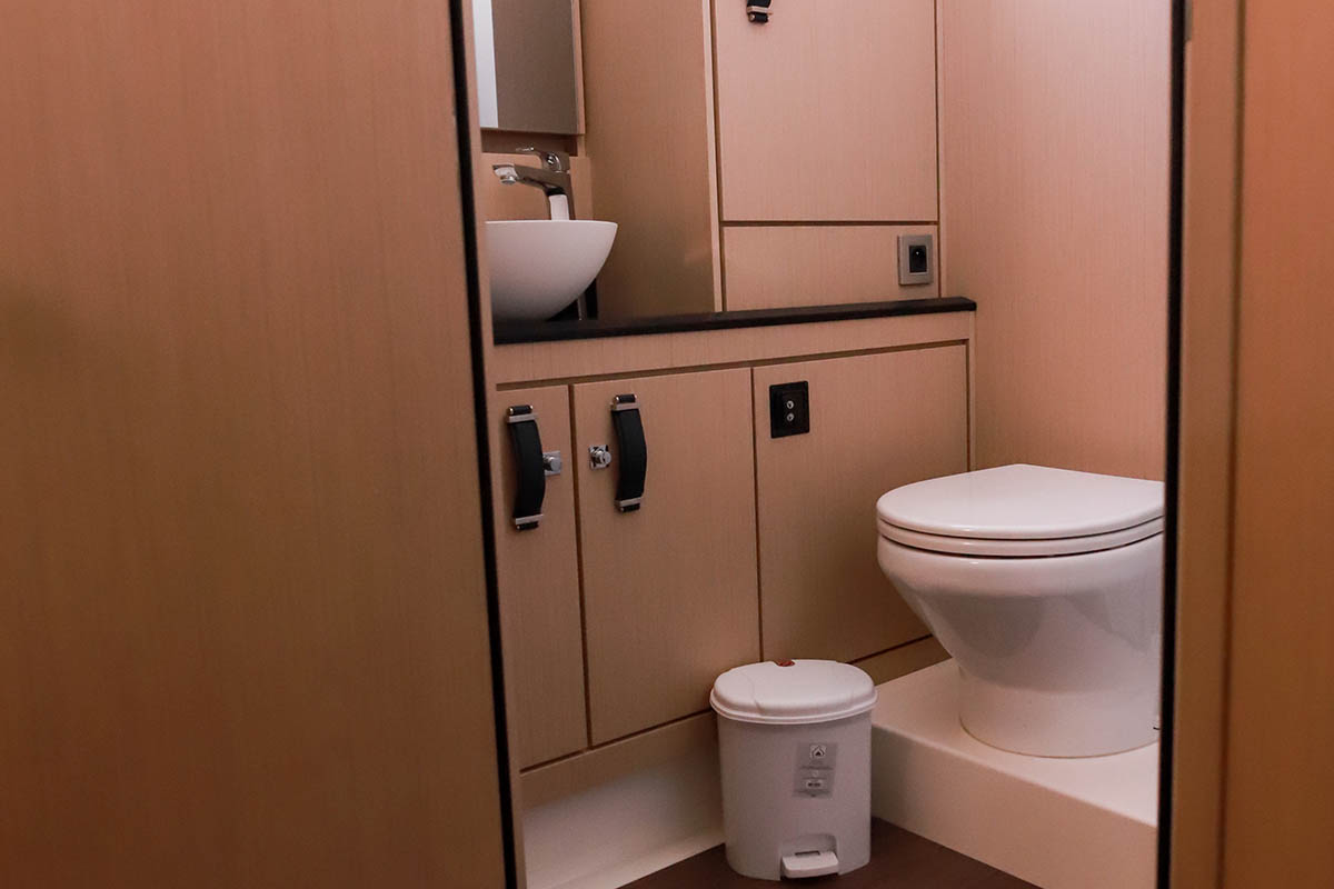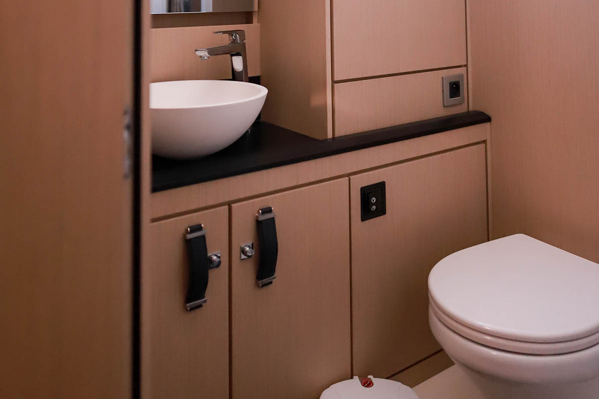 | Inside | Backofen, Fäkalientank, Gefrierschrank, Generator, Geschirrspüler, Klimaanlage (ohne Landstrombedarf), Kühlschrank, Ladegerät, Lautsprecher im Salon, Sound System, Ventilator, WC (elektr.), Weinkühlschrank |