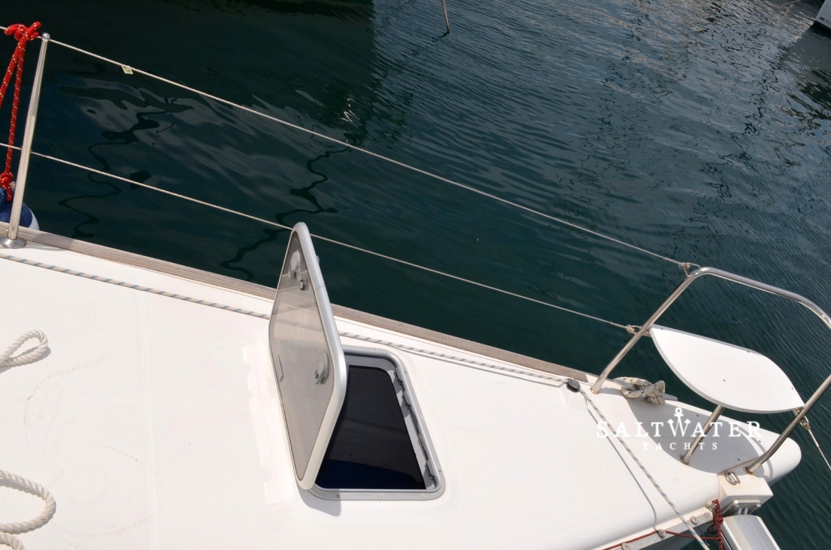 | Outside | 12 V-Anschluss, 220 V-Landanschluss, Badeleiter, Biminitop, Cockpitdusche, Cockpitlautsprecher, Cockpitpolster, Cockpittisch, Davits, elektr. Ankerwinsch, elektr. Großwinsch, Fender, Gangway, Schnorchelausrüstung, Solaranlage, Sprayhood |