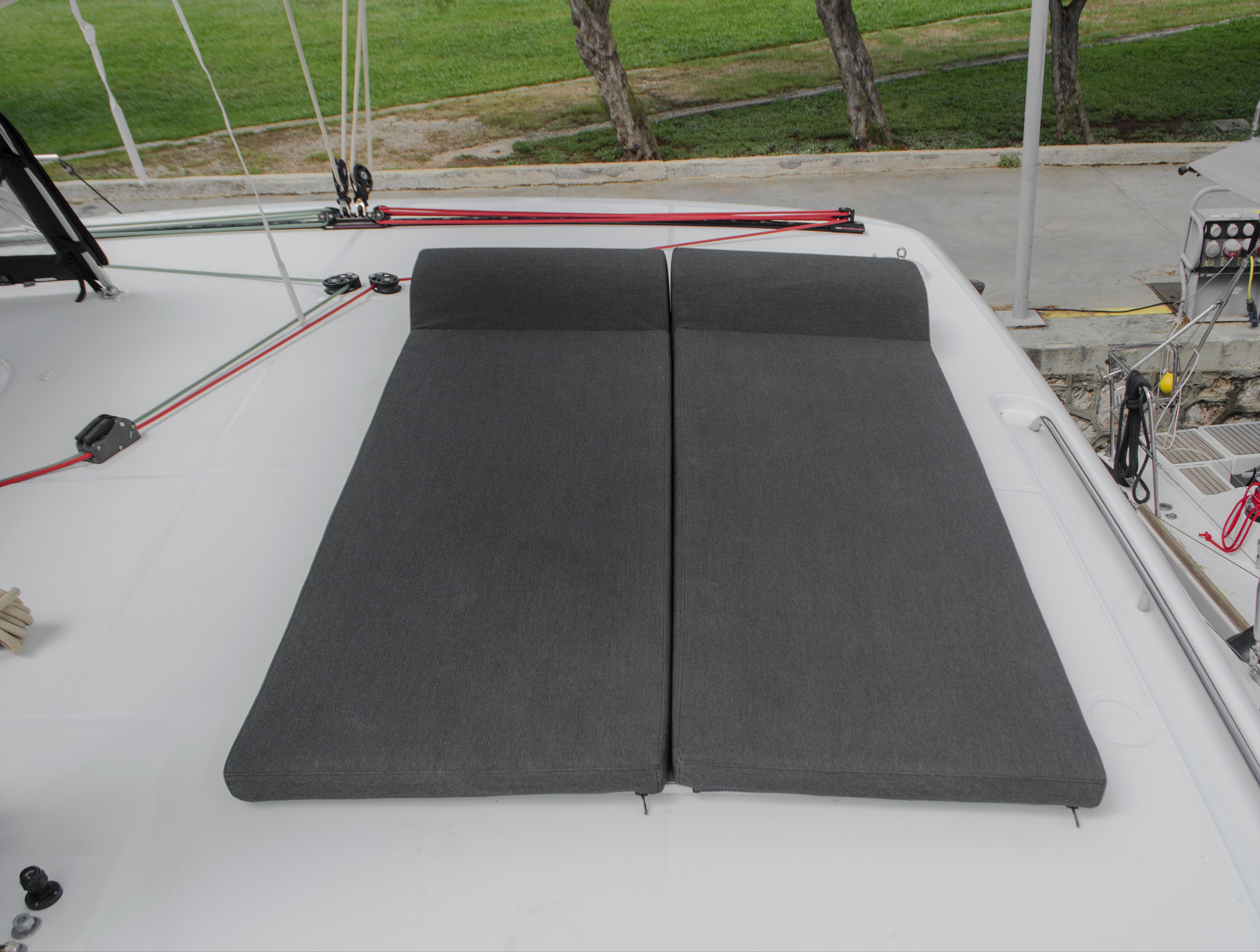 | Outside | Biminitop, Cockpitdusche, Cockpitlautsprecher, Cockpitpolster, Cockpittisch, elektr. Ankerwinsch, Schnorchelausrüstung, Solaranlage, Teak im Cockpit |