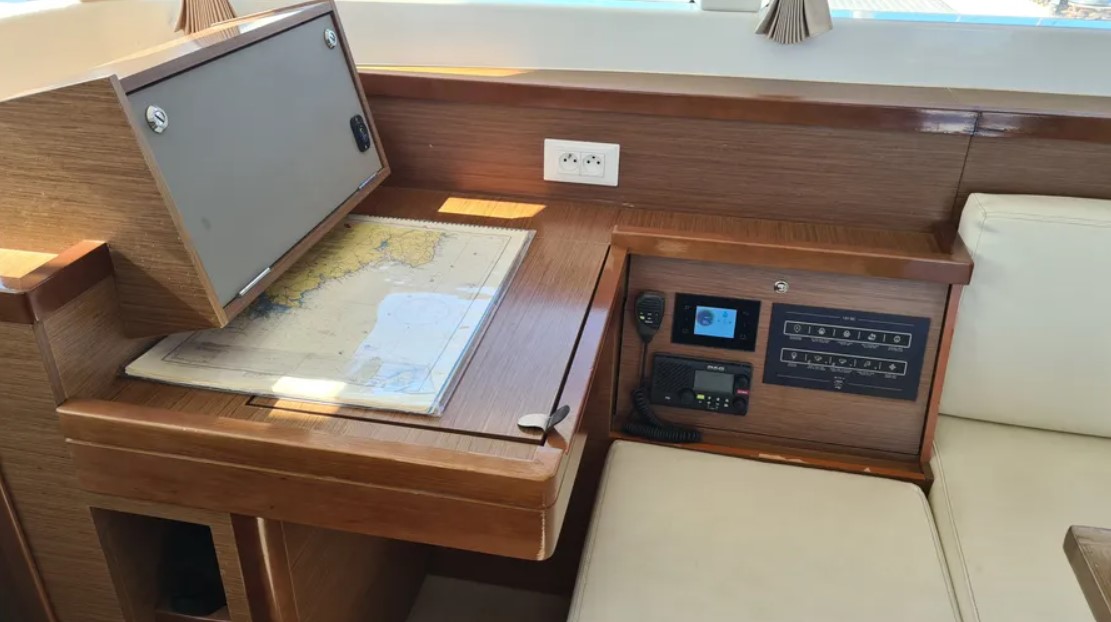 | Navigation | GPS mit Kartenplotter im Cockpit, Handpeilkompass, Seekarten, Windmesser und Echolot |