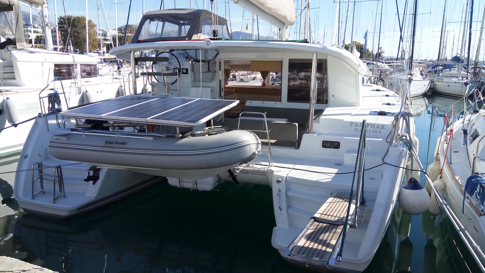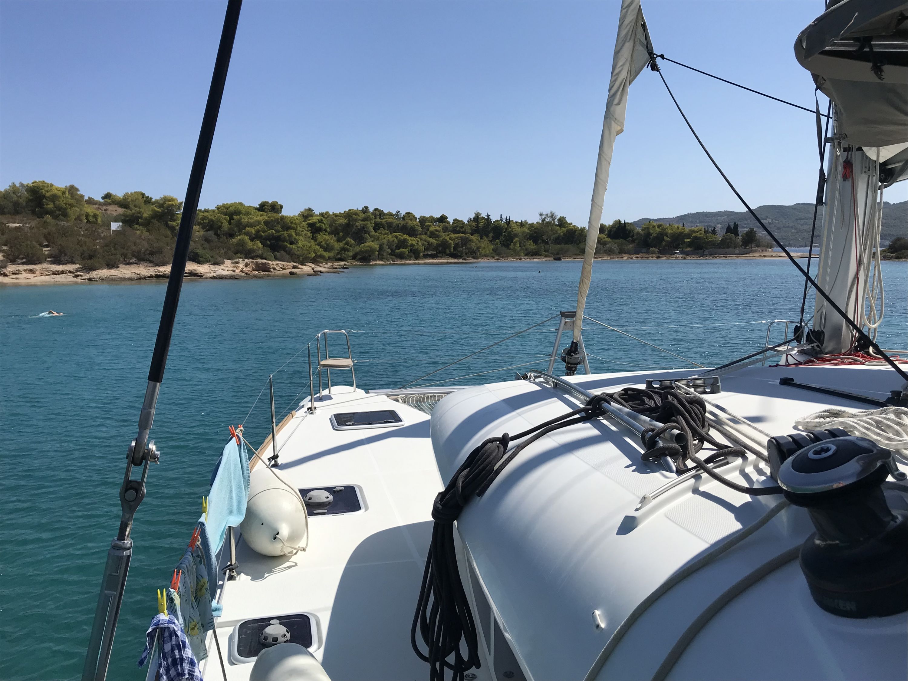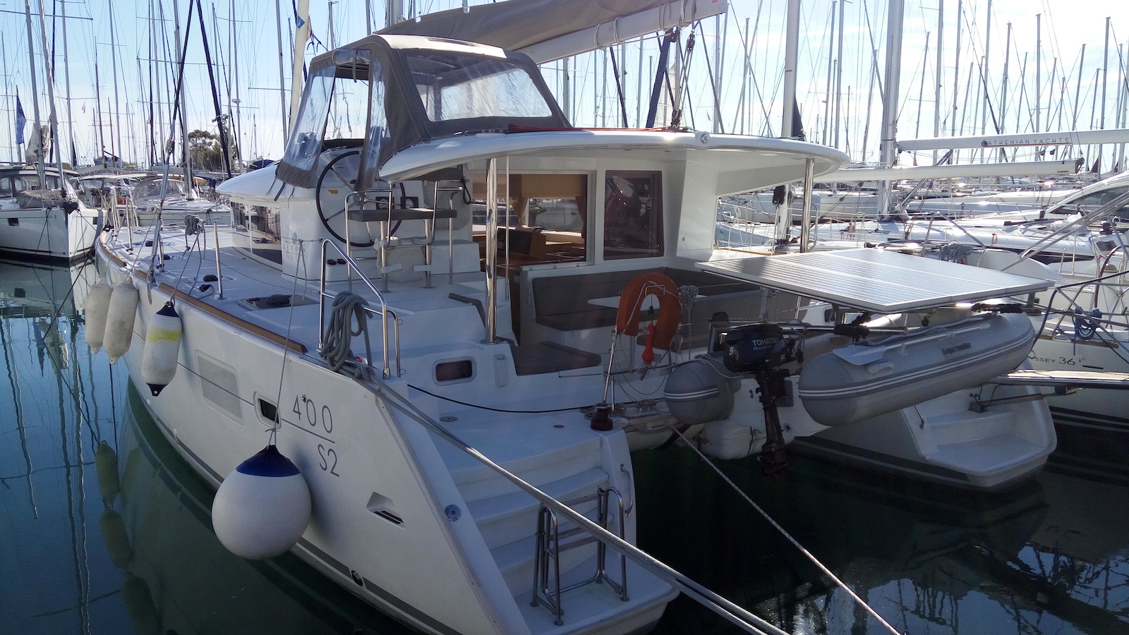 | Outside | 12 V-Anschluss, 220 V-Landanschluss, Anker mit Kette, Biminitop, Cockpitdusche, Cockpitlautsprecher, Cockpittisch, Cockpittisch mit Eisbox, Davits, elektr. Ankerwinsch, elektr. Winsch, Gangway, Schnorchelausrüstung, Solaranlage, Sprayhood, Windex |