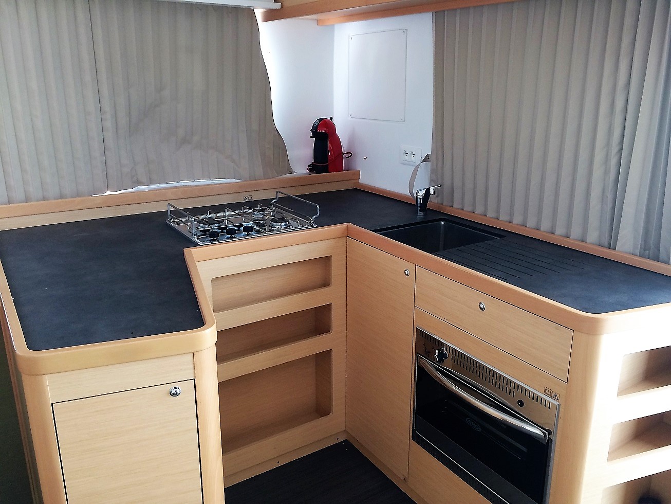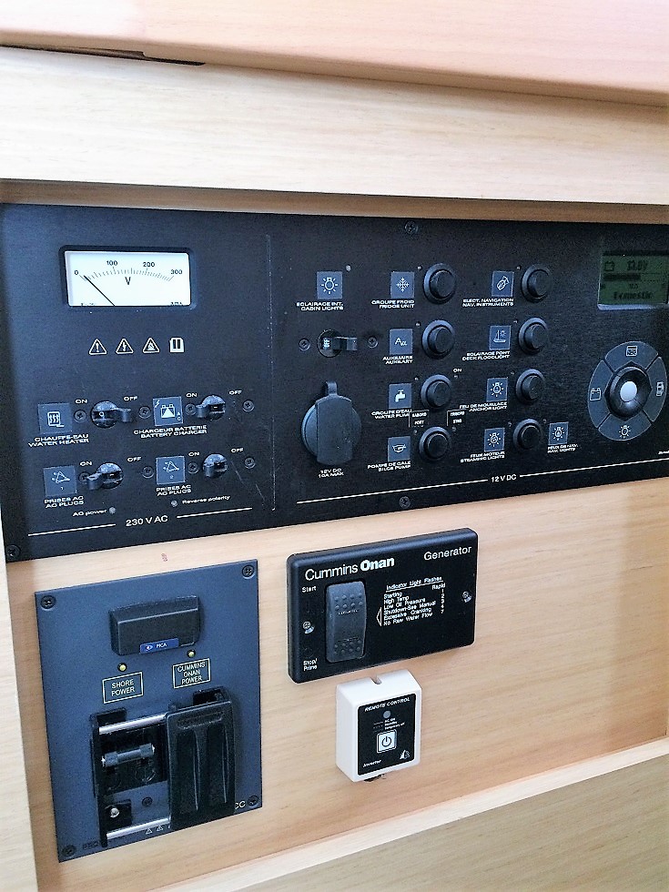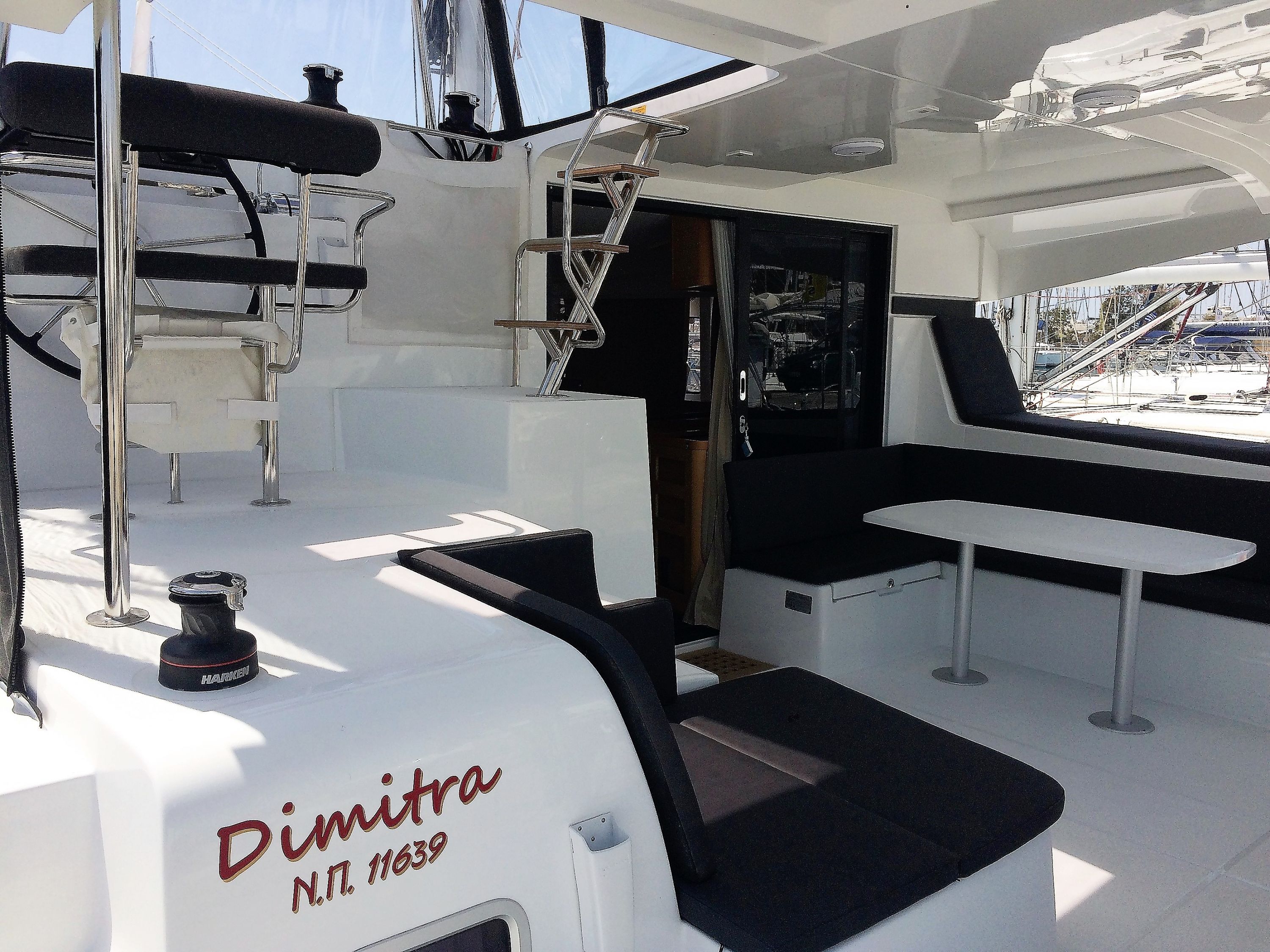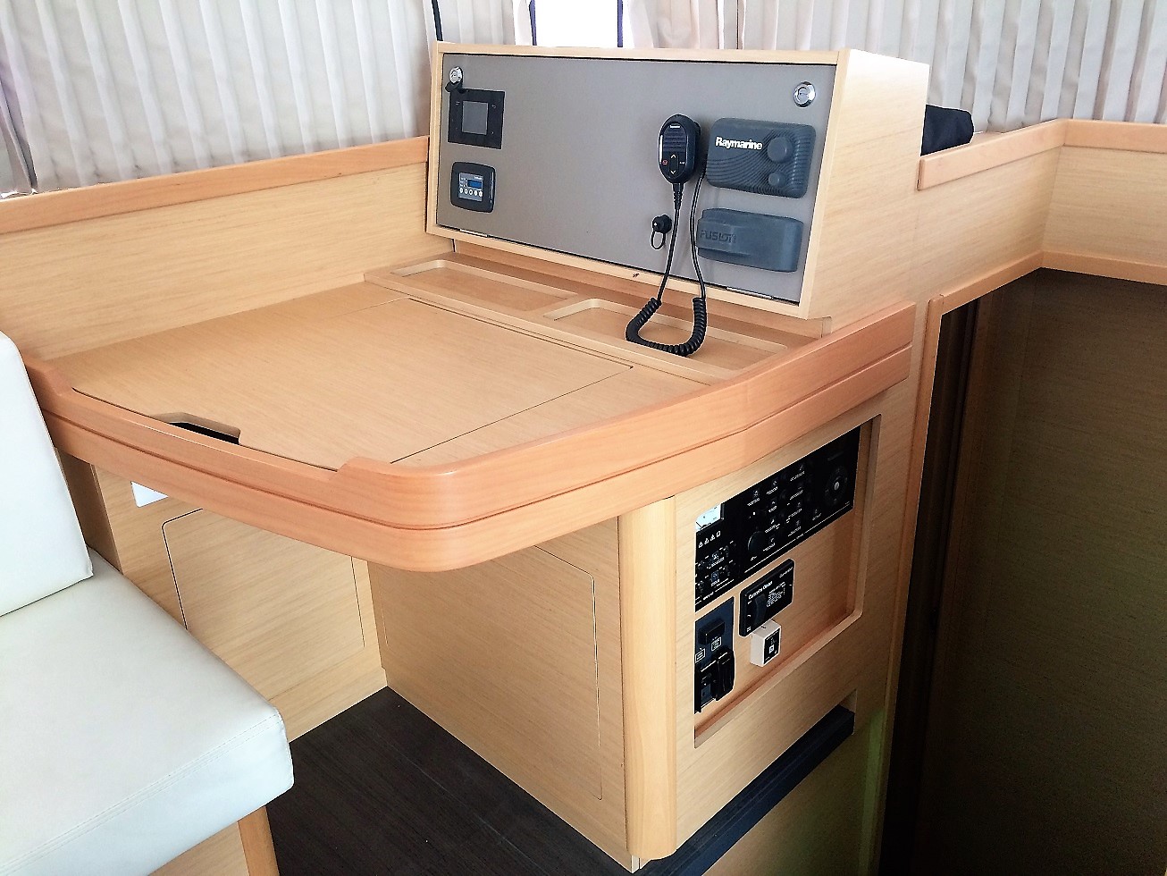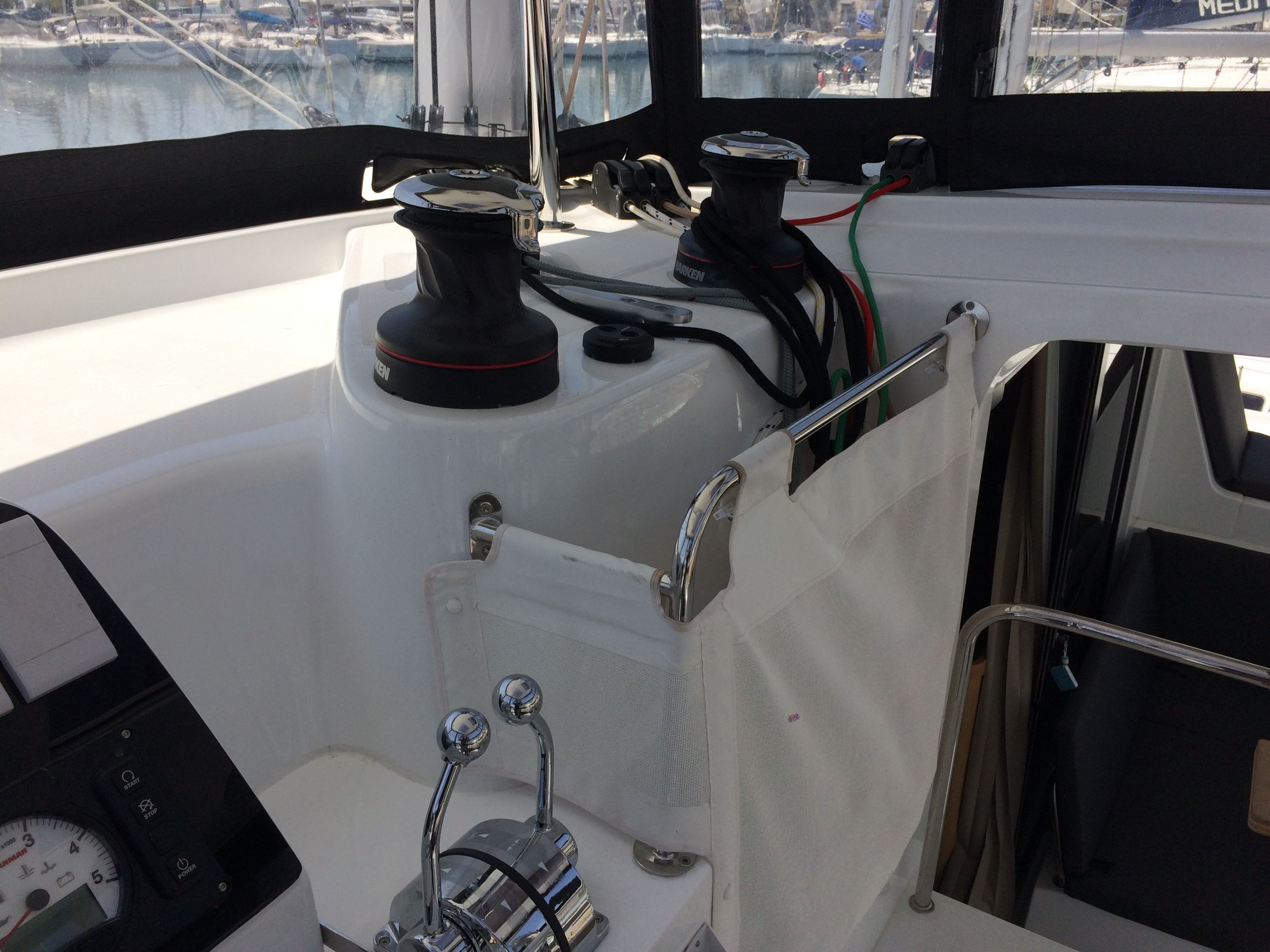 | Outside | Badeleiter, Biminitop, Cockpitdusche, Cockpitlautsprecher, Cockpitpolster, Cockpittisch, Cockpittisch mit Eisbox, elektr. Ankerwinsch, Gangway, Selbstholende Winschen, Solaranlage, Sprayhood, Windex |
