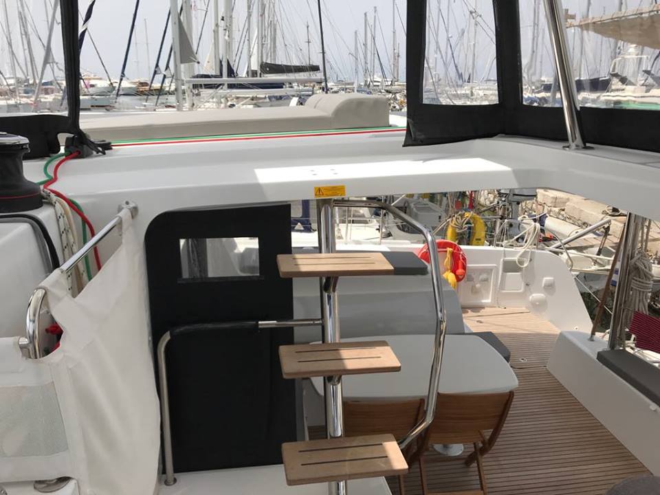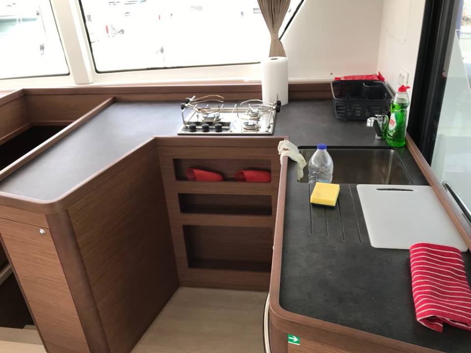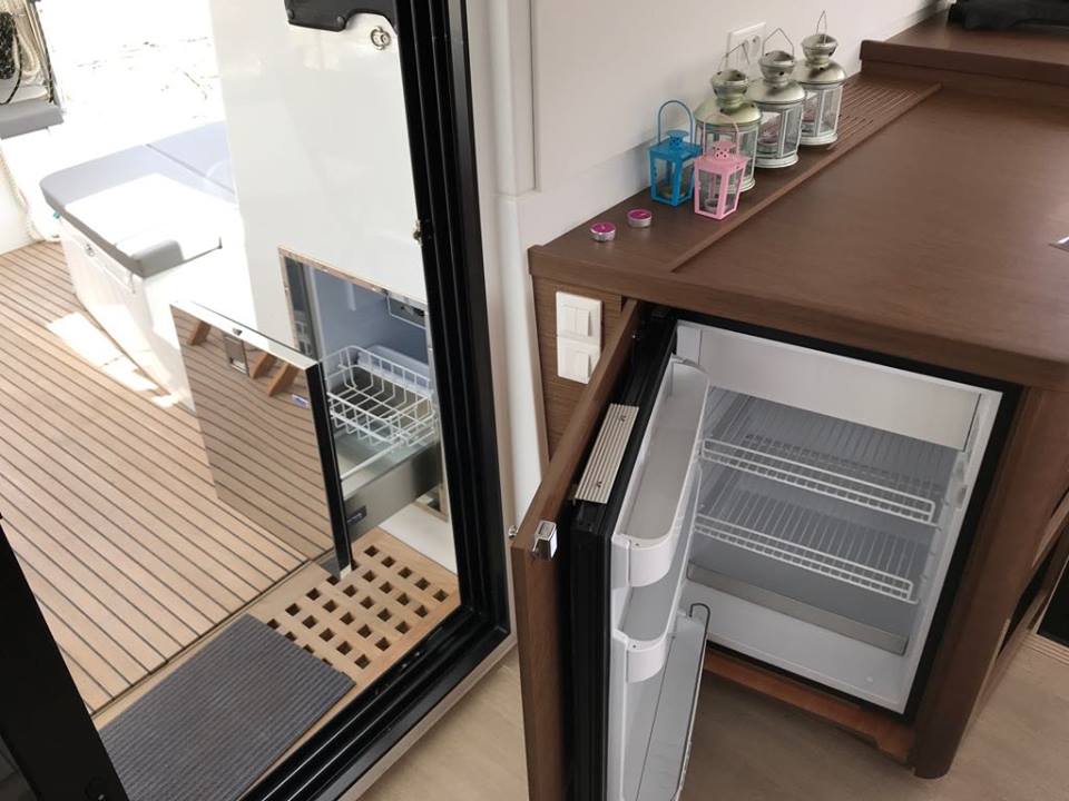 | Inside | Gasherd, Generator, Inverter 12V/220V, Klimaanlage (ohne Landstrombedarf), Kühlschrank, Ladegerät, Pantryausstattung, Radio mit CD, USB, Bluetooth, Watermaker, WC (elektr.) |