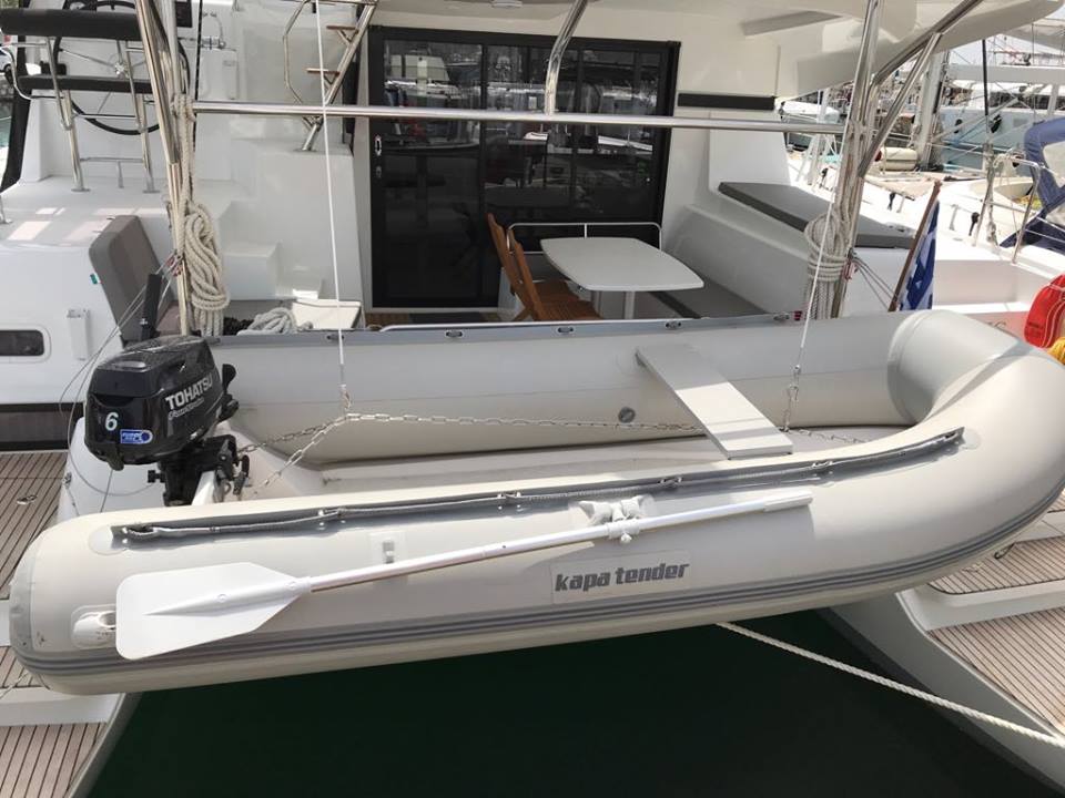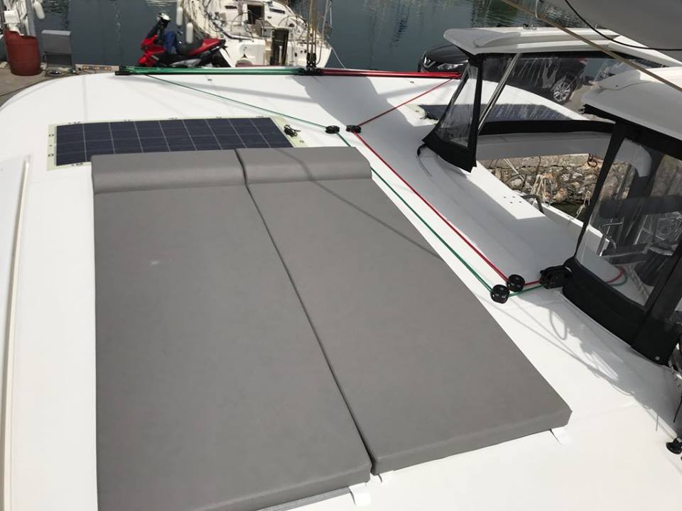 | Outside | Badeleiter, Biminitop, Bootshaken, Cockpitdusche, Cockpitpolster, Gangway, Schnorchelausrüstung, Solaranlage, Sprayhood, Wantenschneider, Wasserschlauch, Winschen |