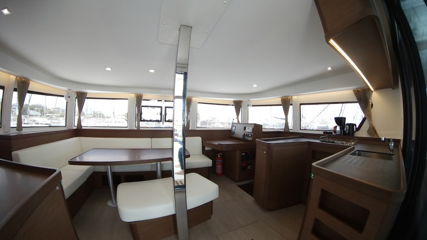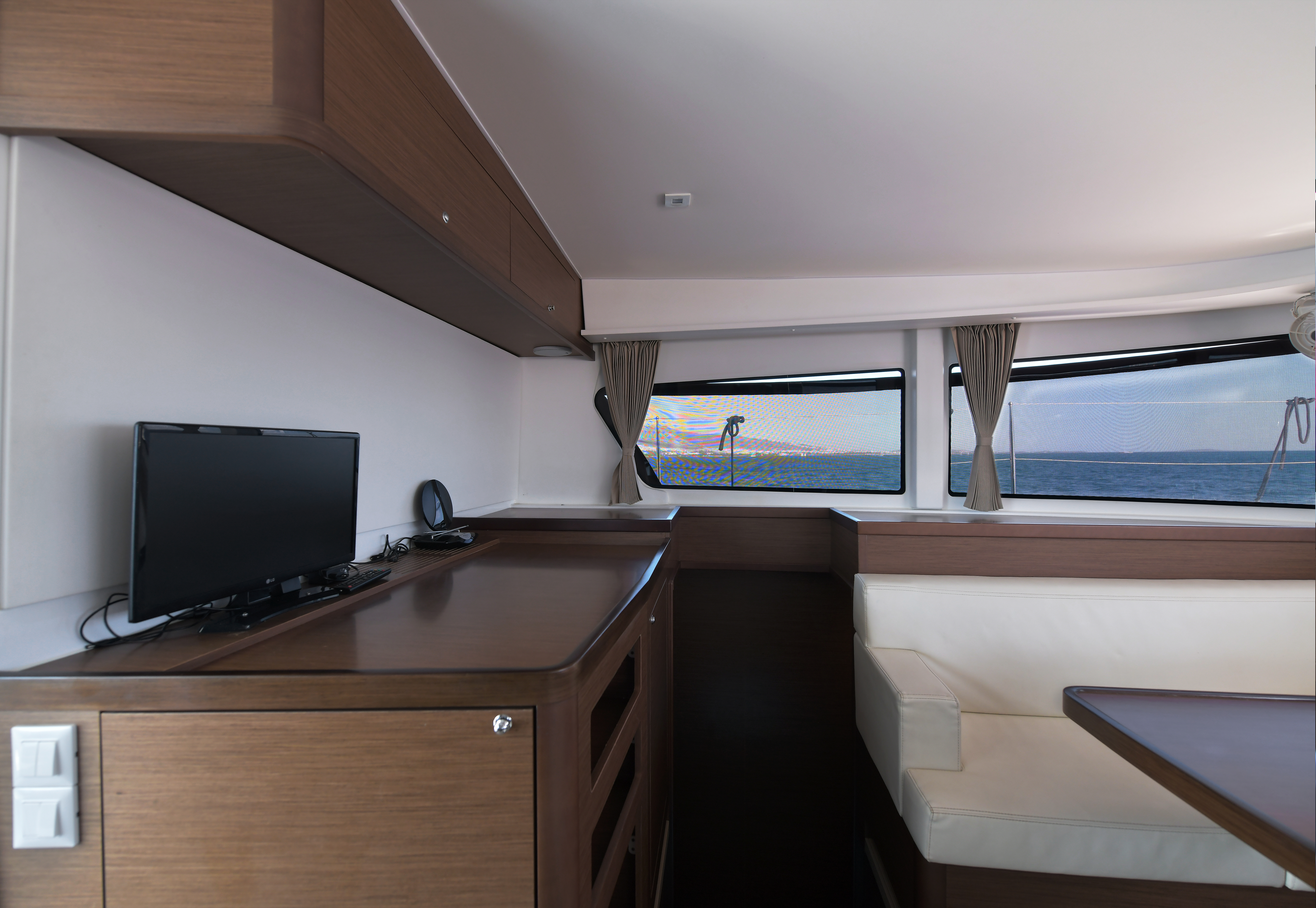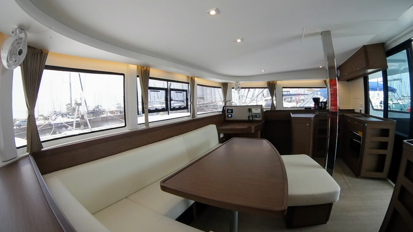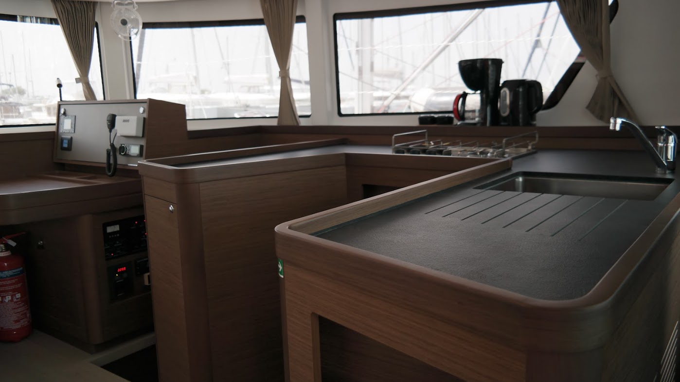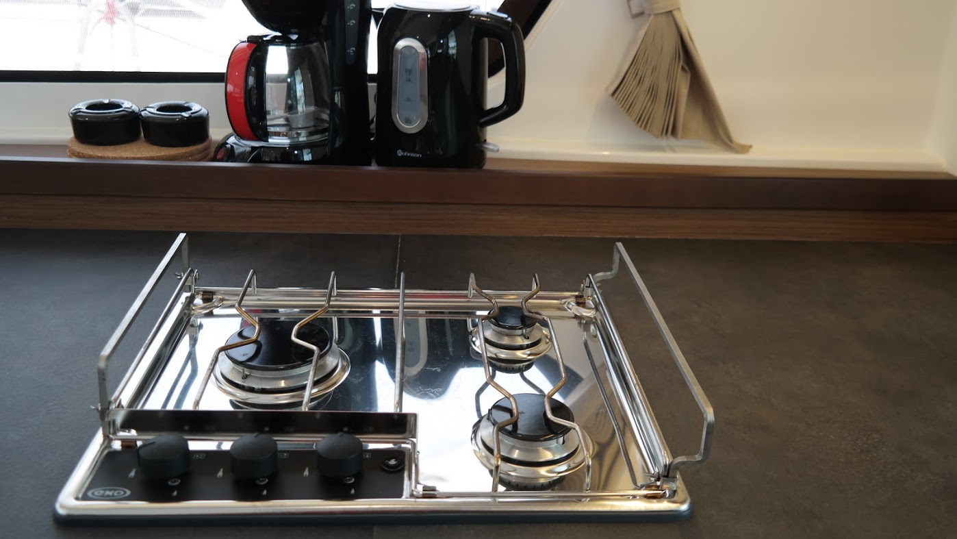 | Inside | Gasherd, Generator, Inverter 12V/220V, Klimaanlage (ohne Landstrombedarf), Kühlschrank, Ladegerät, Pantryausstattung, Radio mit USB und Bluetooth, TV, Ventilator, Watermaker, WC (elektr.) |