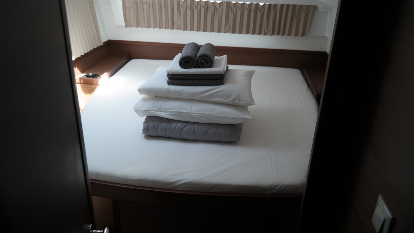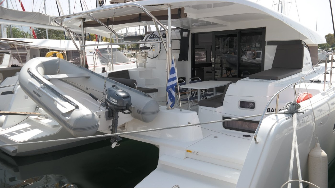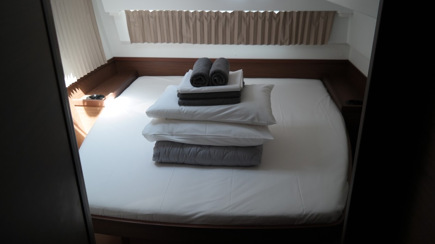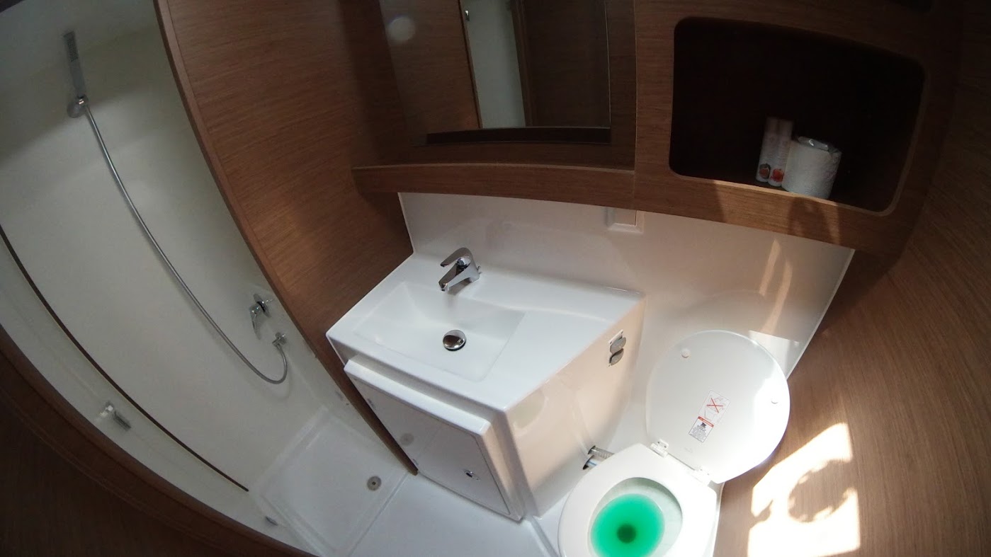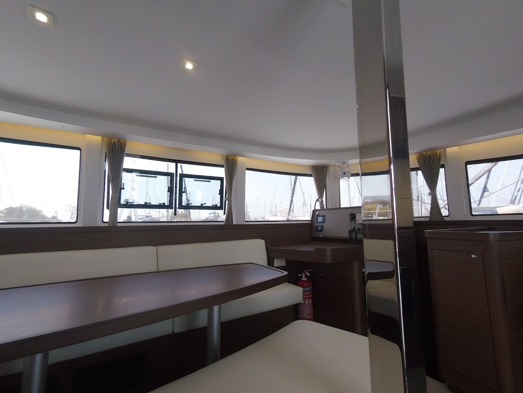 | Inside | Gasherd, Generator, Inverter 12V/220V, Klimaanlage (ohne Landstrombedarf), Kühlschrank, Ladegerät, Pantryausstattung, Radio mit USB und Bluetooth, TV, Ventilator, Watermaker, WC (elektr.) |