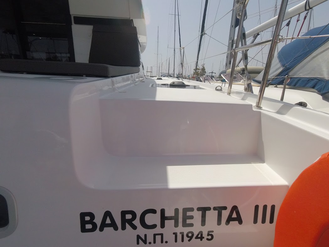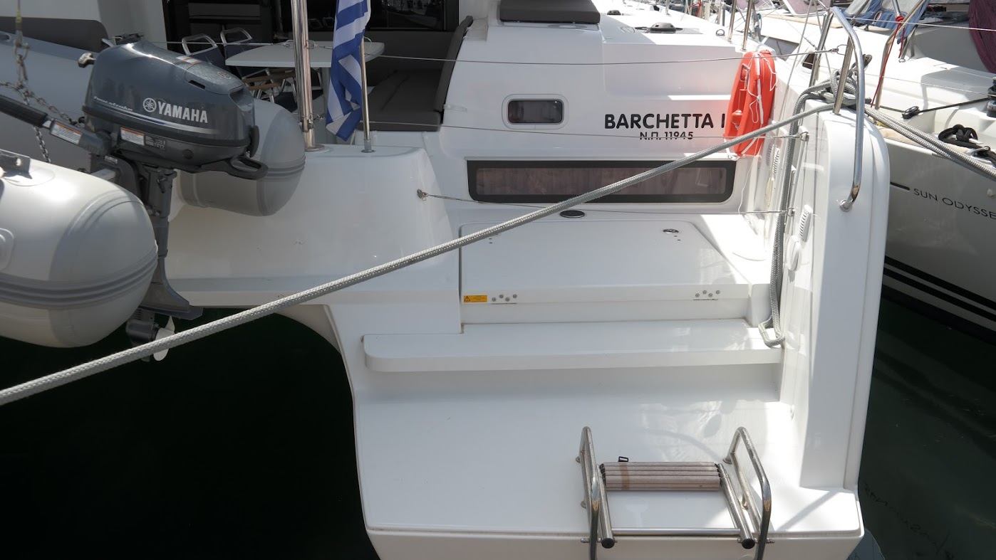 | Outside | Ankerwinsch, Badeleiter, Biminitop, Bootshaken, Cockpitdusche, Cockpitkühlschrank, Cockpitpolster, elektr. Winsch, Gangway, Schnorchelausrüstung, Solaranlage, Sprayhood, Wantenschneider, Wasserschlauch, Winschen |