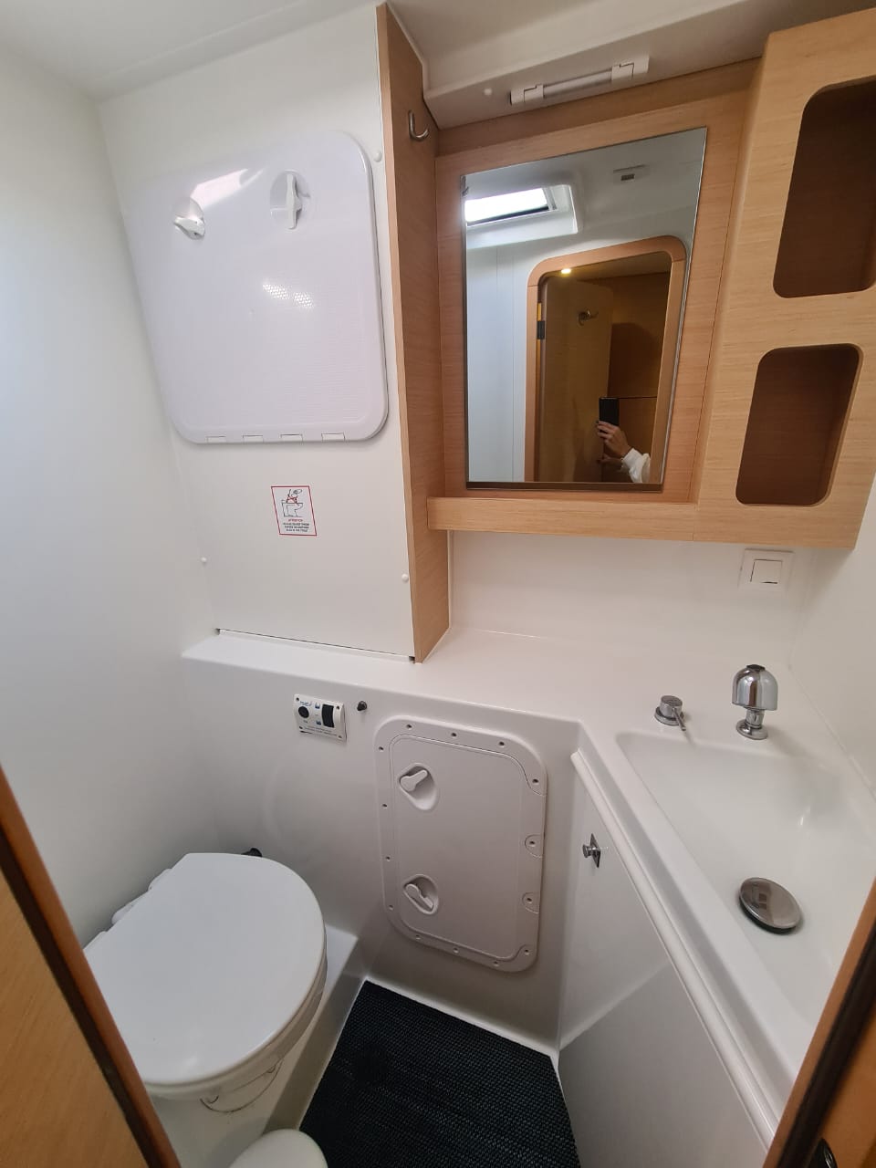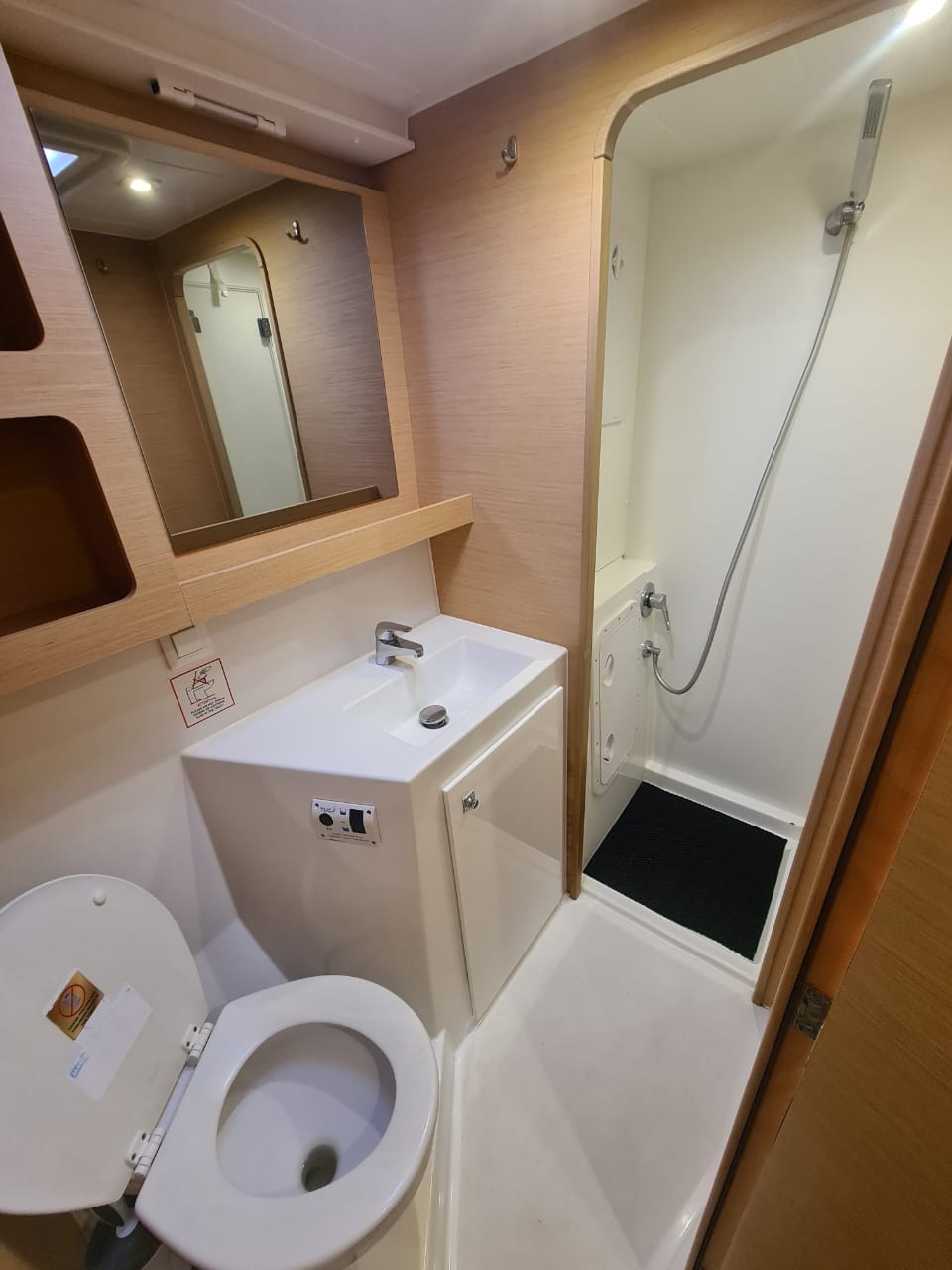 | Inside | 12V Steckdose, Generator, Internet, Kaffeemaschine, Klimaanlage (ohne Landstrombedarf), Kühlschrank, Radio mit CD, Warmwasser, Watermaker |