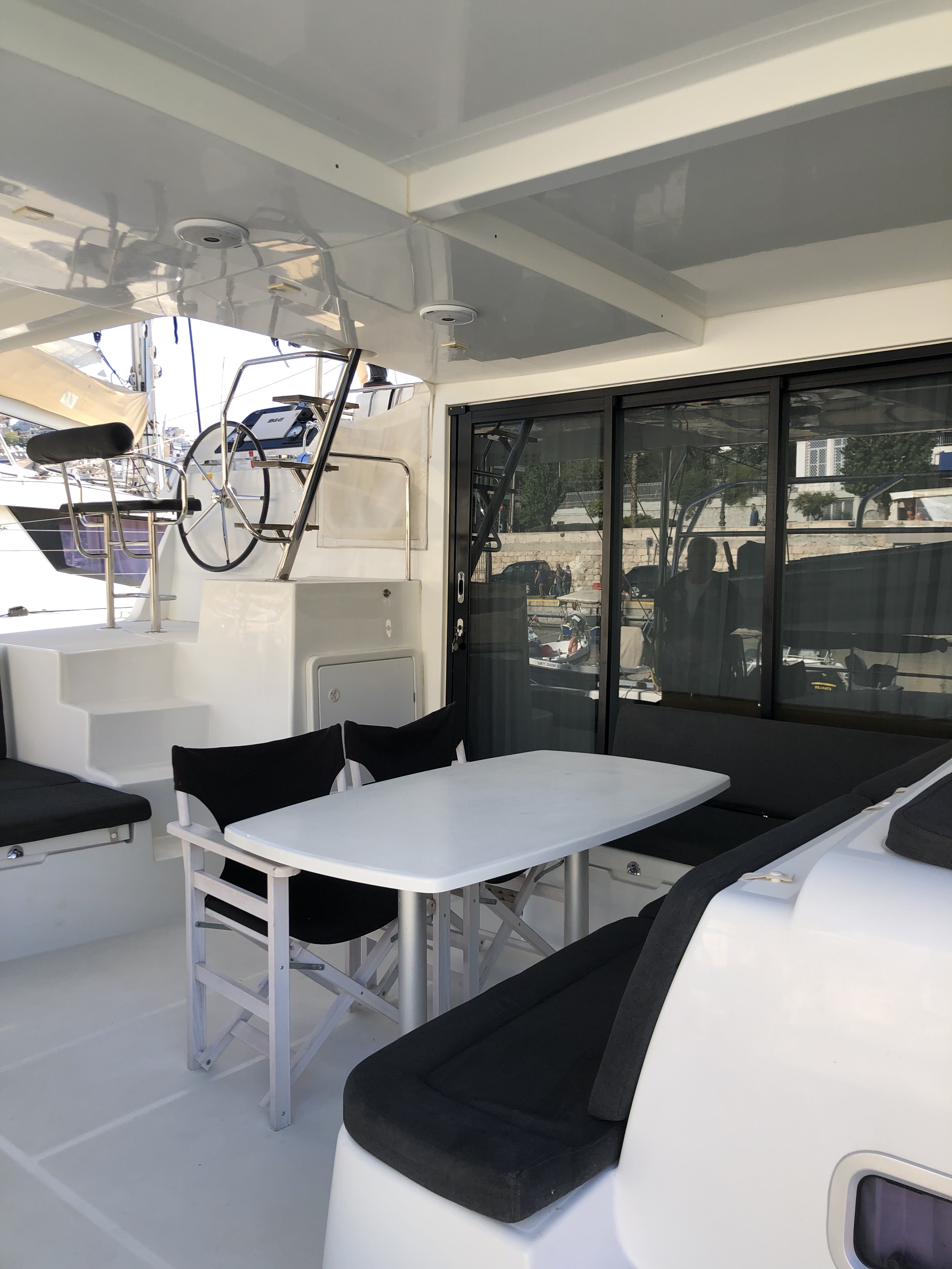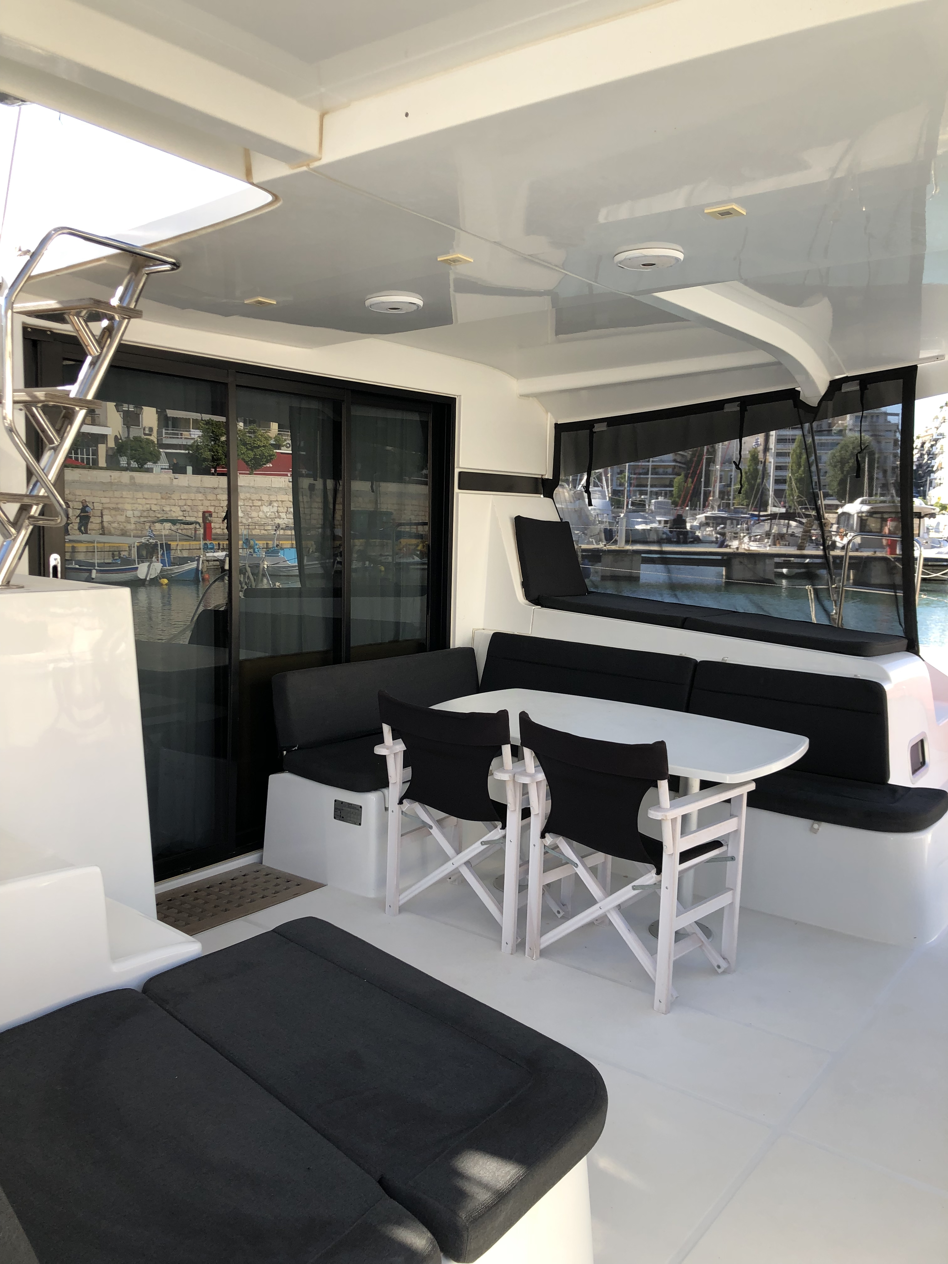 | Outside | 220 V-Landanschluss, Biminitop, Cockpitdusche, Cockpitlautsprecher, Cockpittisch, elektr. Ankerwinsch, Sprayhood |