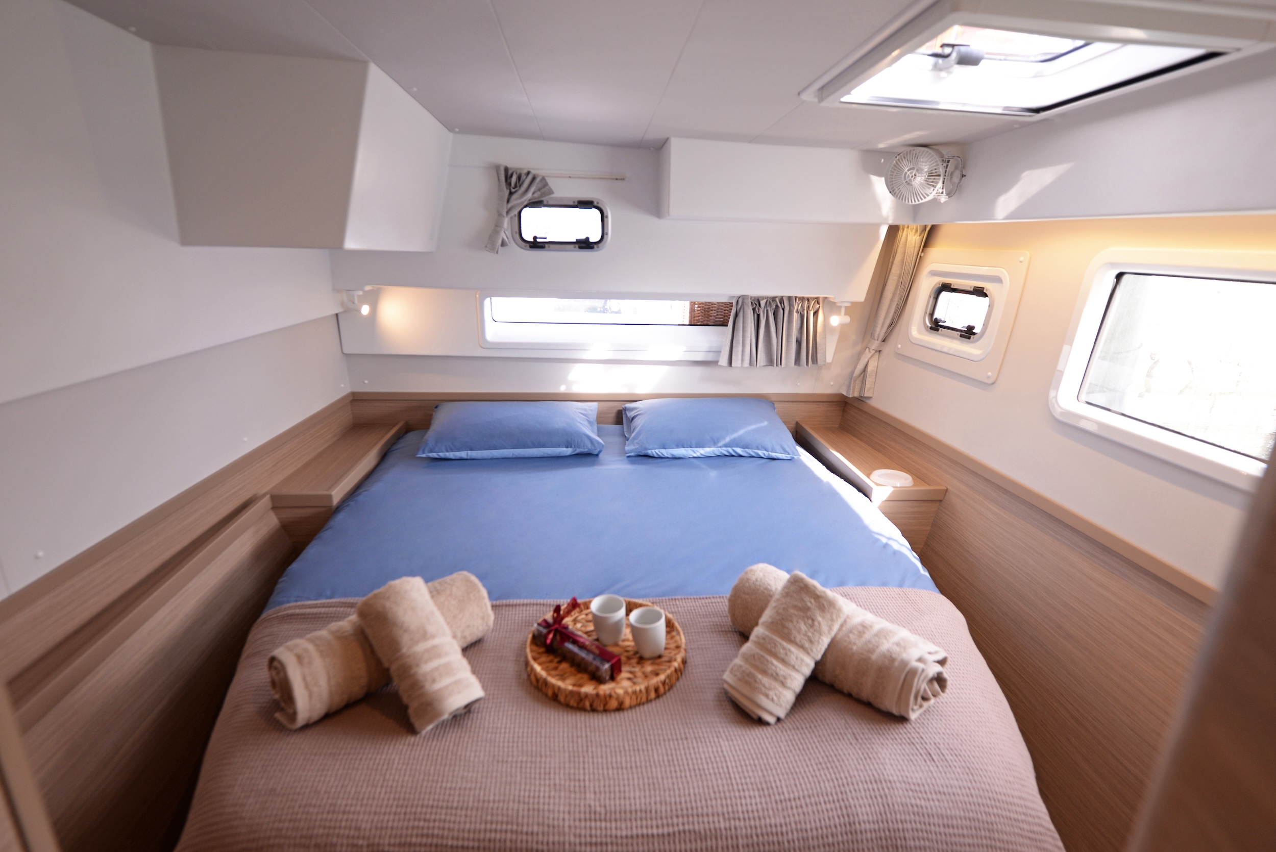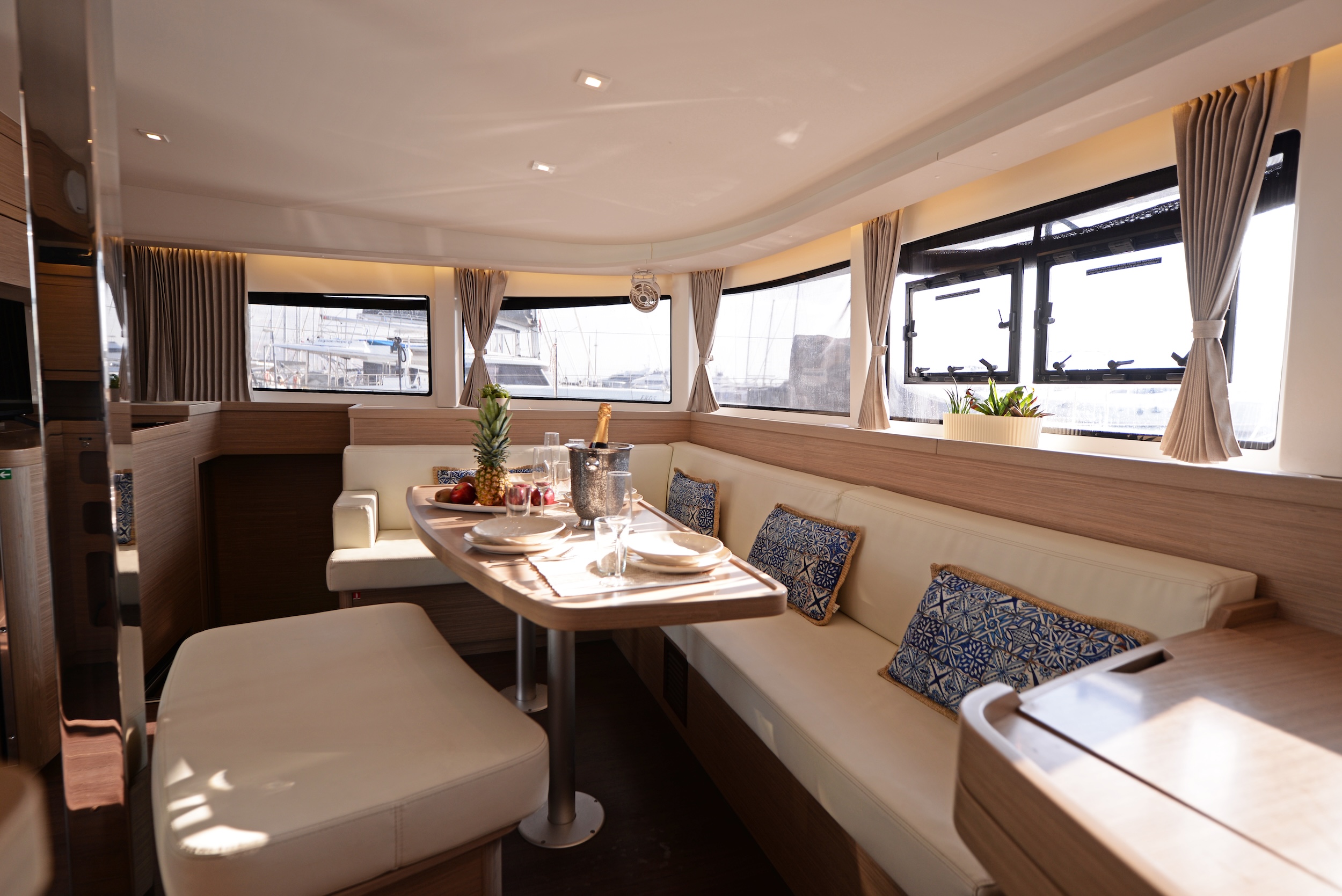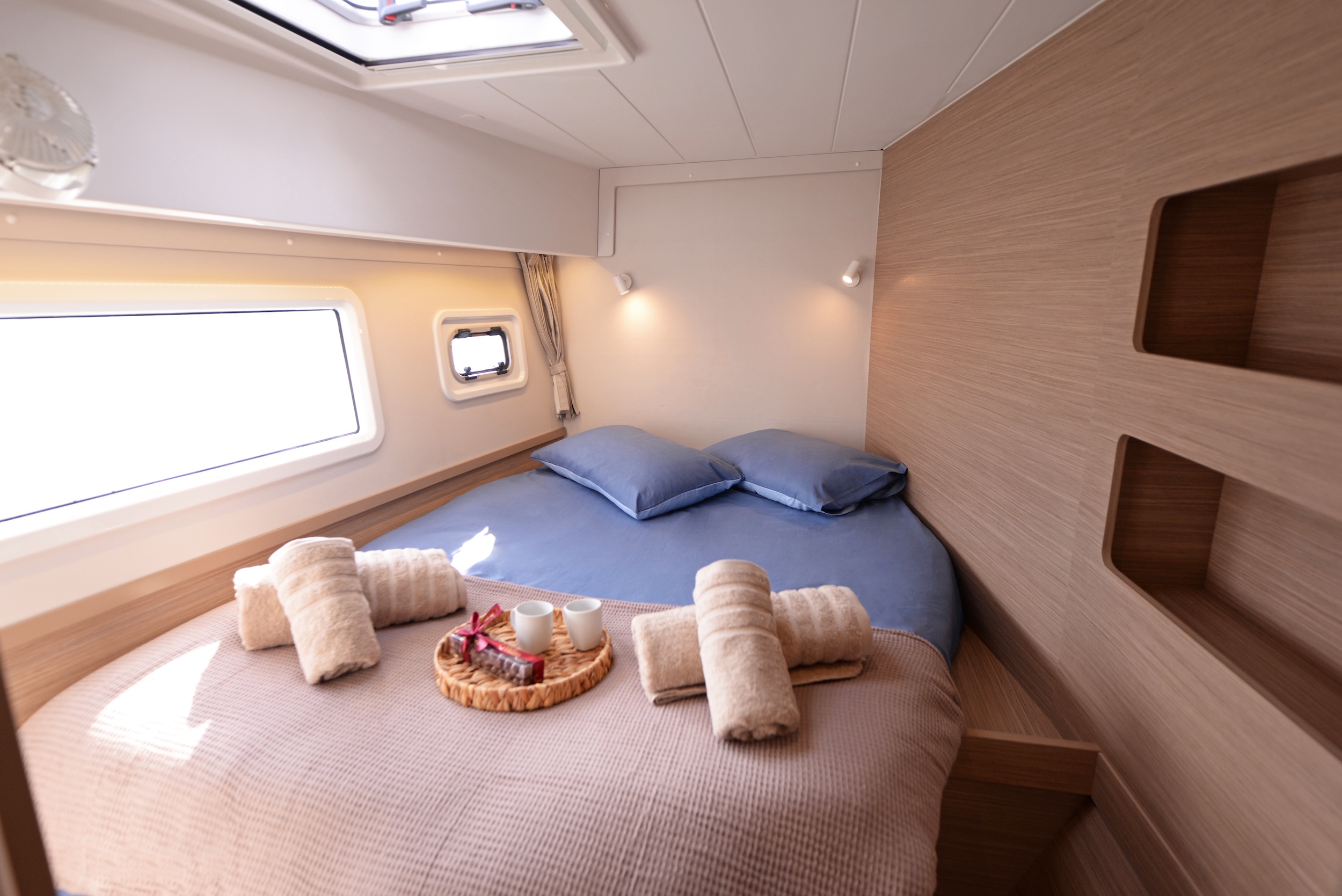| Inside | Eiswürfelmaschine, Gefrierschrank, Generator, Inverter 12V/220V, Klimaanlage (ohne Landstrombedarf), Nespresso-Maschine, Pantryausstattung, TV, Ventilator, Warmwasser, Watermaker |