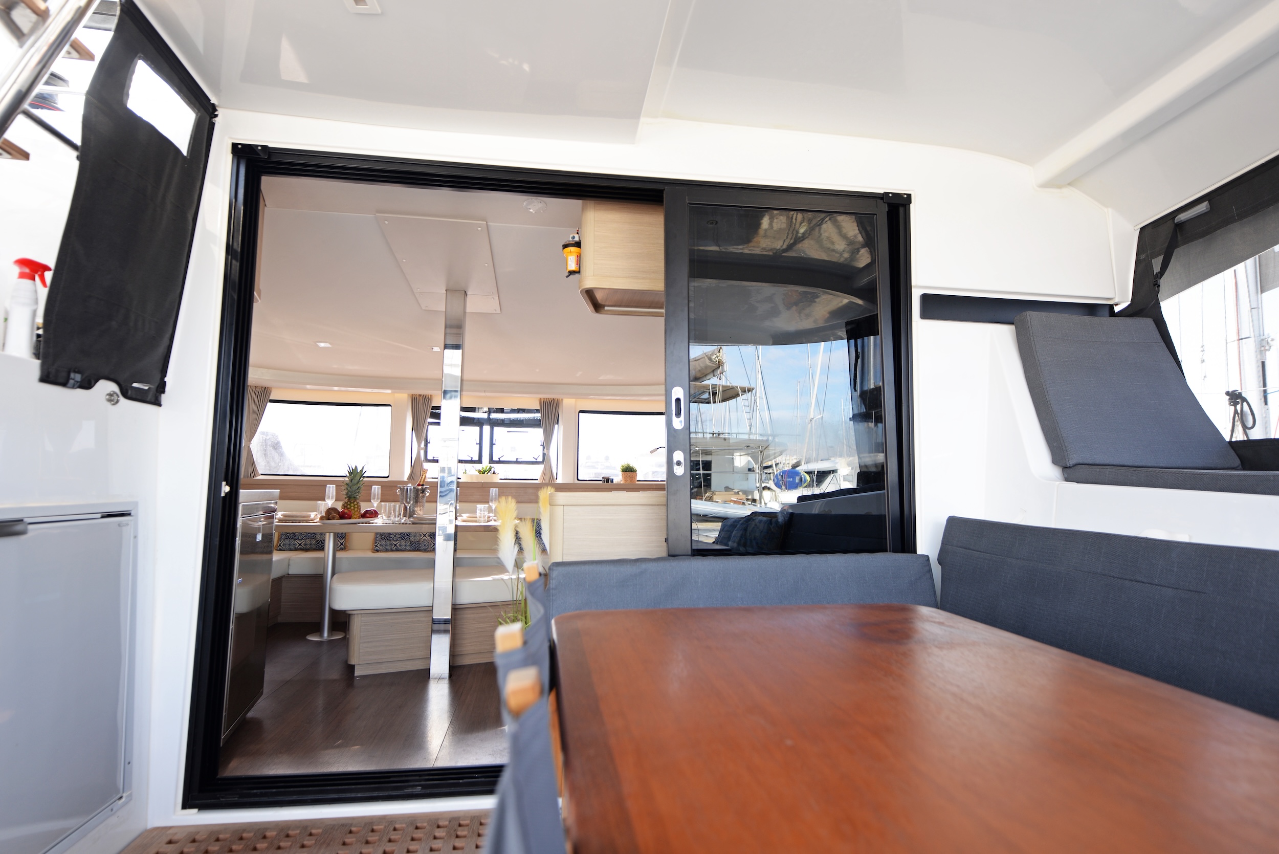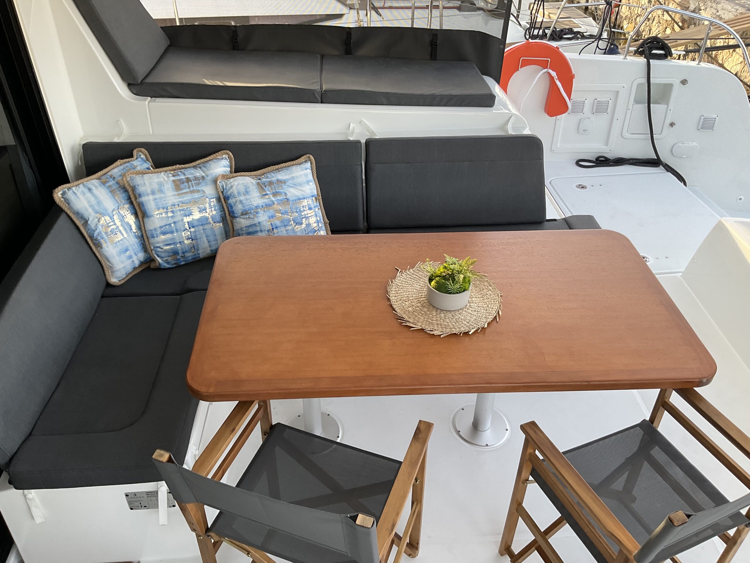 | Outside | Biminitop, Cockpitdusche, Cockpitlautsprecher, Cockpittisch, Gangway, Solaranlage |
