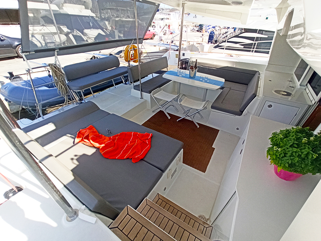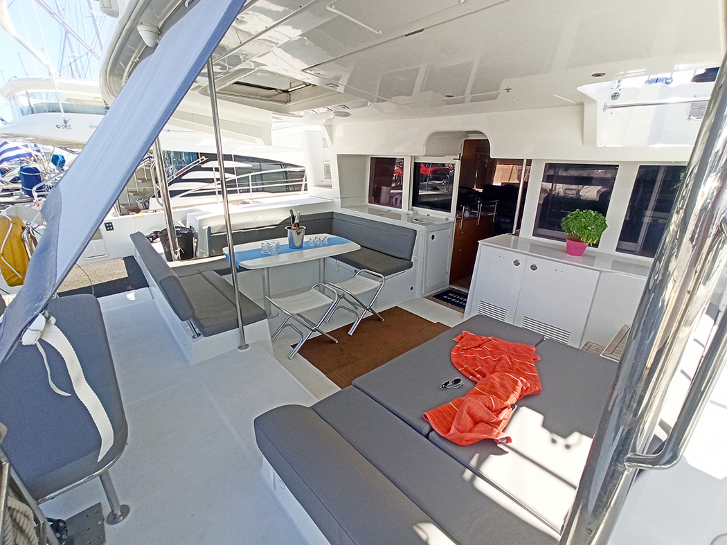 | Outside | Biminitop, Cockpitdusche, Cockpitlautsprecher, Cockpitpolster, elektr. Ankerwinsch, hydraul. Gangway, Sprayhood, Teak im Cockpit, Unterwasserbeleuchtung |