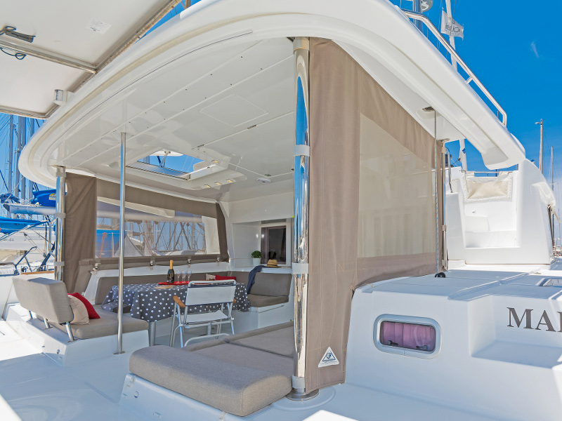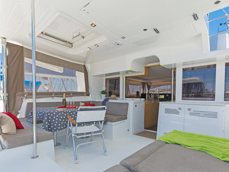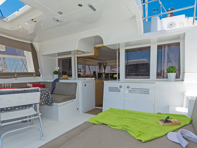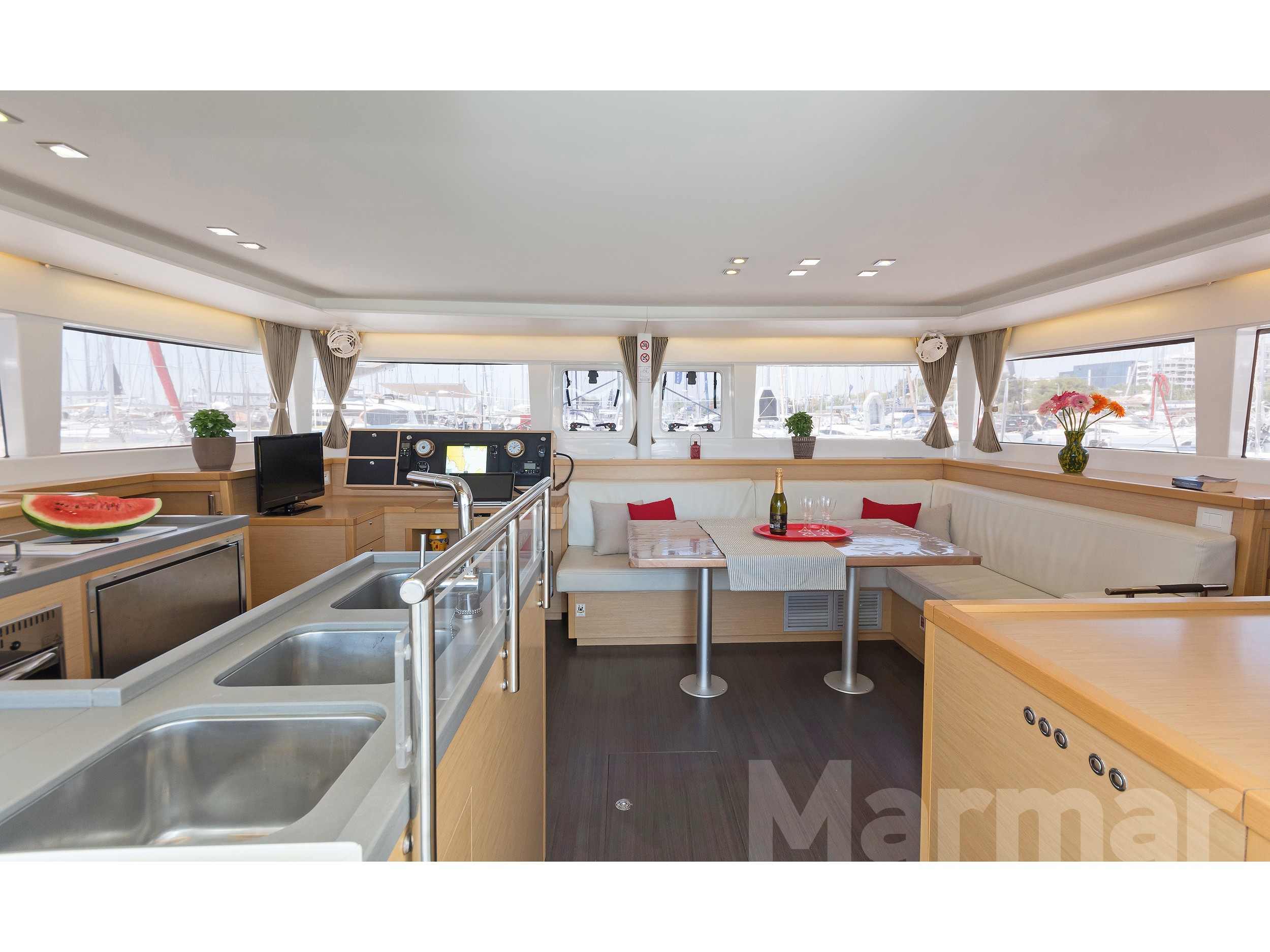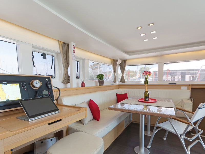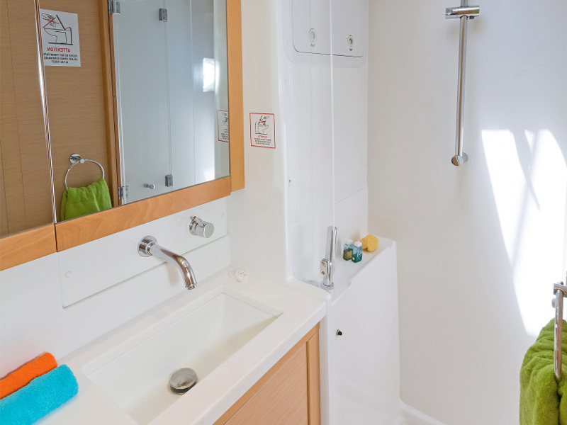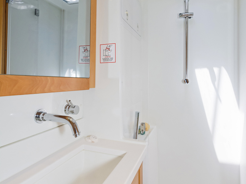 | Inside | 220V Steckdosen, FUSION Sound System, Gasherd mit Backofen, Gefrierschrank, Generator, Heizung, Klimaanlage (ohne Landstrombedarf), Kühlschrank, Mikrowelle, Nespresso-Maschine, Pantryausstattung, Radio mit Bluetooth, Ventilatoren in Kabinen, Warmwasser |