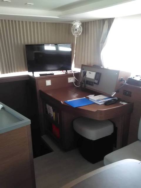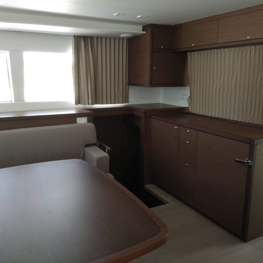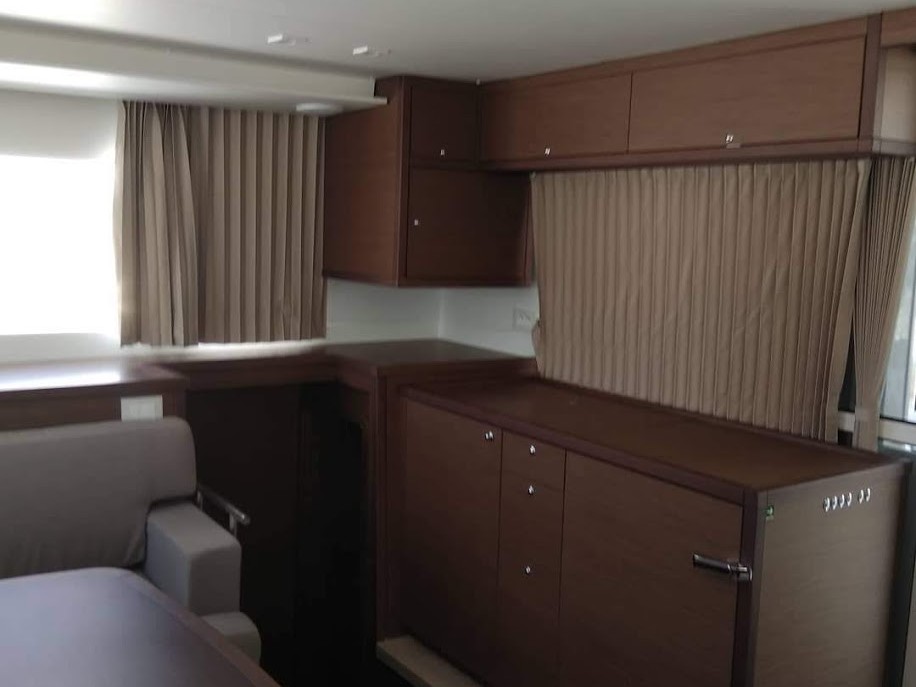| Inside | Gasherd mit Backofen, Gefrierschrank, Generator, Inverter 12V/220V, Klimaanlage (ohne Landstrombedarf), Kühlschrank, Pantryausstattung, Radio mit CD und MP3, TV, Watermaker |