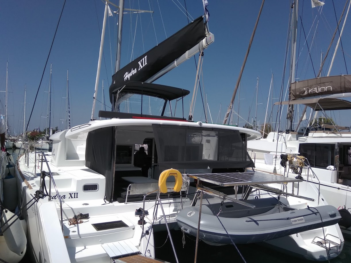 | Outside | Badeleiter, Biminitop, Bootshaken, Cockpitdusche, Cockpitlautsprecher, Cockpitpolster, Cockpittisch, elektr. Ankerwinsch, elektr. Winsch, Fender, Festmacherleinen, hydraul. Gangway, Solaranlage, Sprayhood, Winschen |