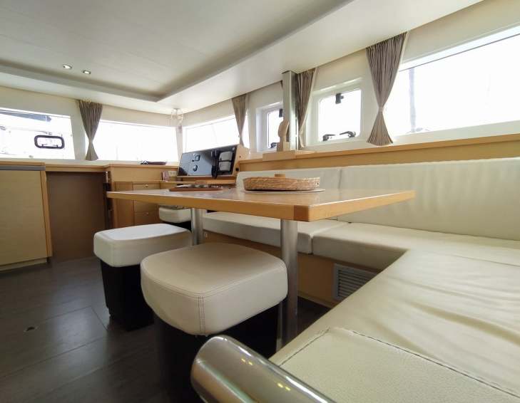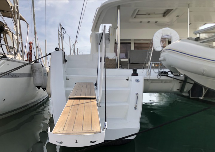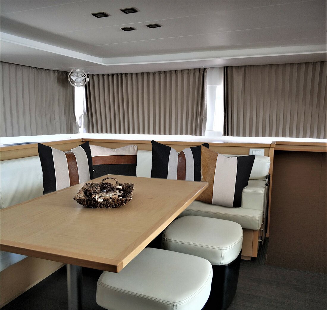 | Outside | Biminitop, Cockpitpolster, Cockpittisch, Deckpolster, elektr. Ankerwinsch, elektr. Gangway, elektr. Winsch, Kuchenbude, Solaranlage |