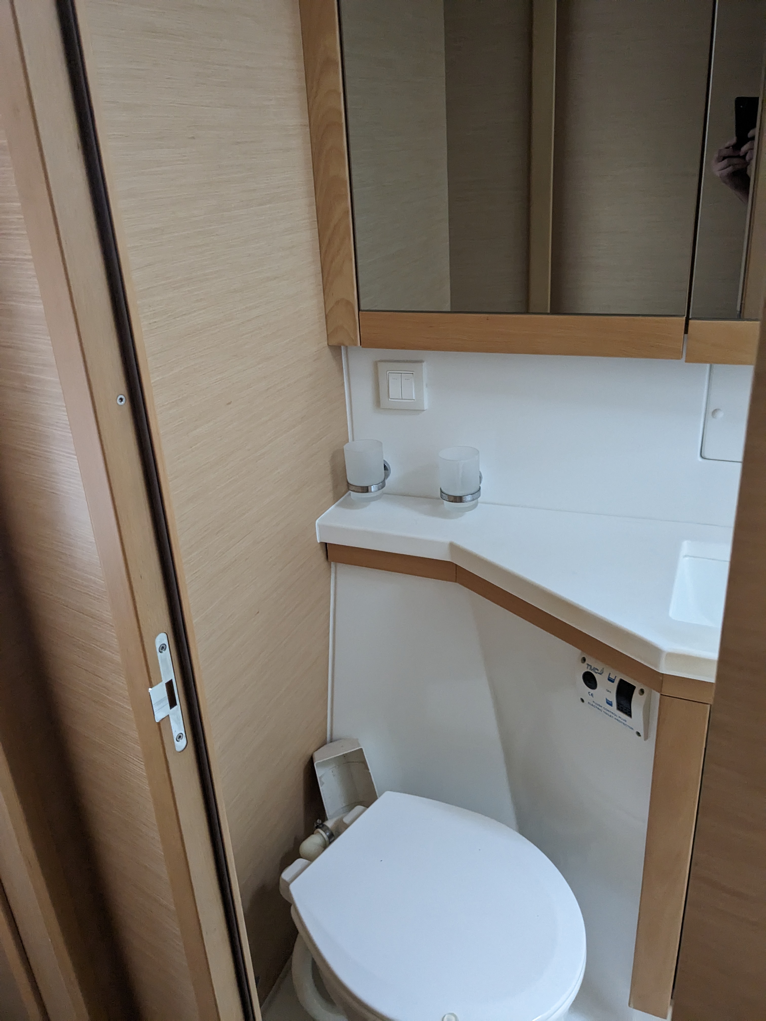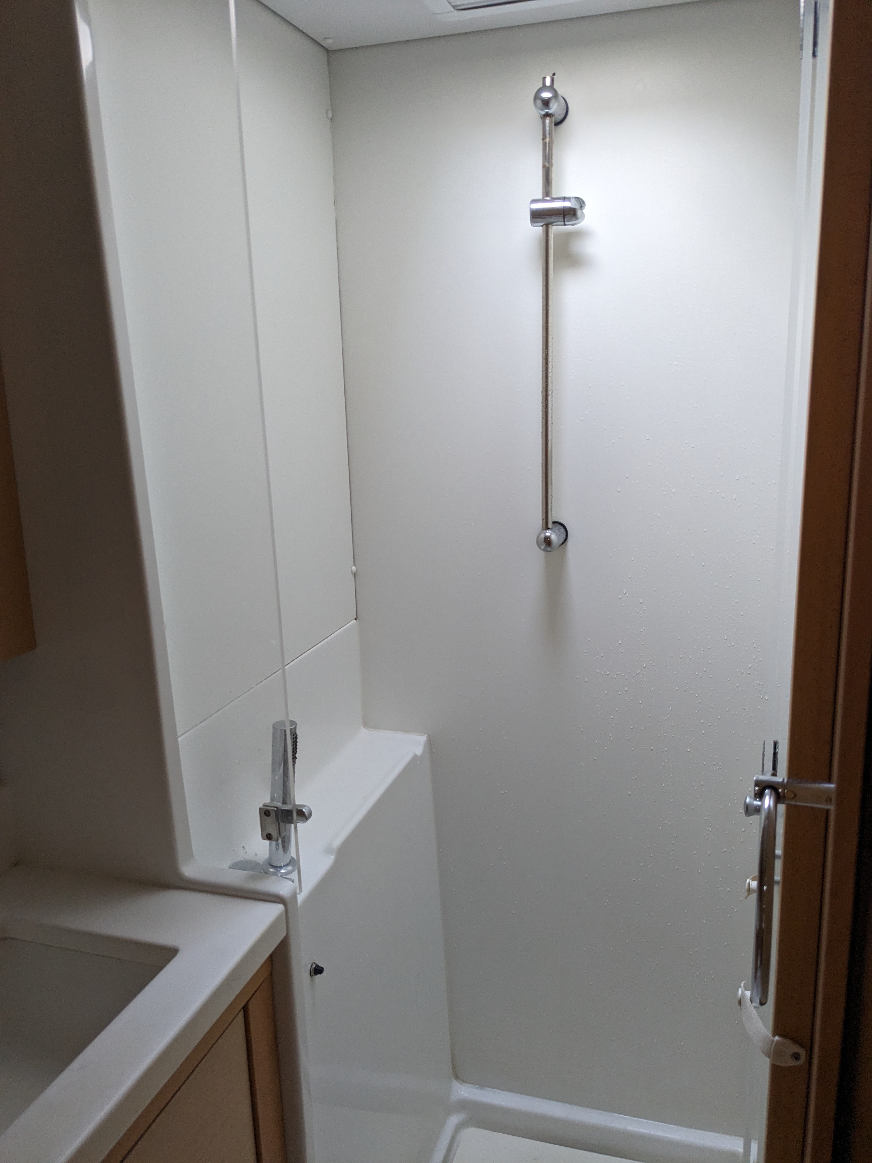 | Inside | Backofen, Dusche, Fäkalientank, Gasherd, Generator, Klimaanlage (ohne Landstrombedarf), Kühlschrank, Pantryausstattung, Radio, Salontisch absenkbar, Ventilator, Ventilatoren in Kabinen, Warmwasser, Watermaker, WC (elektr.) |