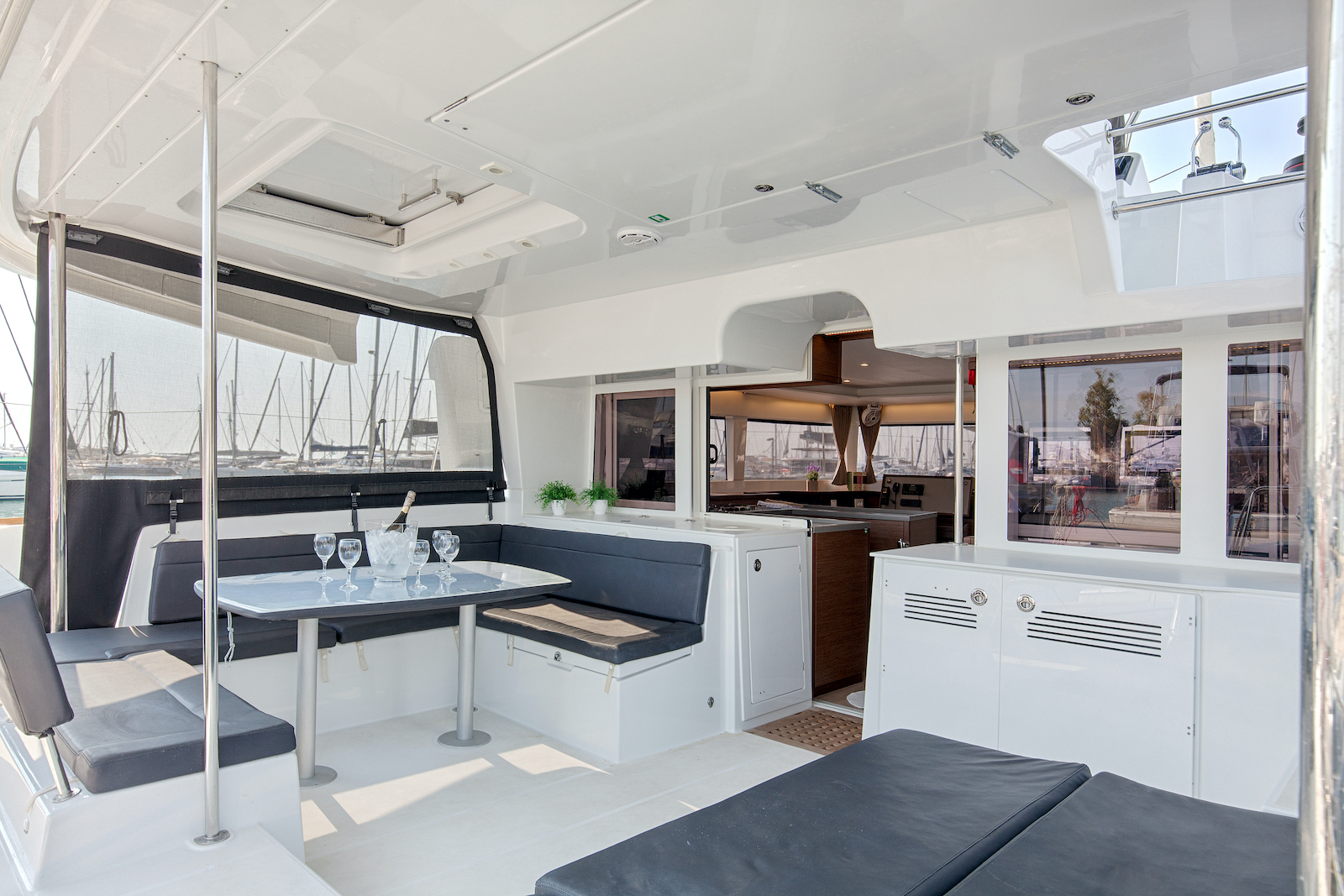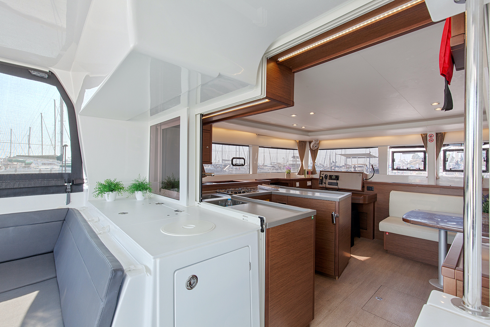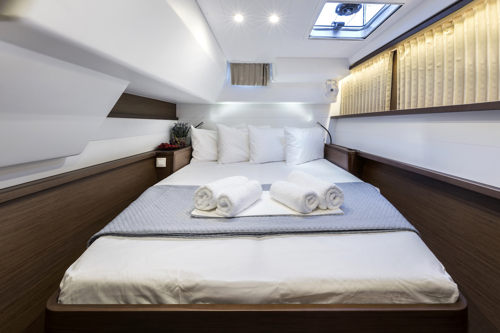 | Inside | 220V Steckdosen, FUSION Sound System, Gasherd mit Backofen, Gefrierschrank, Generator, Heizung, Klimaanlage (ohne Landstrombedarf), Kühlschrank, Nespresso-Maschine, Pantryausstattung, Radio mit Bluetooth, Ventilatoren in Kabinen, Warmwasser |