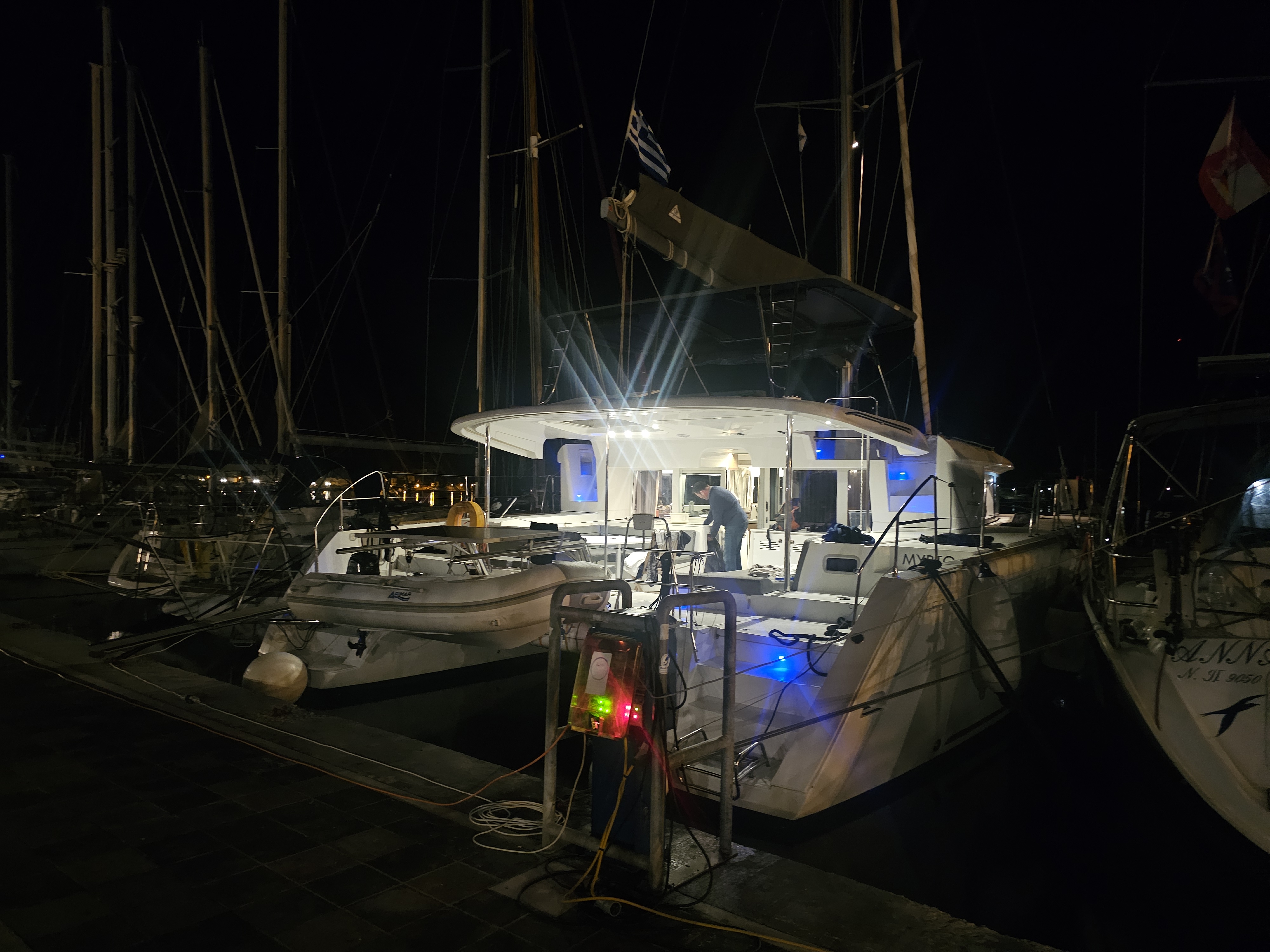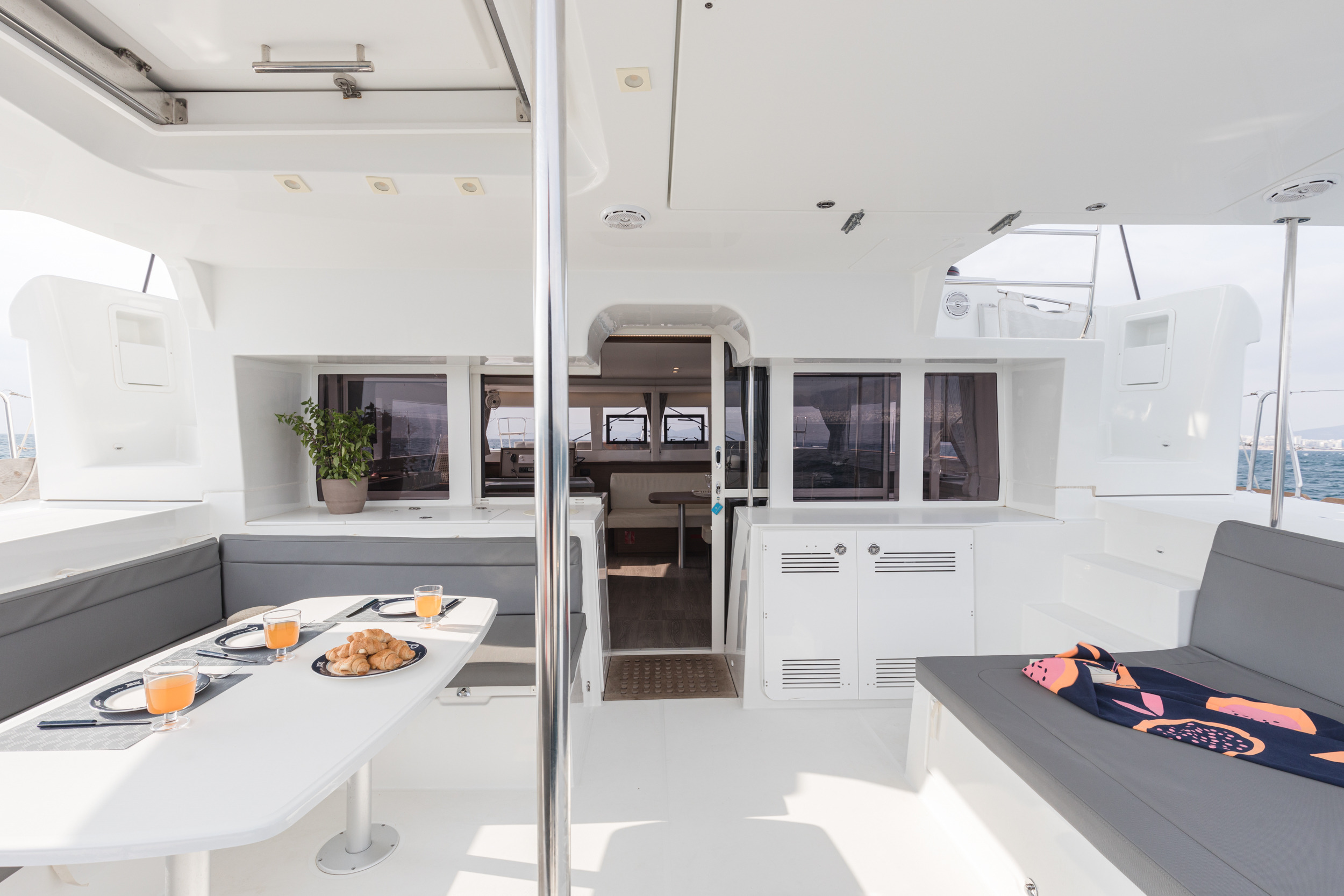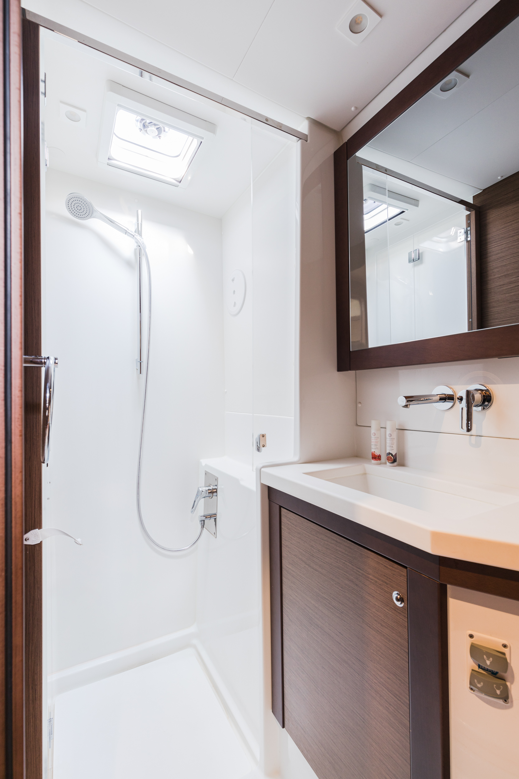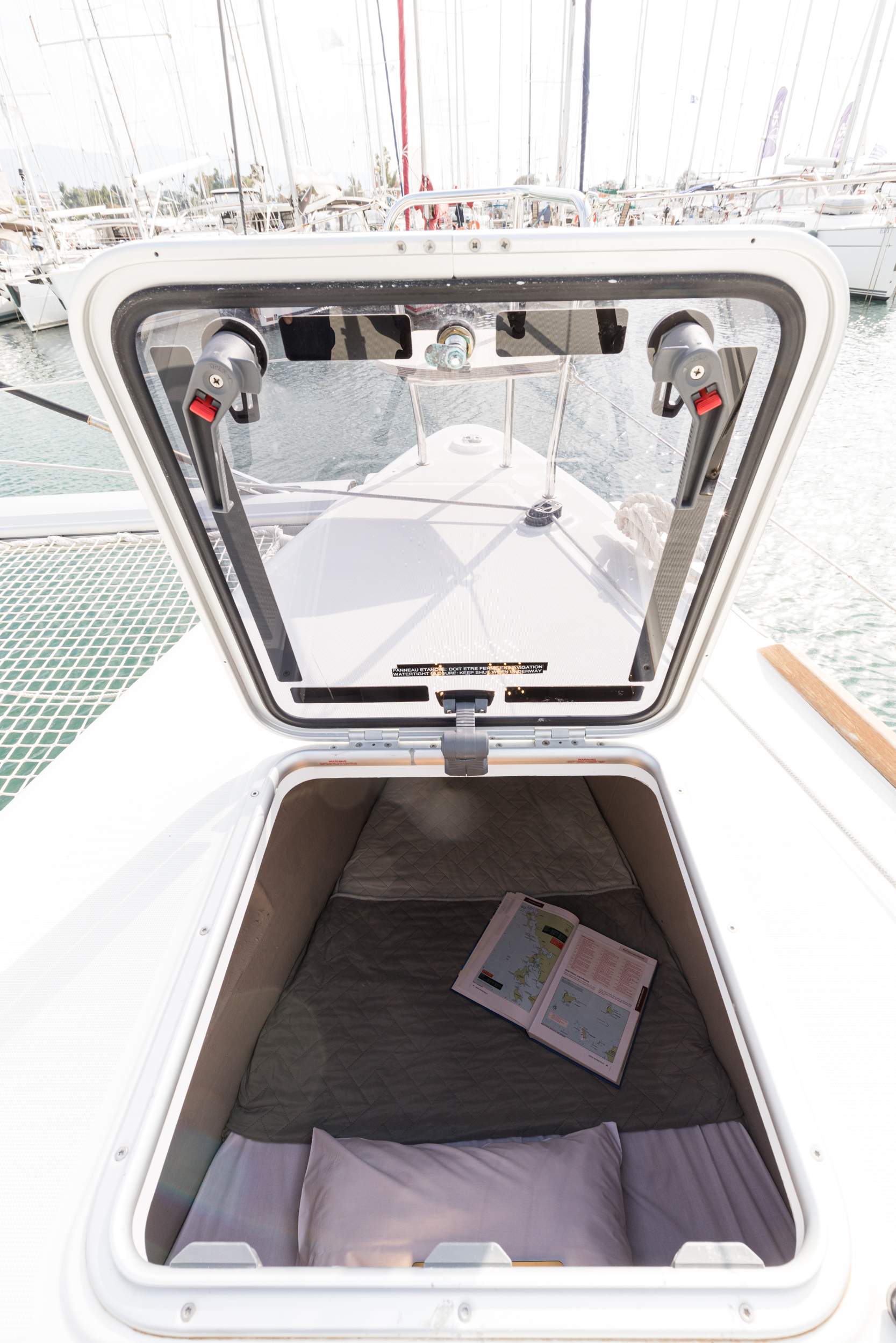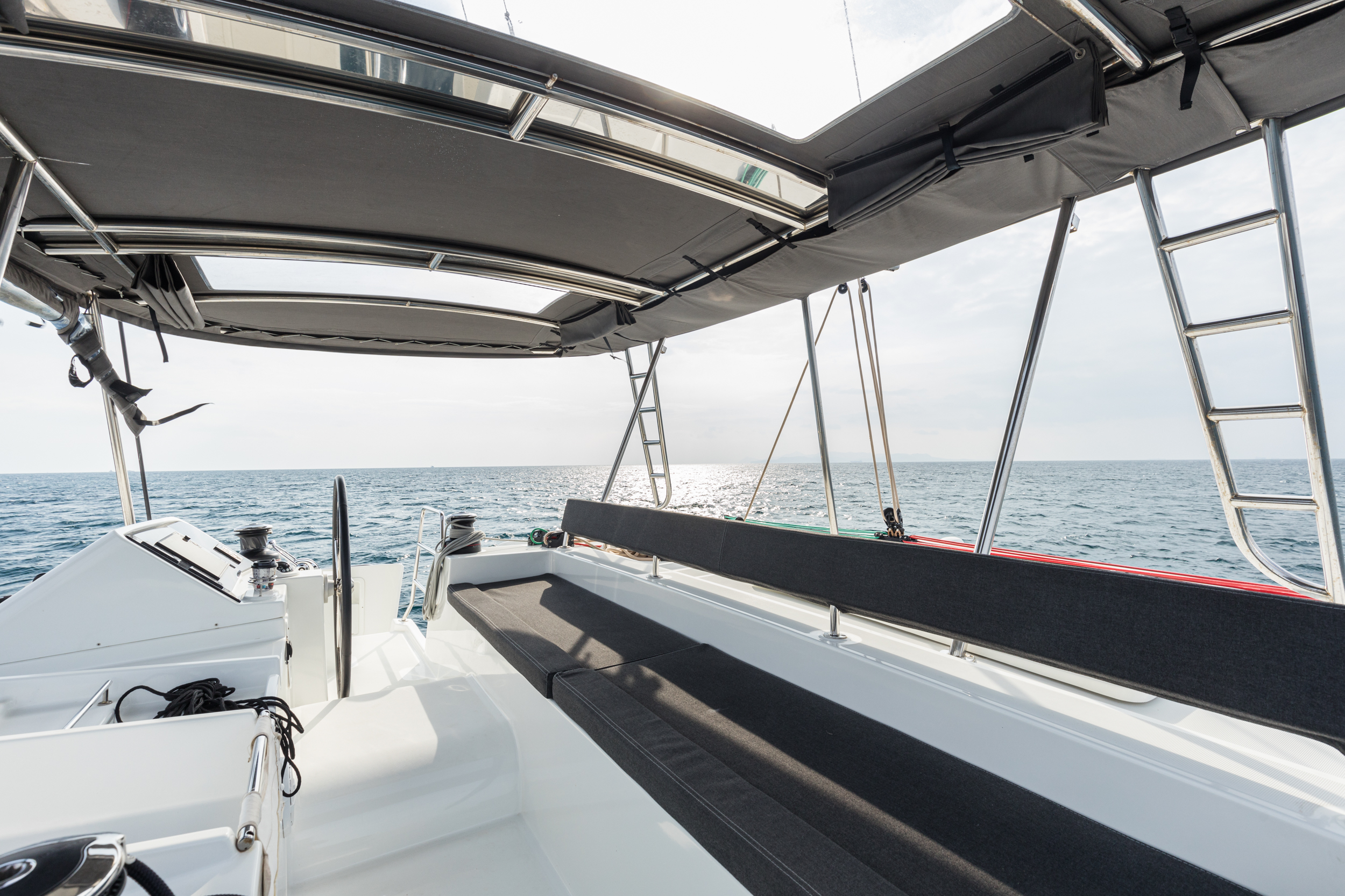 | Outside | Badeleiter, Biminitop, Bootshaken, Cockpitdusche, Cockpitpolster, elektr. Ankerwinsch, Gangway, Schnorchelausrüstung, Solaranlage, Sprayhood, Wantenschneider, Wasserschlauch, Winschen |