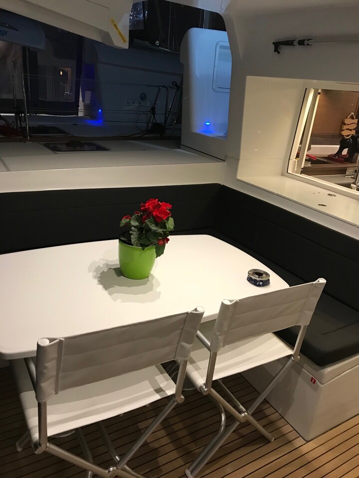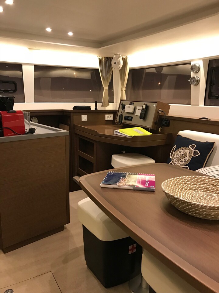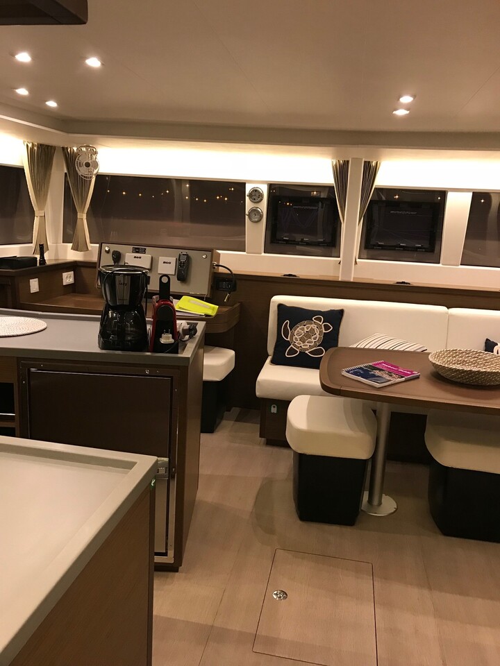 | Inside | Borduhr, Gasherd, Generator, Geschirr, Klimaanlage (ohne Landstrombedarf), Kühlschrank, Pantryausstattung, Radio mit MP3 , Watermaker |
