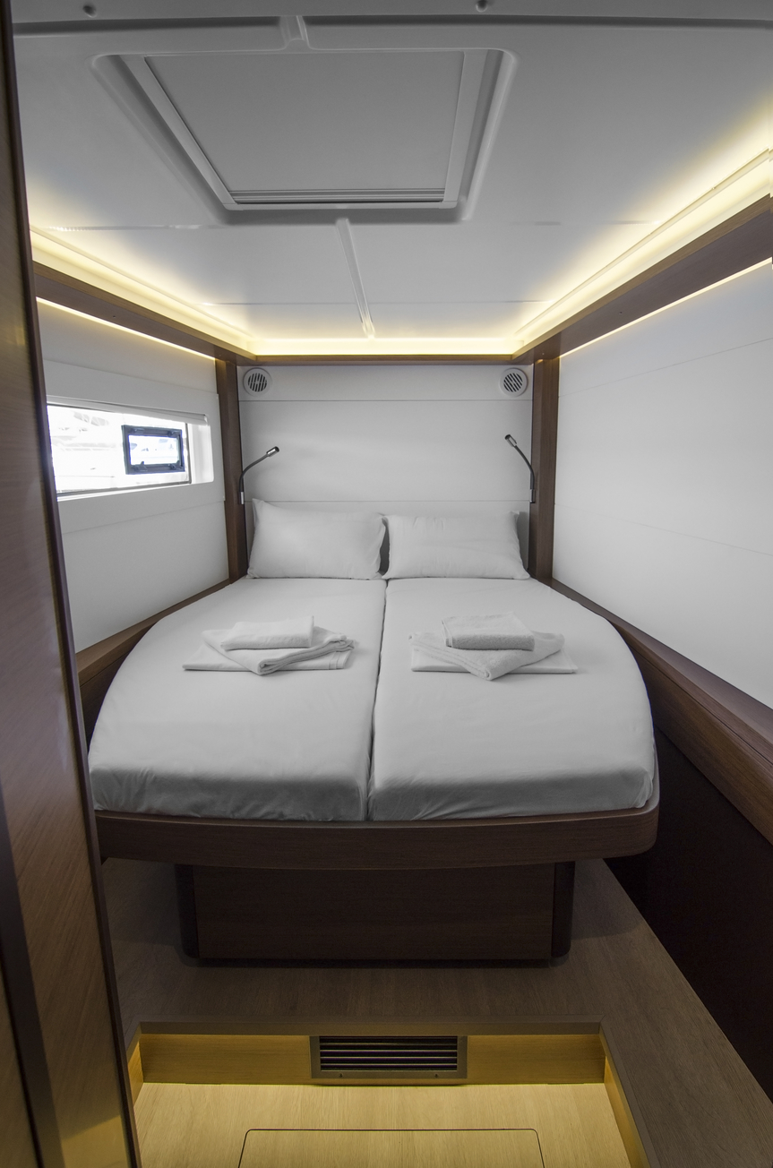 | Inside | Fäkalientank, Gefrierschrank, Generator, Inverter 12V/220V, Klimaanlage (ohne Landstrombedarf), Kühlschrank, LED-Innenleuchten, Pantryausstattung, Radio mit CD und MP3, Ventilatoren in Kabinen, Watermaker, WC (elektr.) |