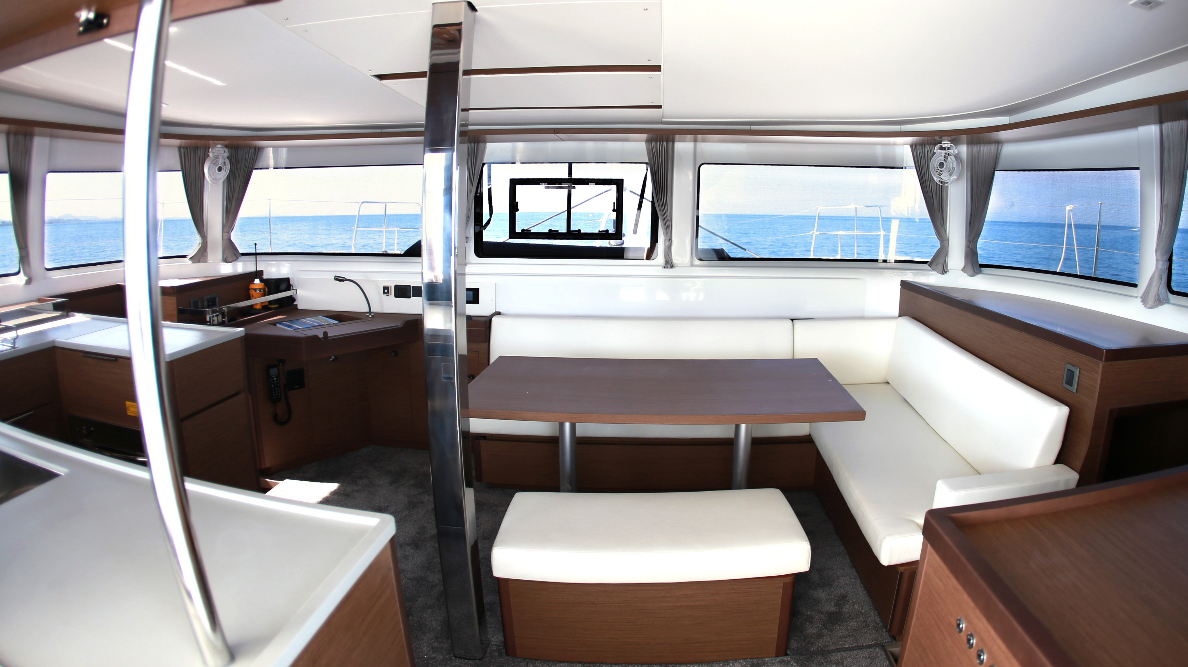 | Inside | Gasherd, Gefrierschrank, Generator, Inverter 12V/220V, Klimaanlage (ohne Landstrombedarf), Kühlschrank, Kühlschrank mit Gefrierfach, Ladegerät, Pantryausstattung, Radio mit USB und Bluetooth, TV, Ventilator, Watermaker, WC (elektr.) |