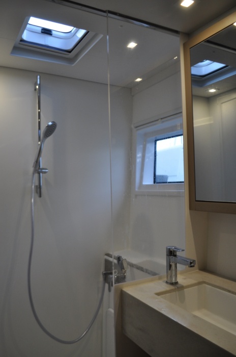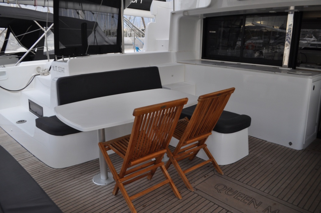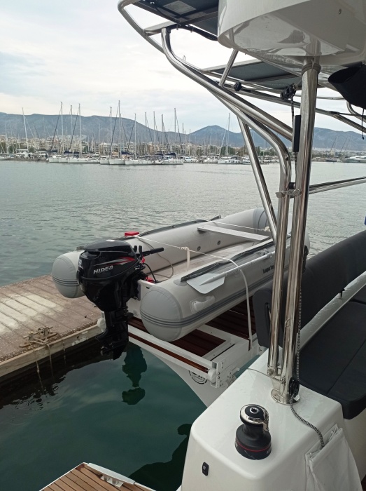 | Outside | Badeplattform (hydr.), Biminitop, elektr. Ankerwinsch, elektr. Winsch, hydraul. Gangway, Solaranlage, Sprayhood |