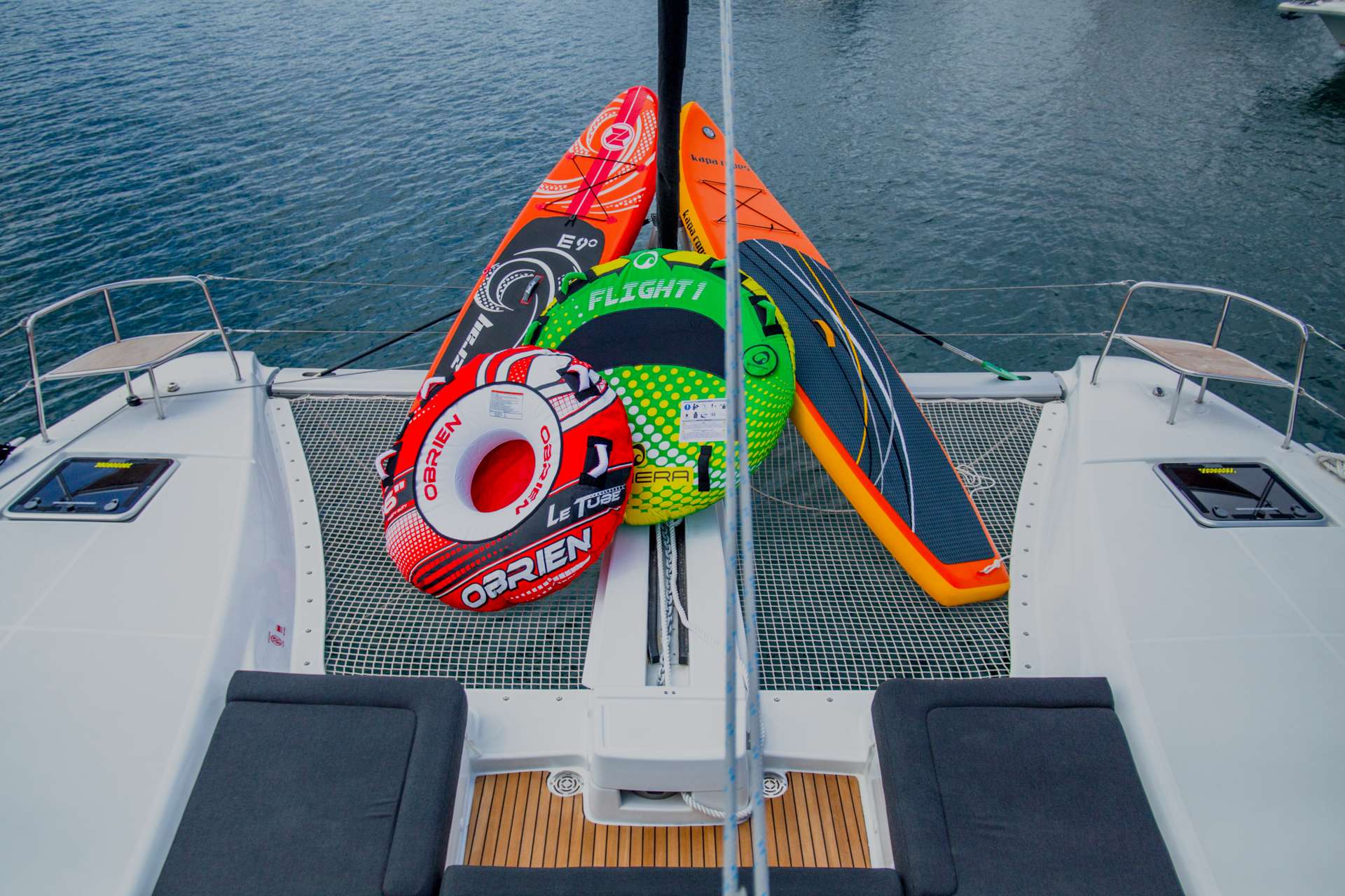 | Outside | Angelausrüstung, Badeleiter, Badeplattform, Biminitop, Cockpitdusche, Grill, Schnorchelausrüstung, Sonnensegel, Wasserski |