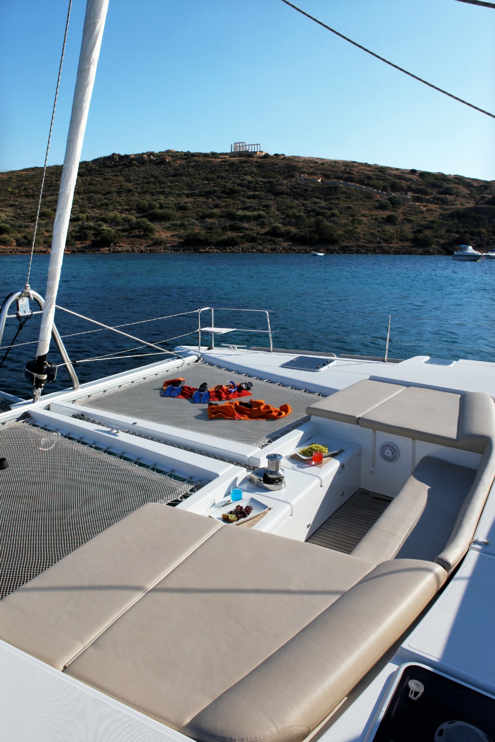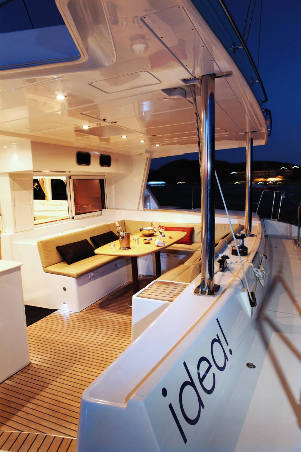 | Outside | 220 V-Landanschluss, Angelausrüstung, Badeplattform, Biminitop, Cockpitpolster, elektr. Ankerwinsch, elektr. Winsch, hydraul. Gangway, Schnorchelausrüstung, Sonnendeck, Sprayhood |