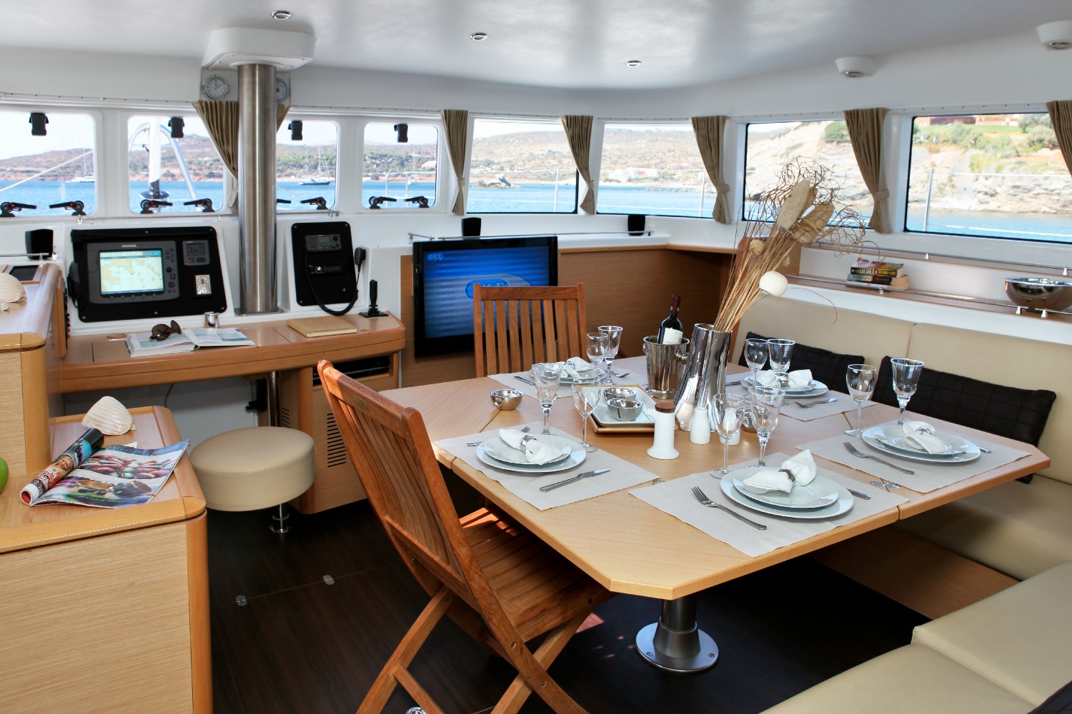 | Navigation | Echolot, GPS mit Kartenplotter, Radar, Sumlog, Windmesser |