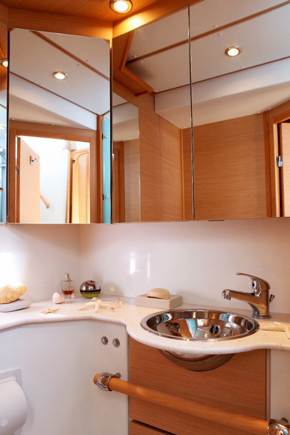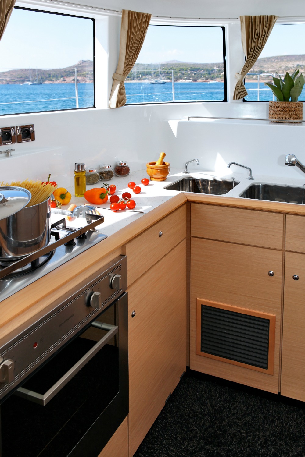 | Inside | Backofen, Eiswürfelmaschine, Fäkalientank, Gasherd, Gefrierschrank, Generator, Klimaanlage (ohne Landstrombedarf), Kühlschrank, Mikrowelle, PC, Playstation, Radio mit CD und MP3, Trockner, TV + DVD, Ventilatoren in Kabinen, Waschmaschine, Watermaker, WC (elektr.) |
