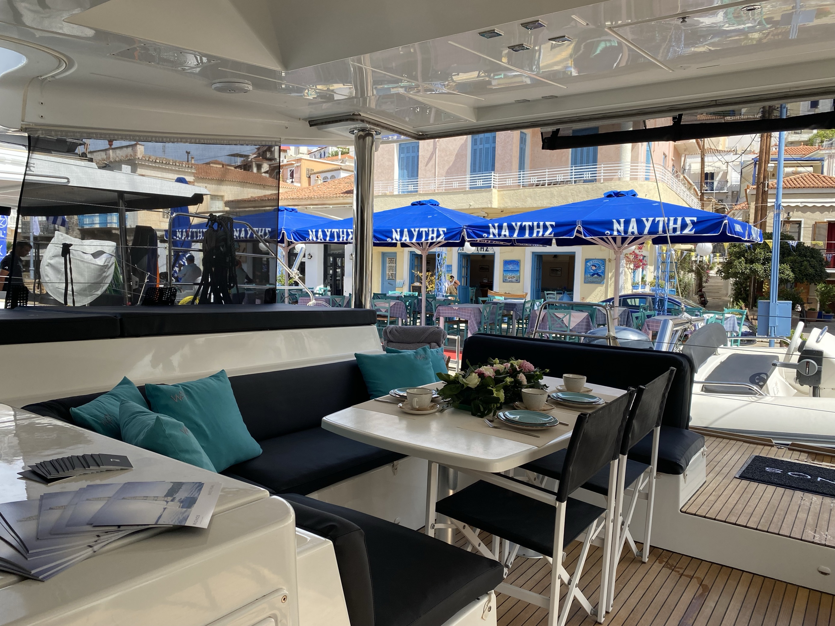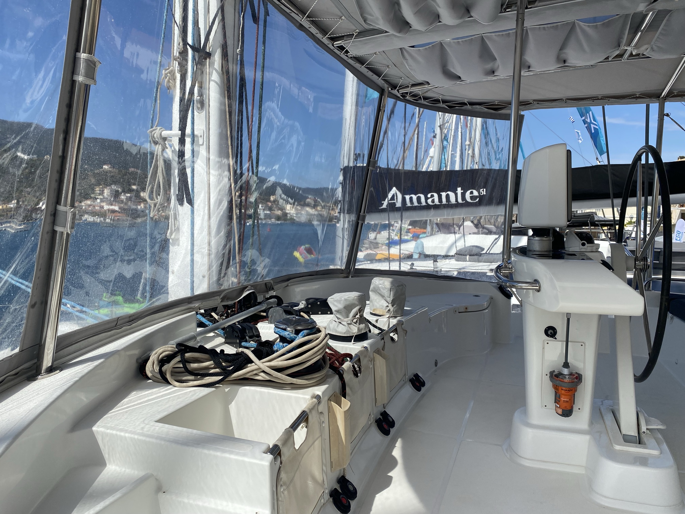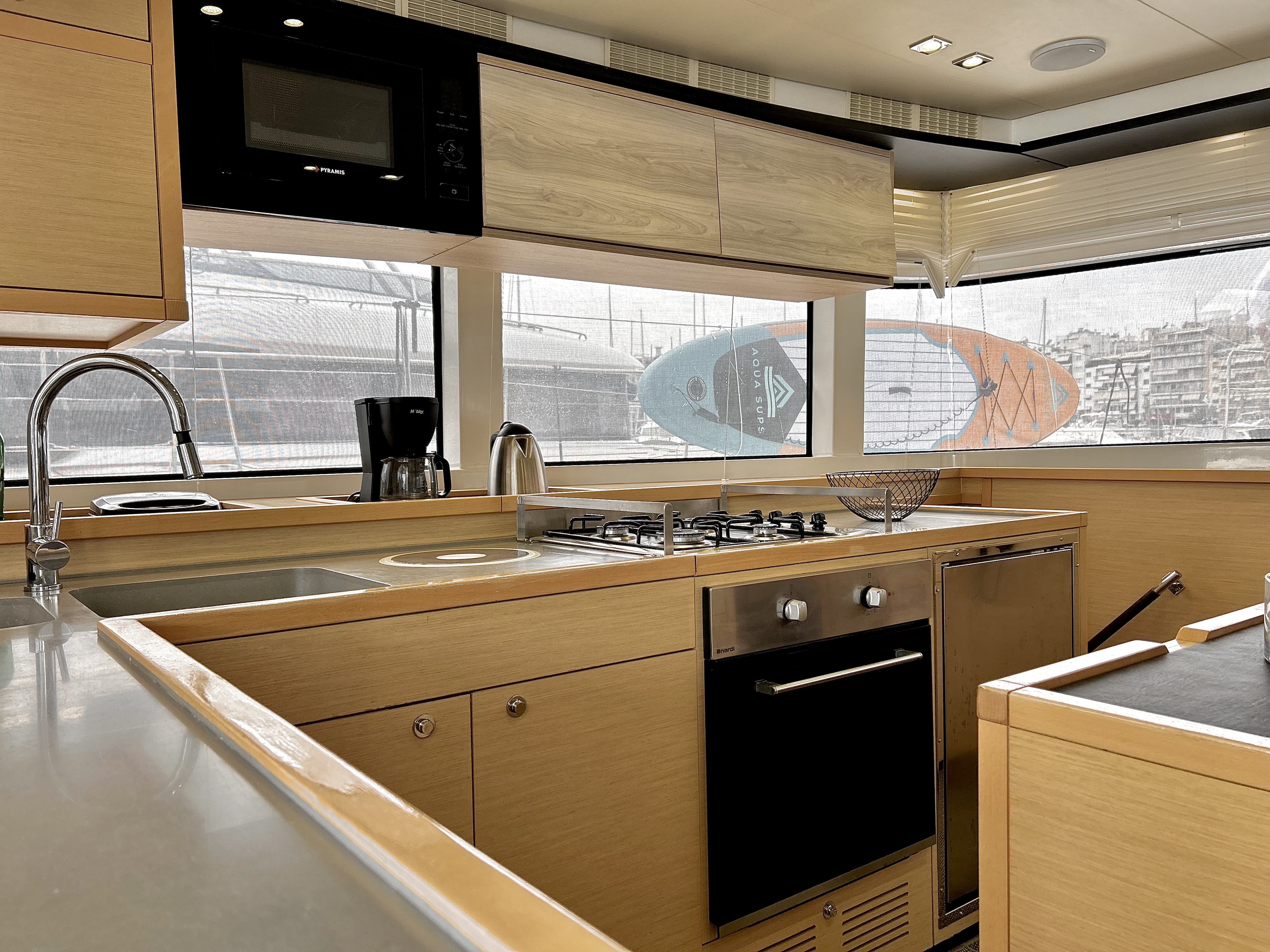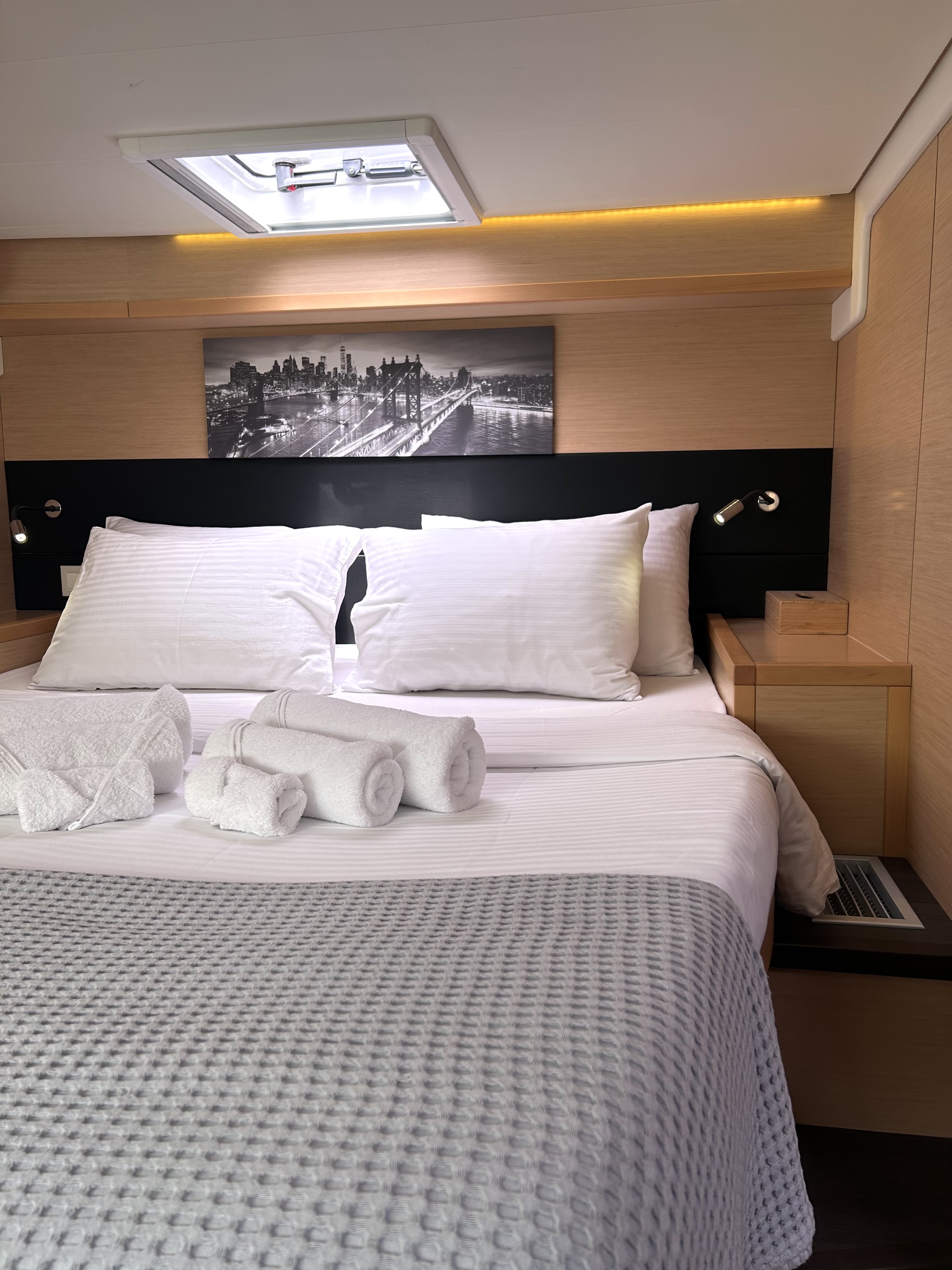 | Inside | Gefrierschrank, Generator, Inverter 12V/220V, Klimaanlage (ohne Landstrombedarf), Kühlschrank, Nespresso-Maschine, TV, USB Steckdosen in den Kabinen, Warmwasser, Watermaker |