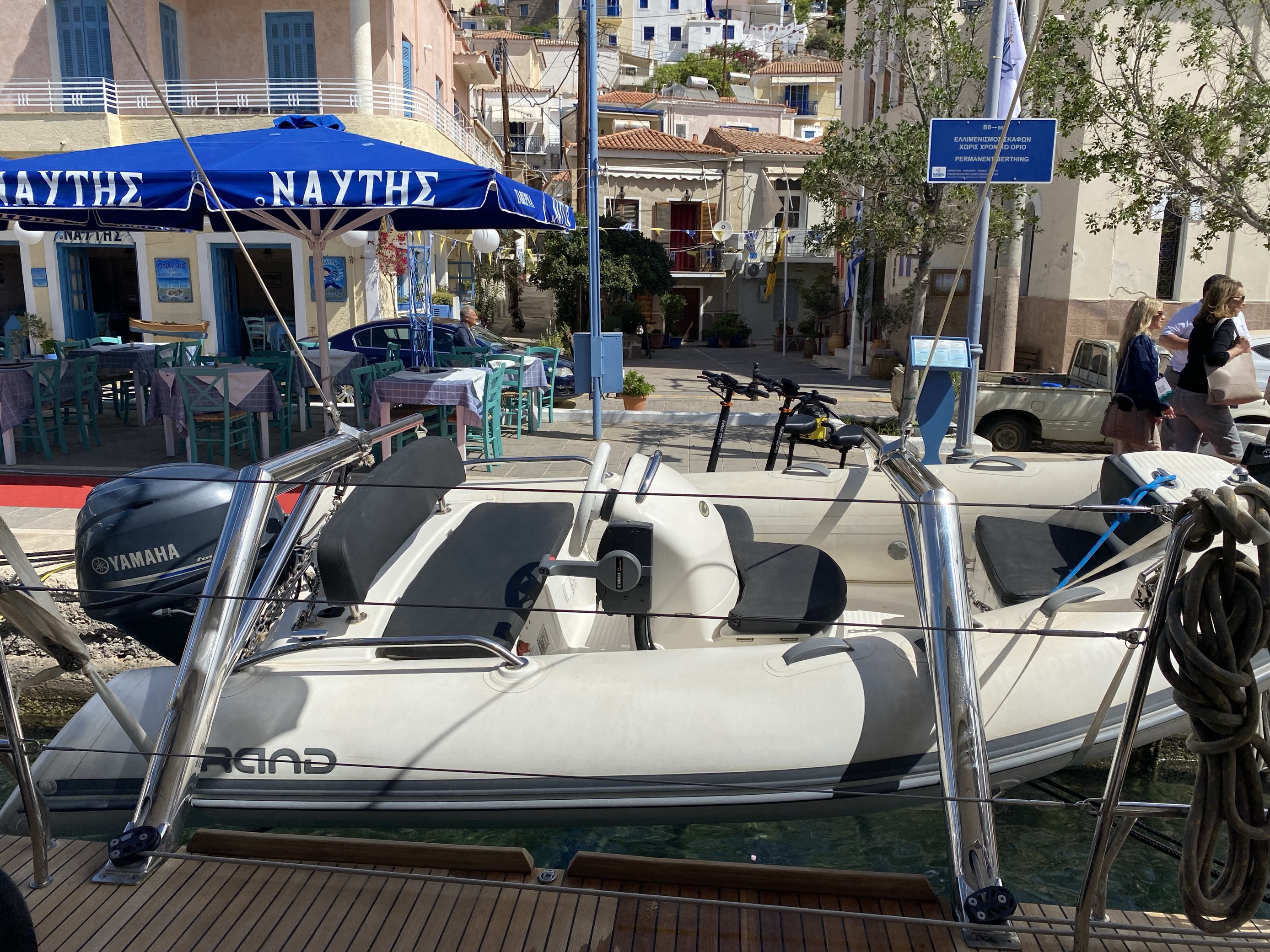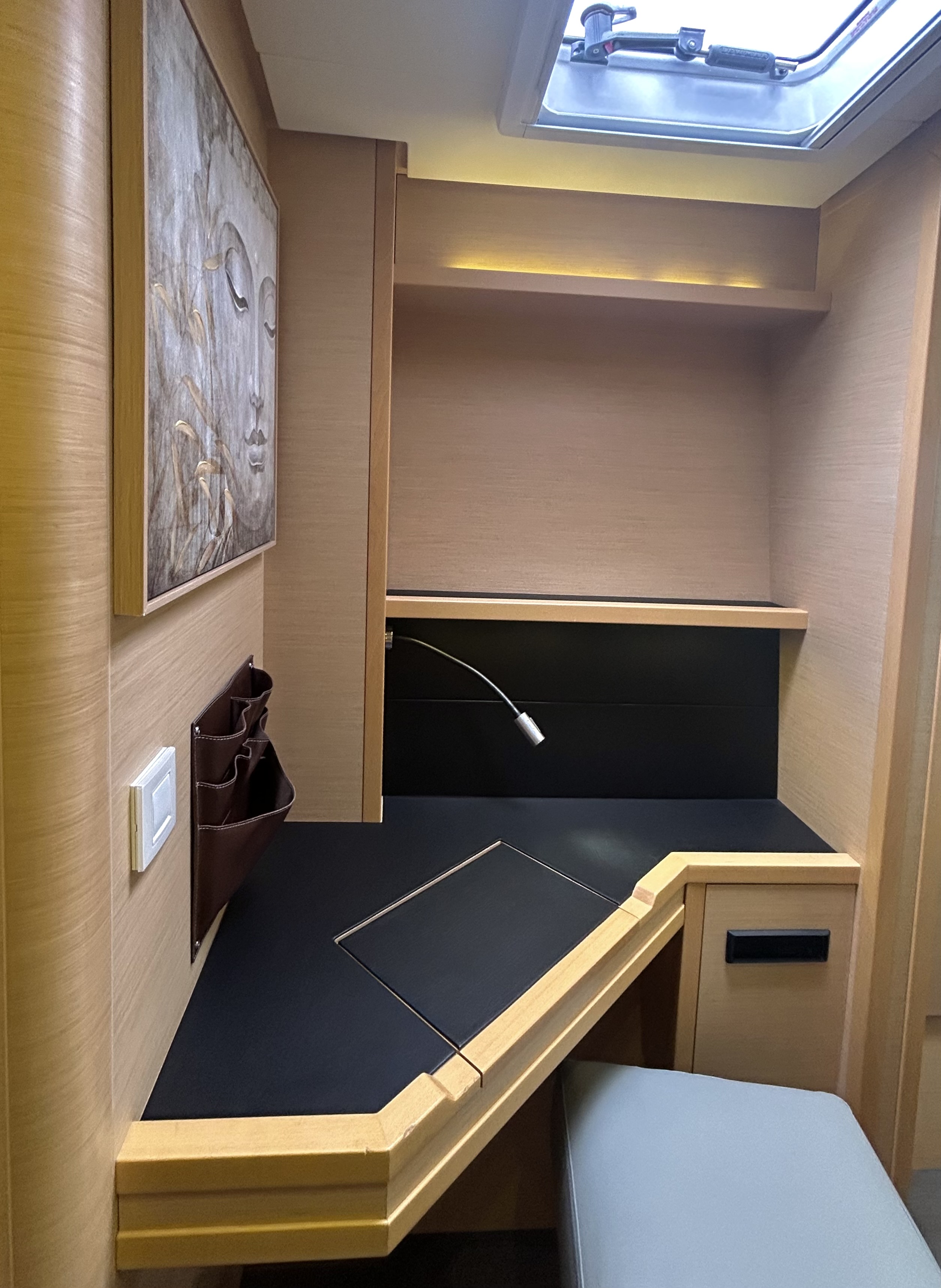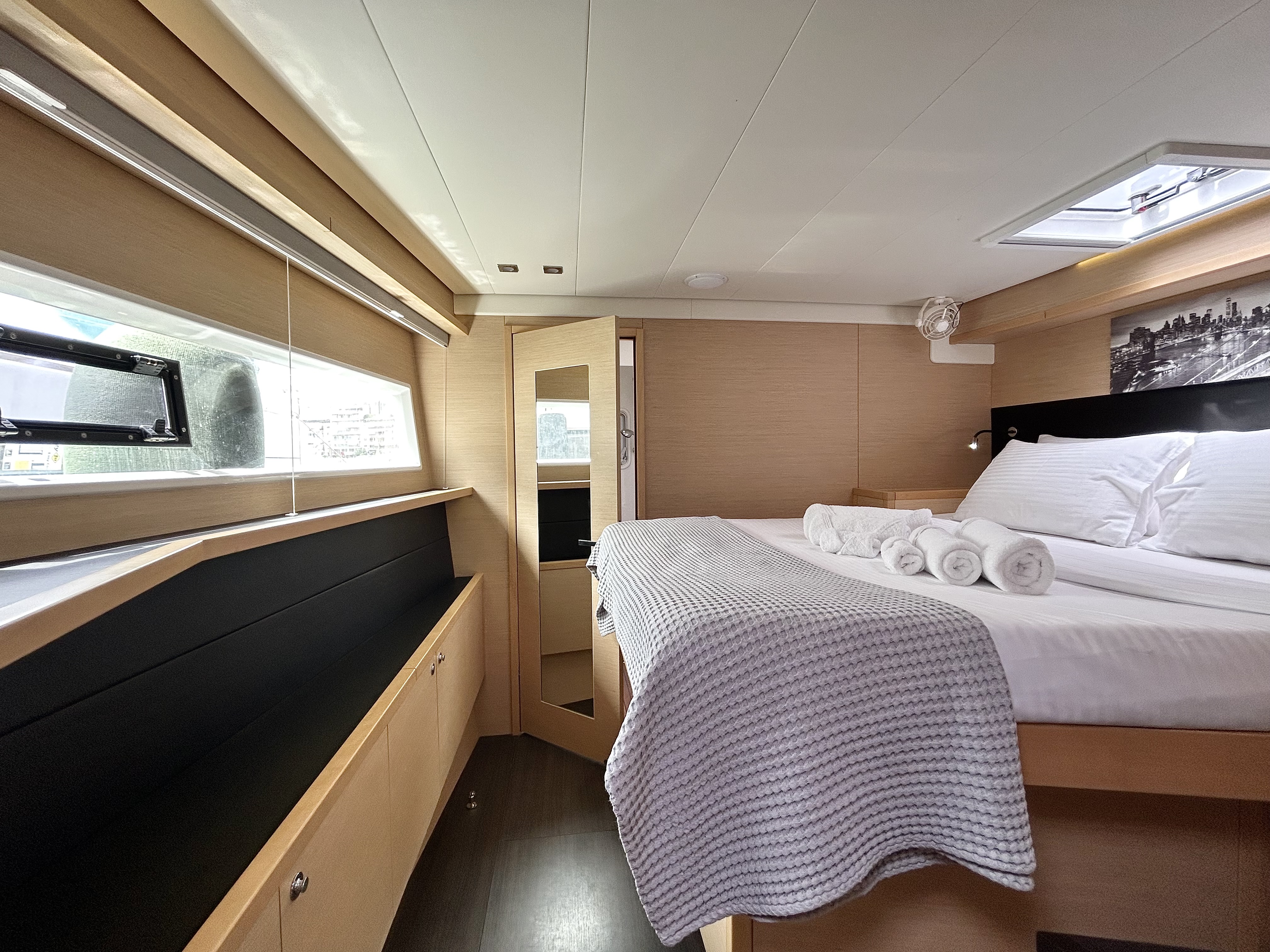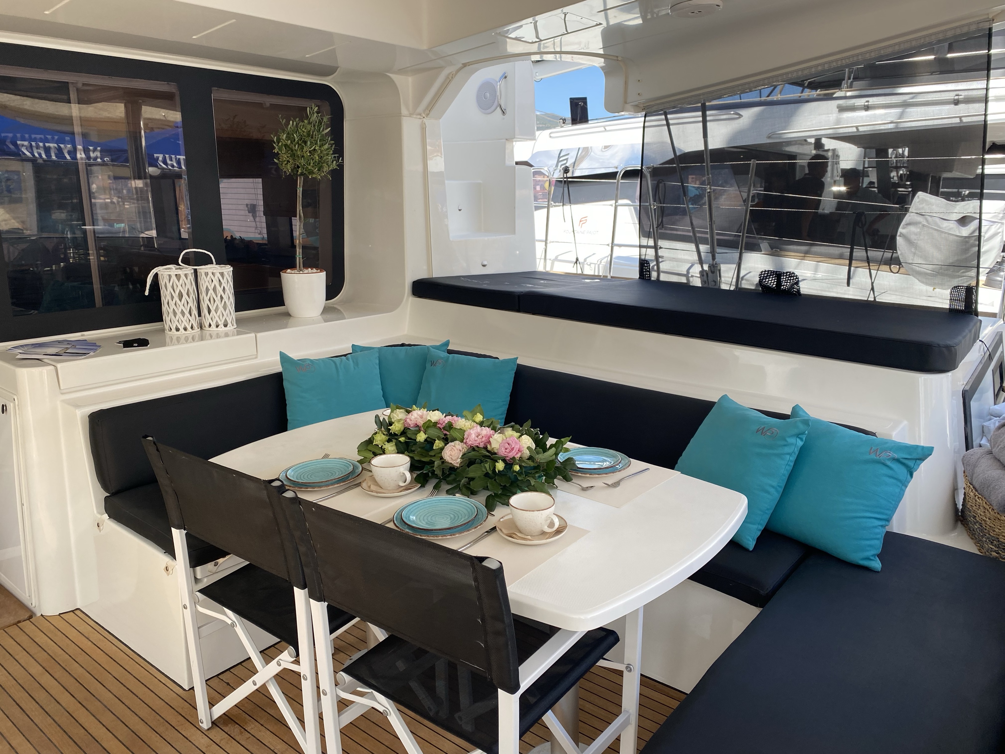 | Inside | Gefrierschrank, Generator, Inverter 12V/220V, Klimaanlage (ohne Landstrombedarf), Kühlschrank, Nespresso-Maschine, TV, USB Steckdosen in den Kabinen, Warmwasser, Watermaker |